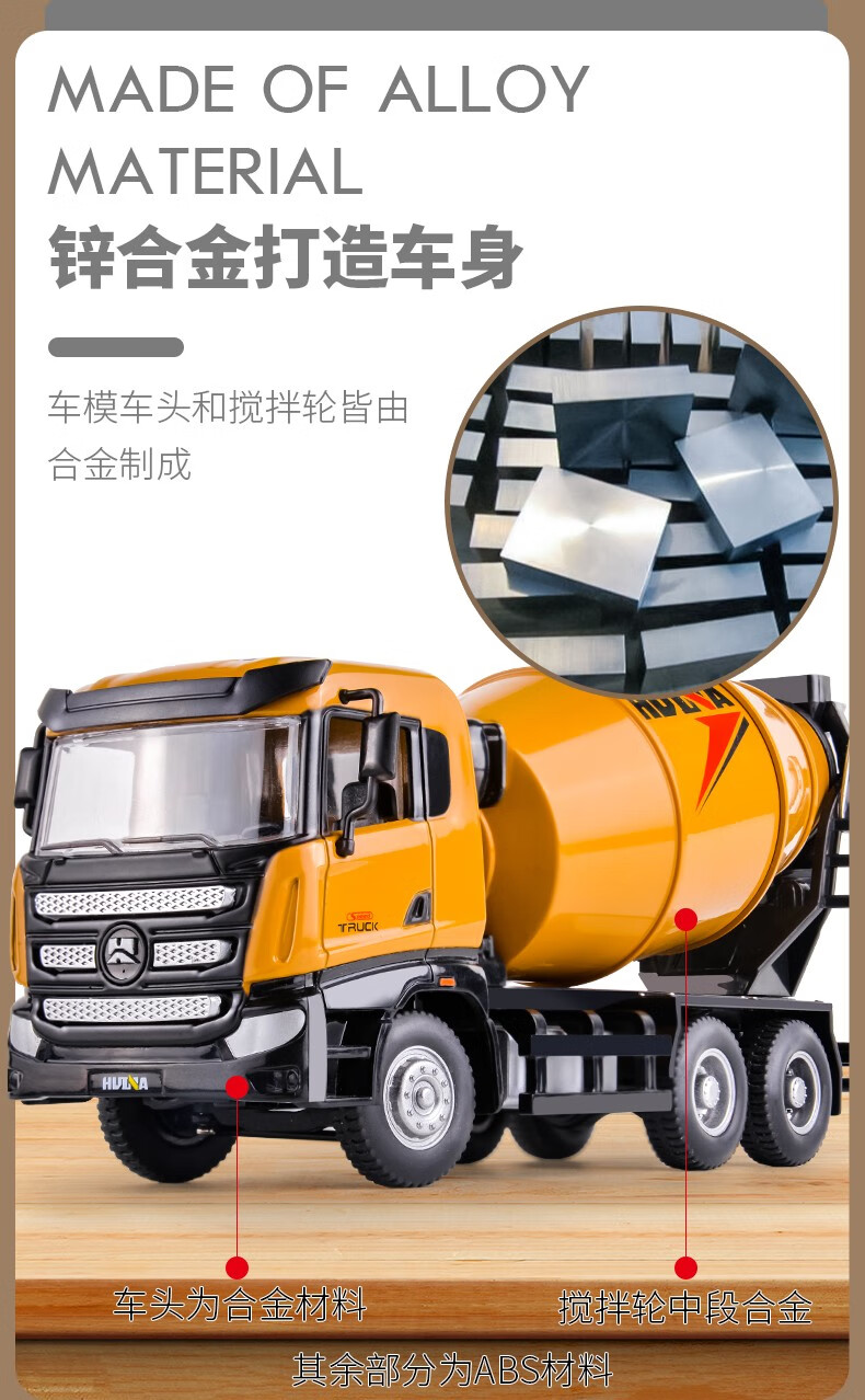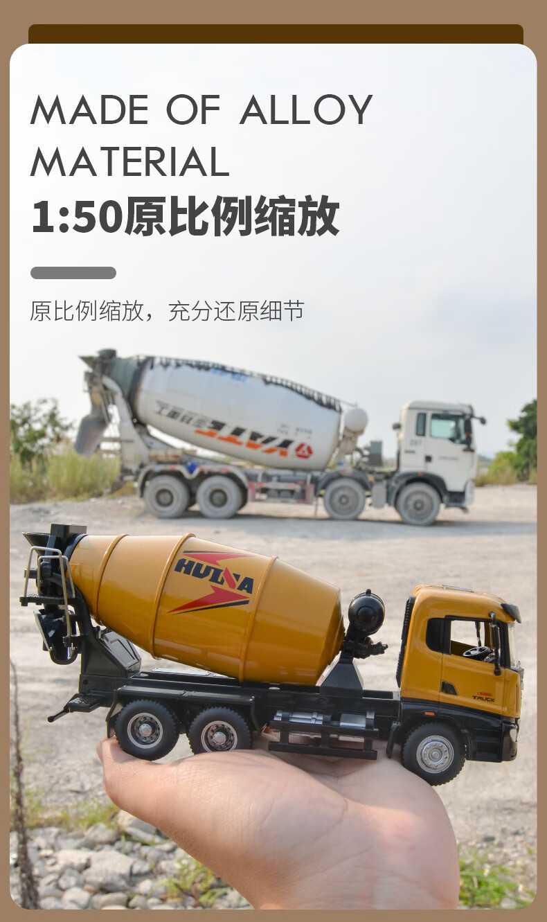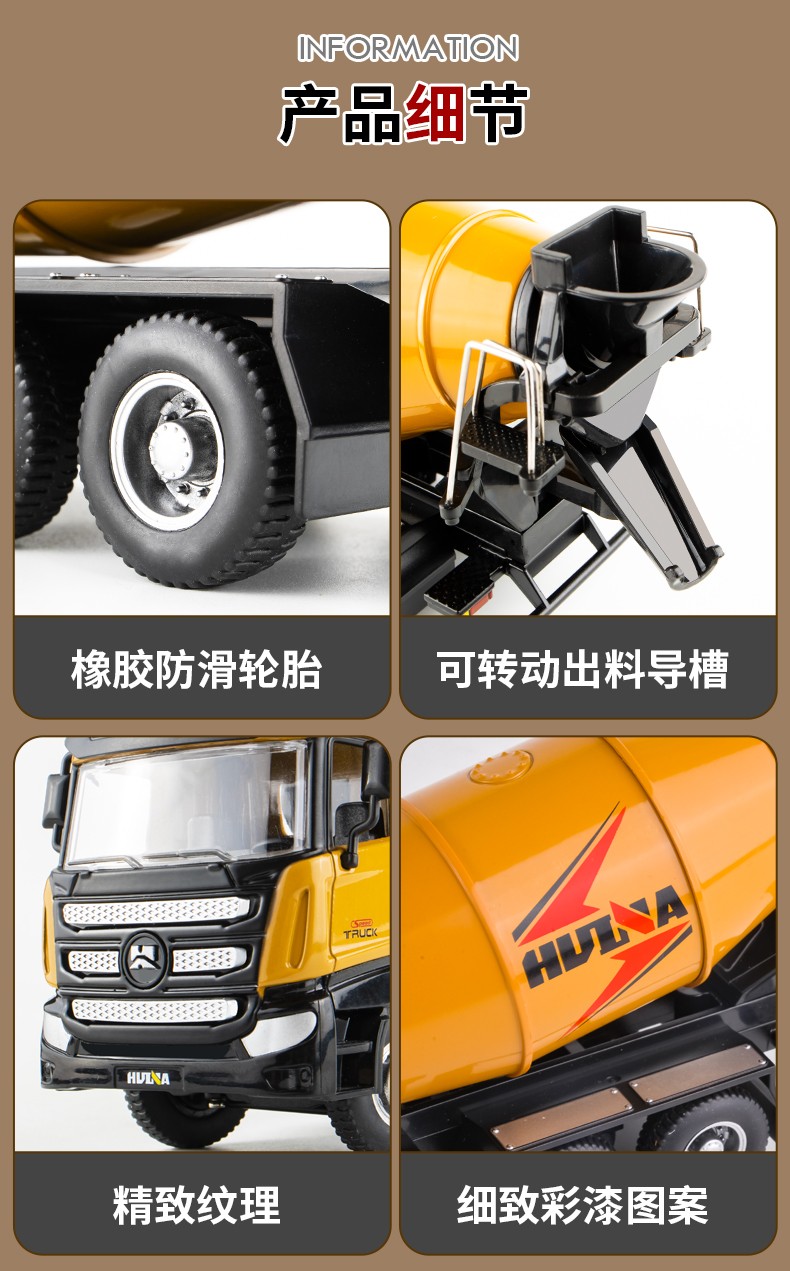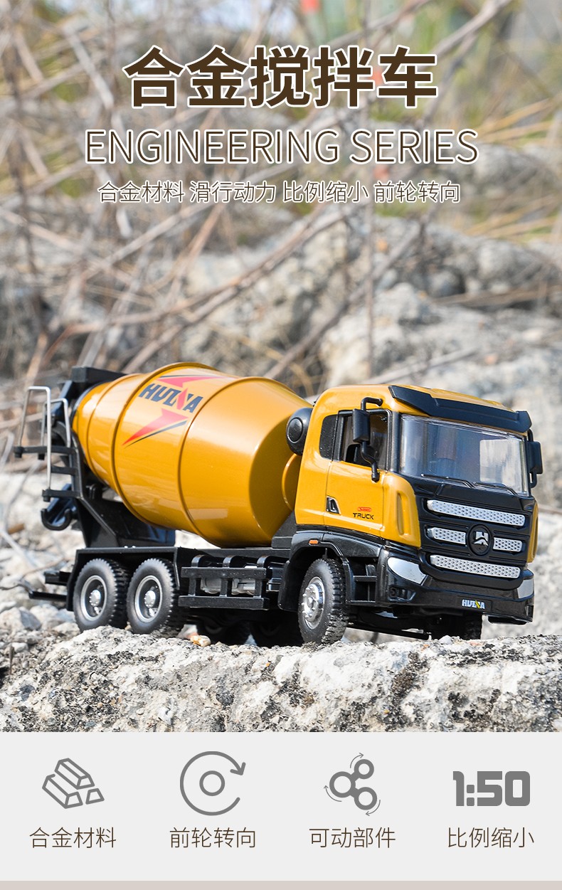 Huina model alloy car model static concrete mixer truck model dump truck 1 50 model ornament collection boy gift 1 50 alloy dump truck model 7718-1