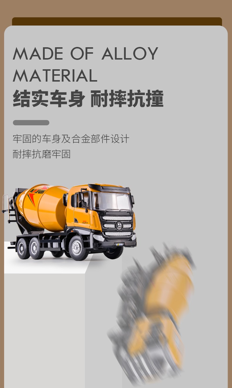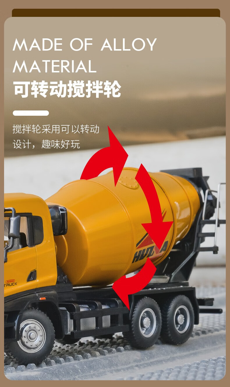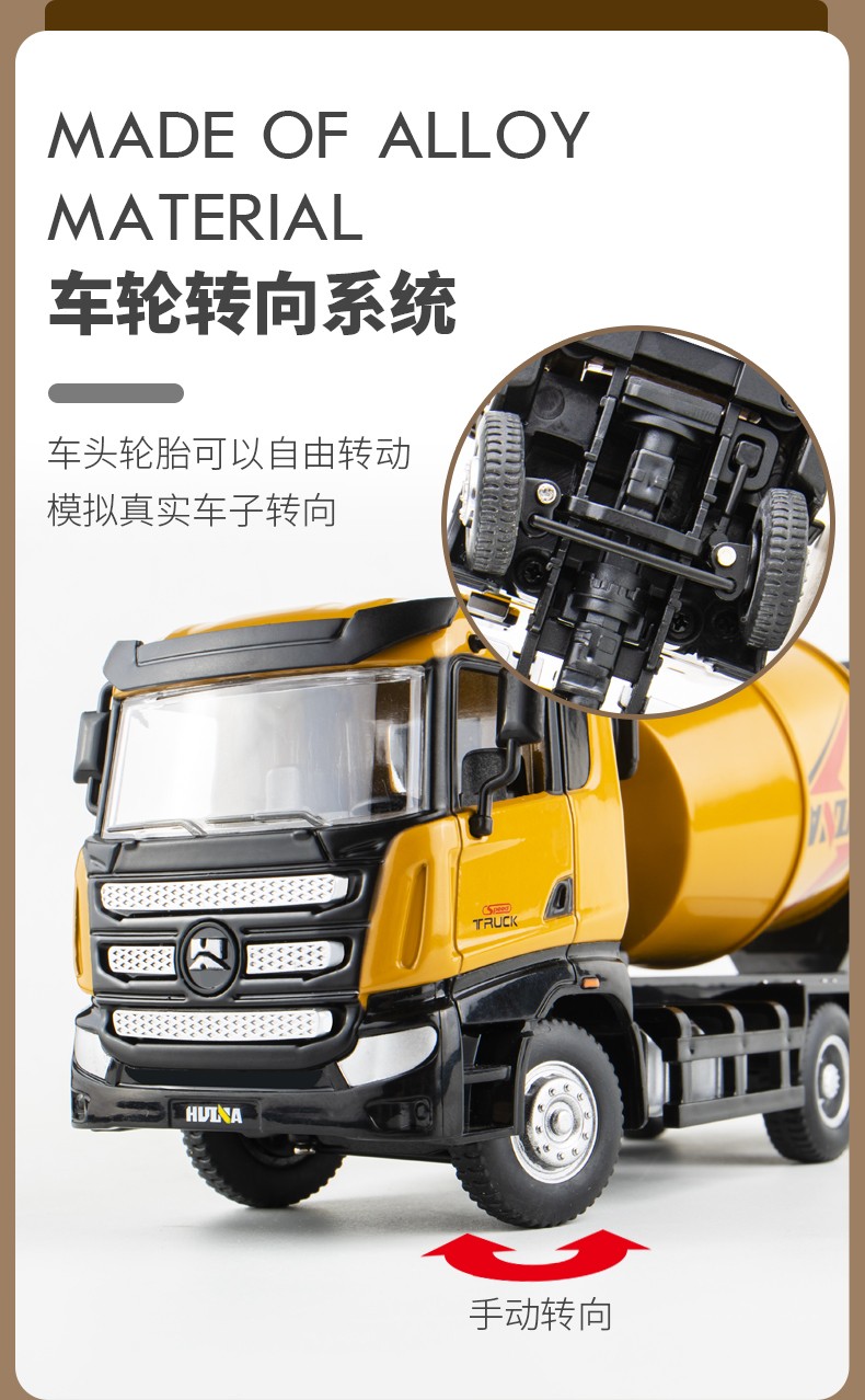 Huina model alloy car model static concrete mixer truck model dump truck 1 50 model ornament collection boy gift 1 50 alloy dump truck model 7718-1