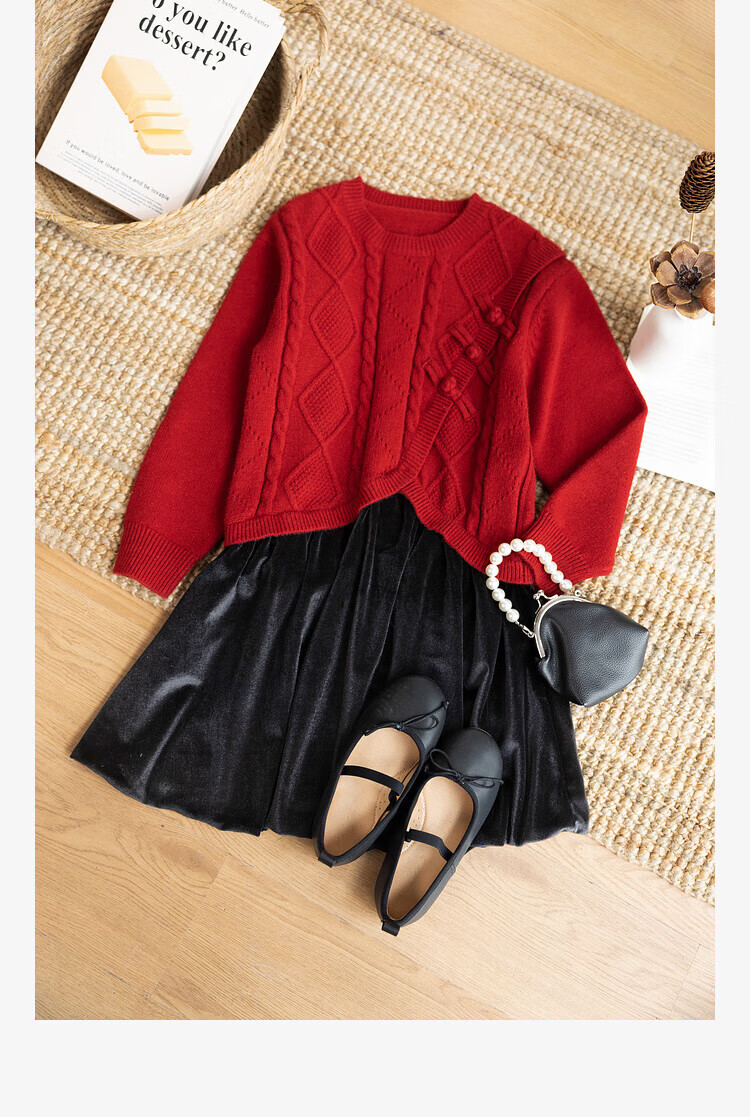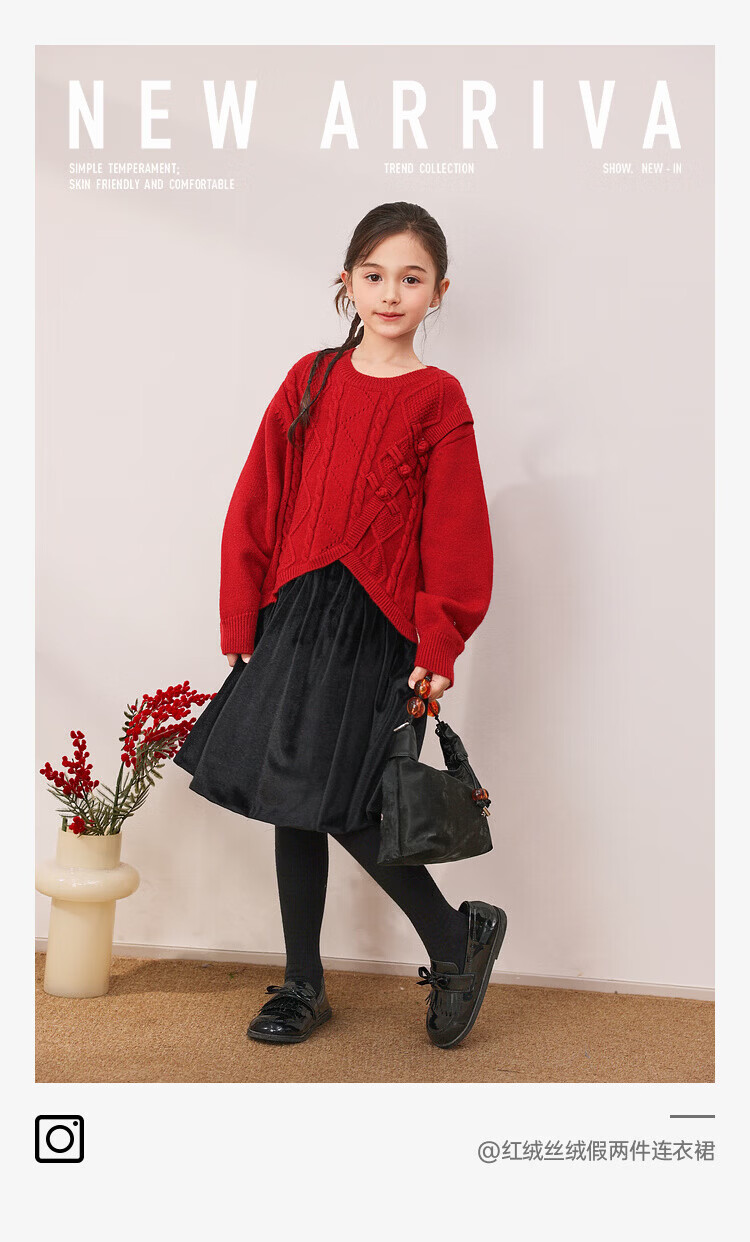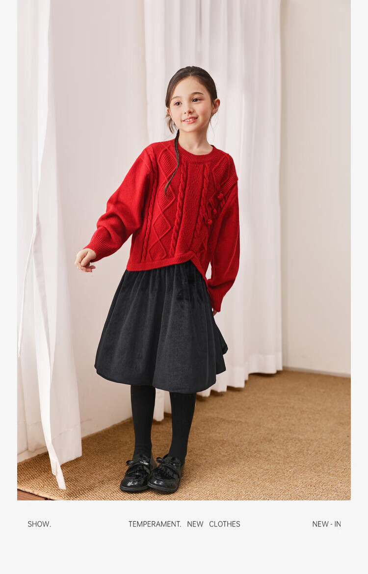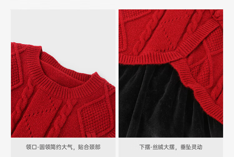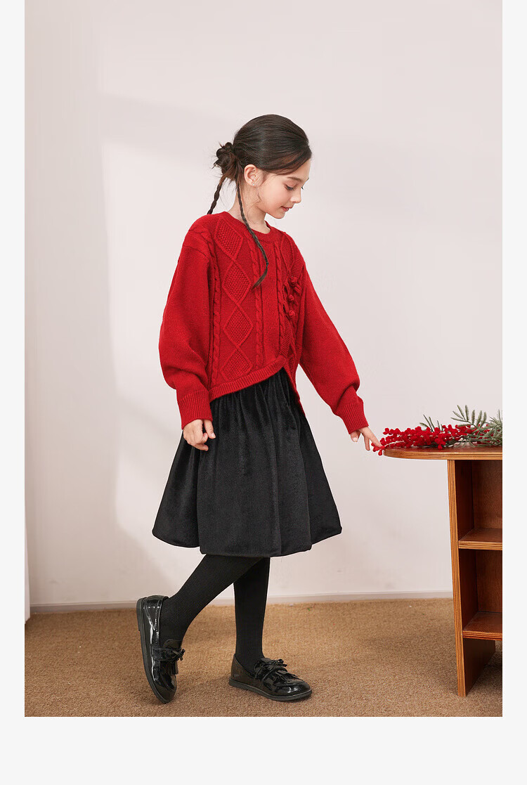 LUSON Chen Dazhu children's clothing girls dress fake two-piece red sweater velvet skirt children's skirt autumn and winter