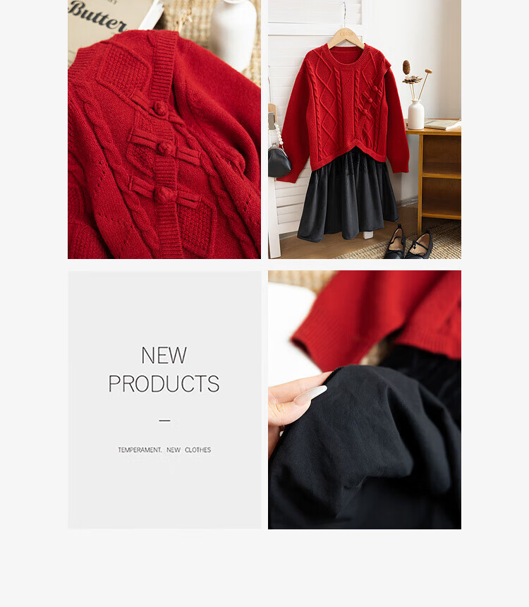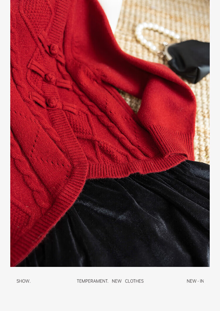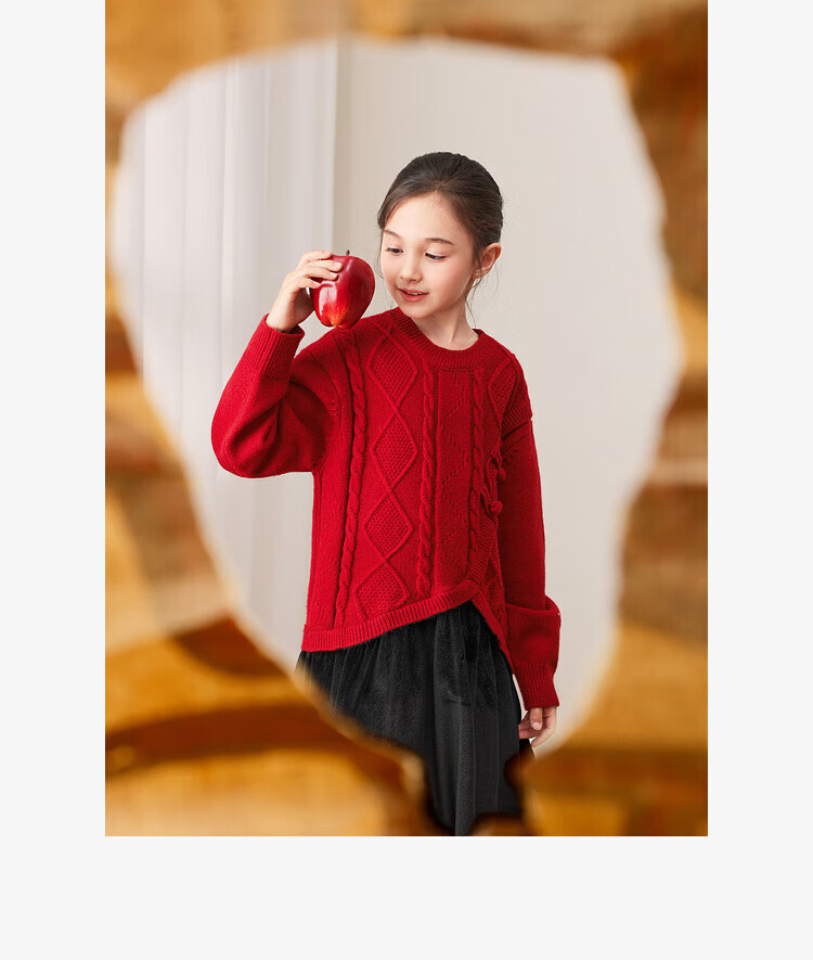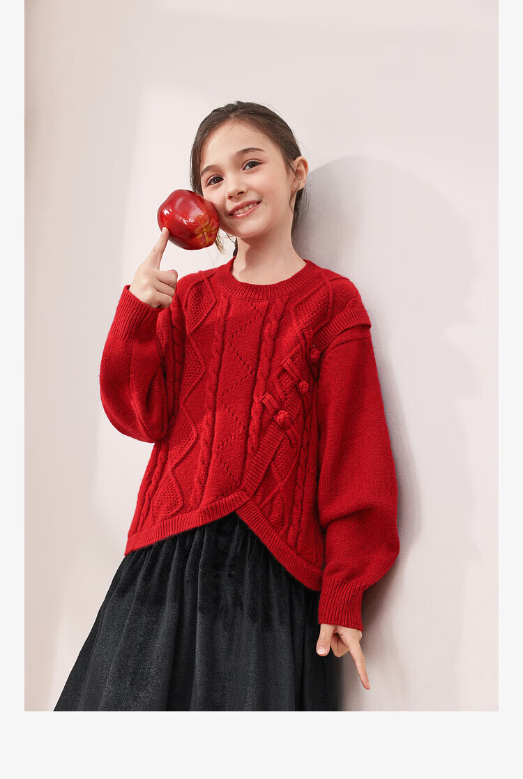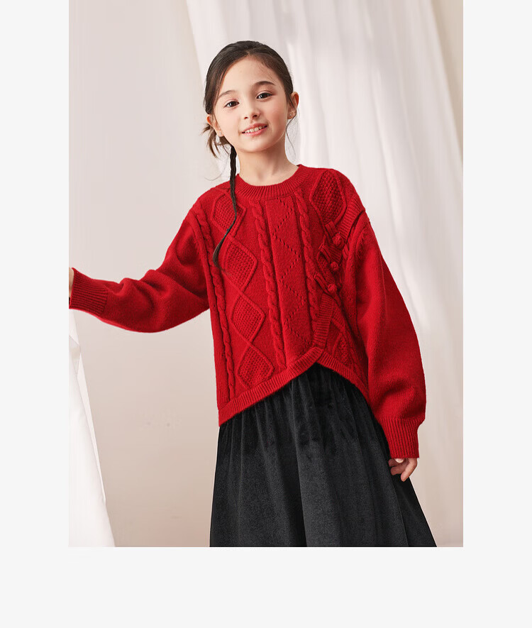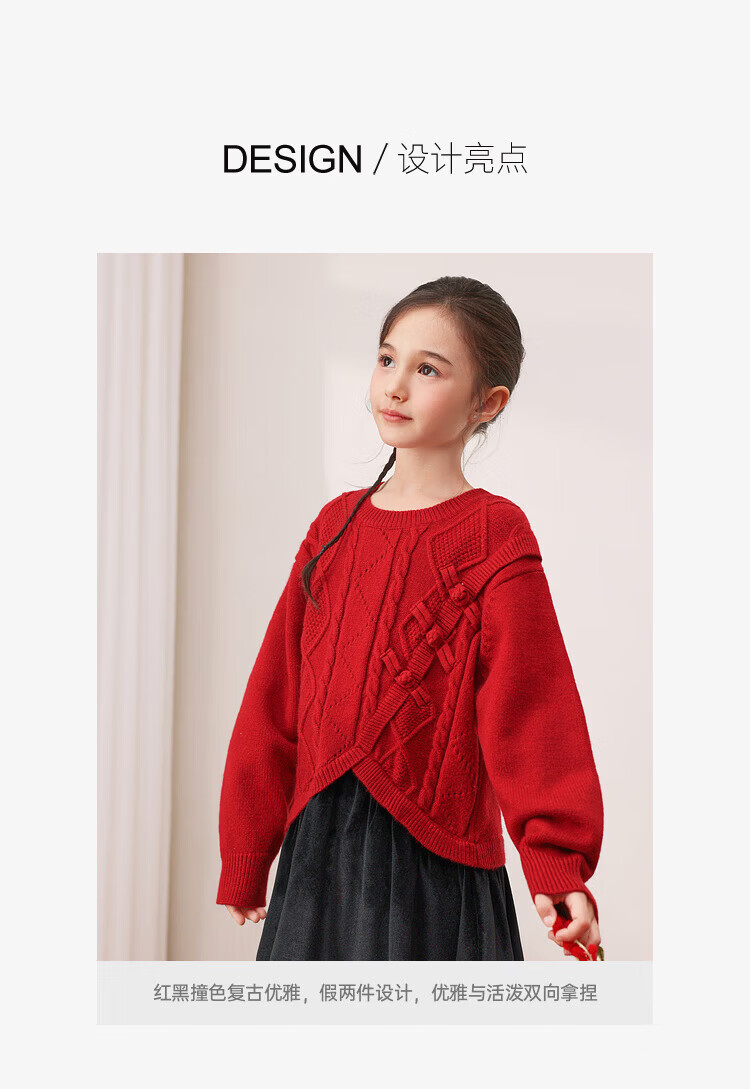 LUSON Chen Dazhu children's clothing girls dress fake two-piece red sweater velvet skirt children's skirt autumn and winter