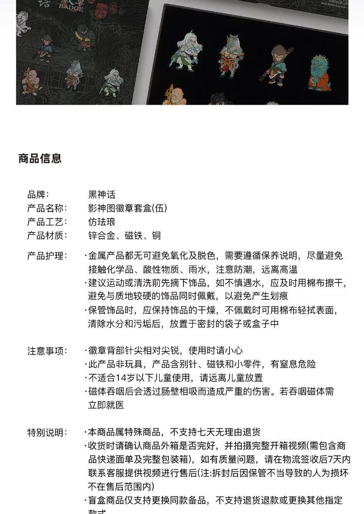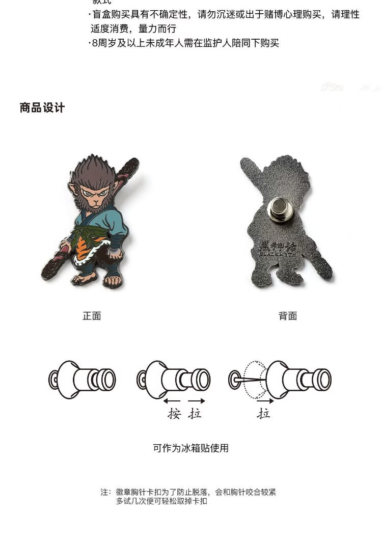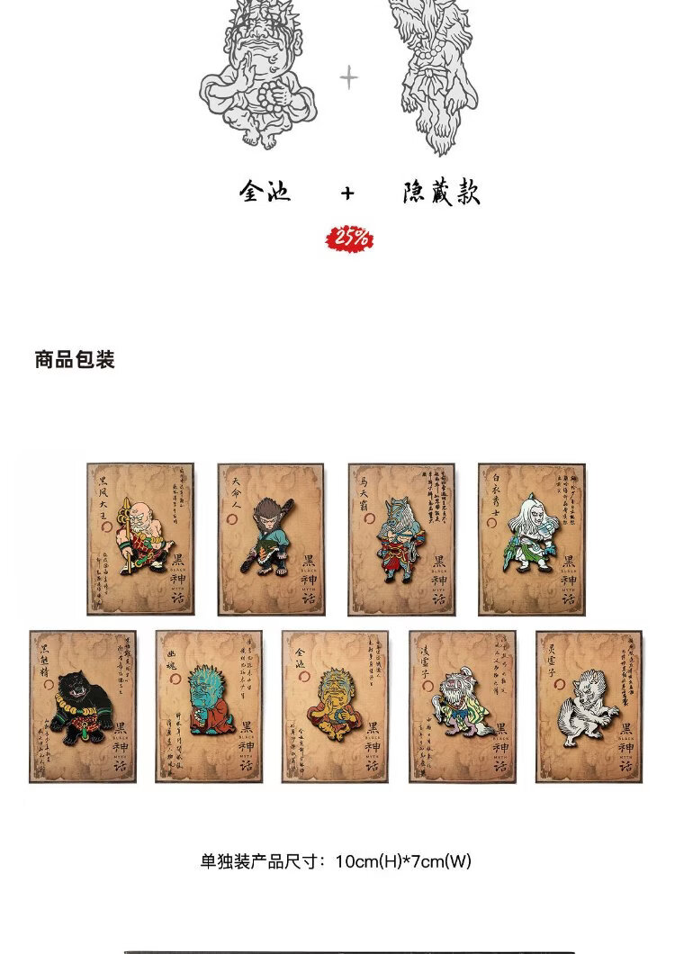 Black Myth Wukong Shadow God Picture Badge Five Metal Magnetic Brooch Pin Refrigerator Magnet Accessory Gift Ma Tianba