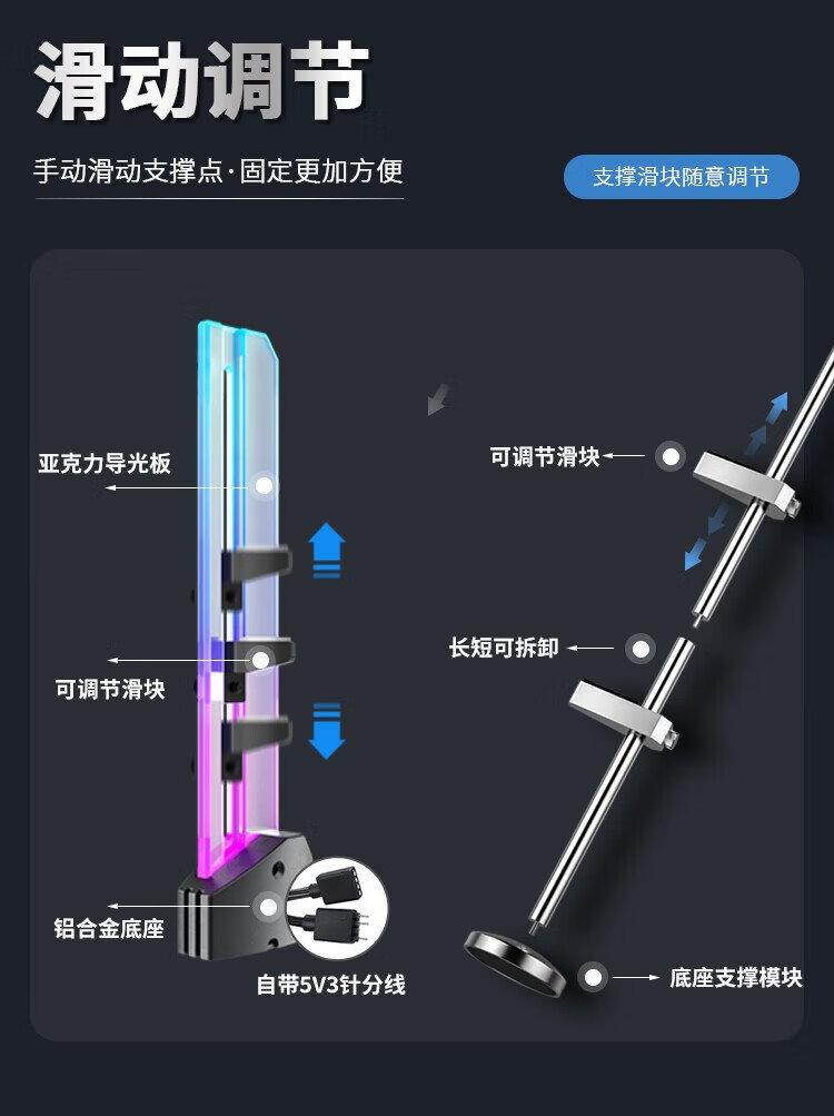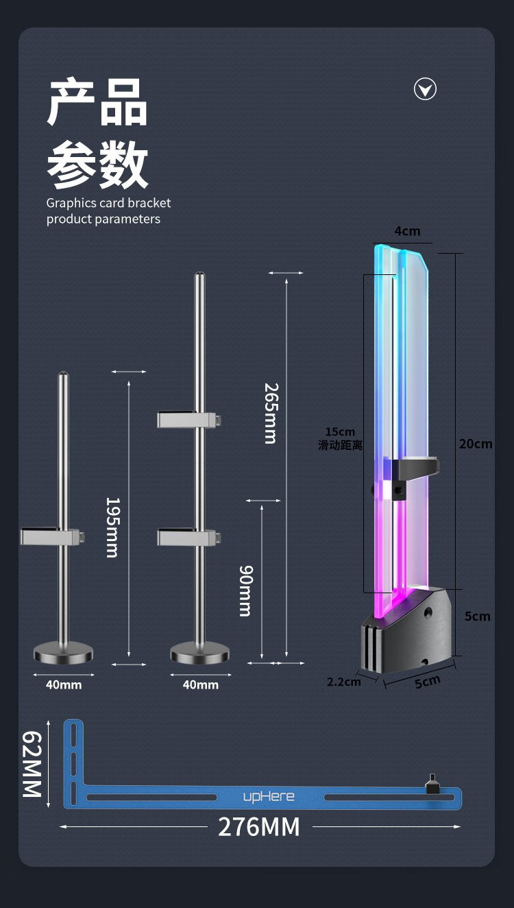 Gamer Fortress (upHere) magnetic graphics card bracket thousand Jin Jin is equal to 0.5 kg top support rotating small chassis vertical bracket ARGB divine light synchronization support pole computer chassis desktop fixed companion rotating bracket (49~80MM)