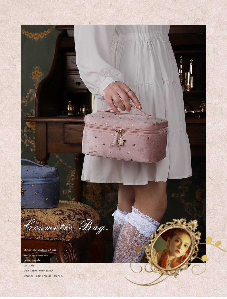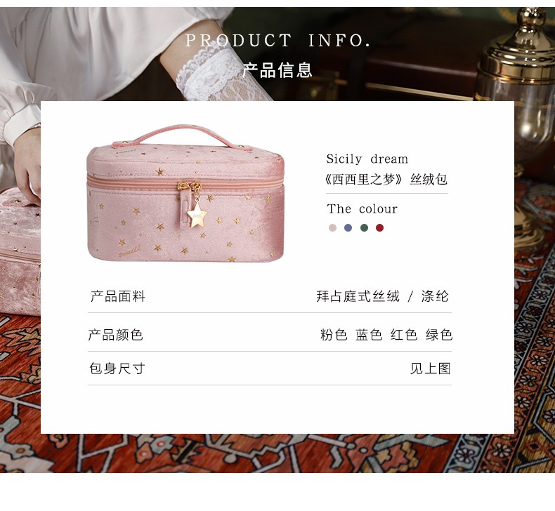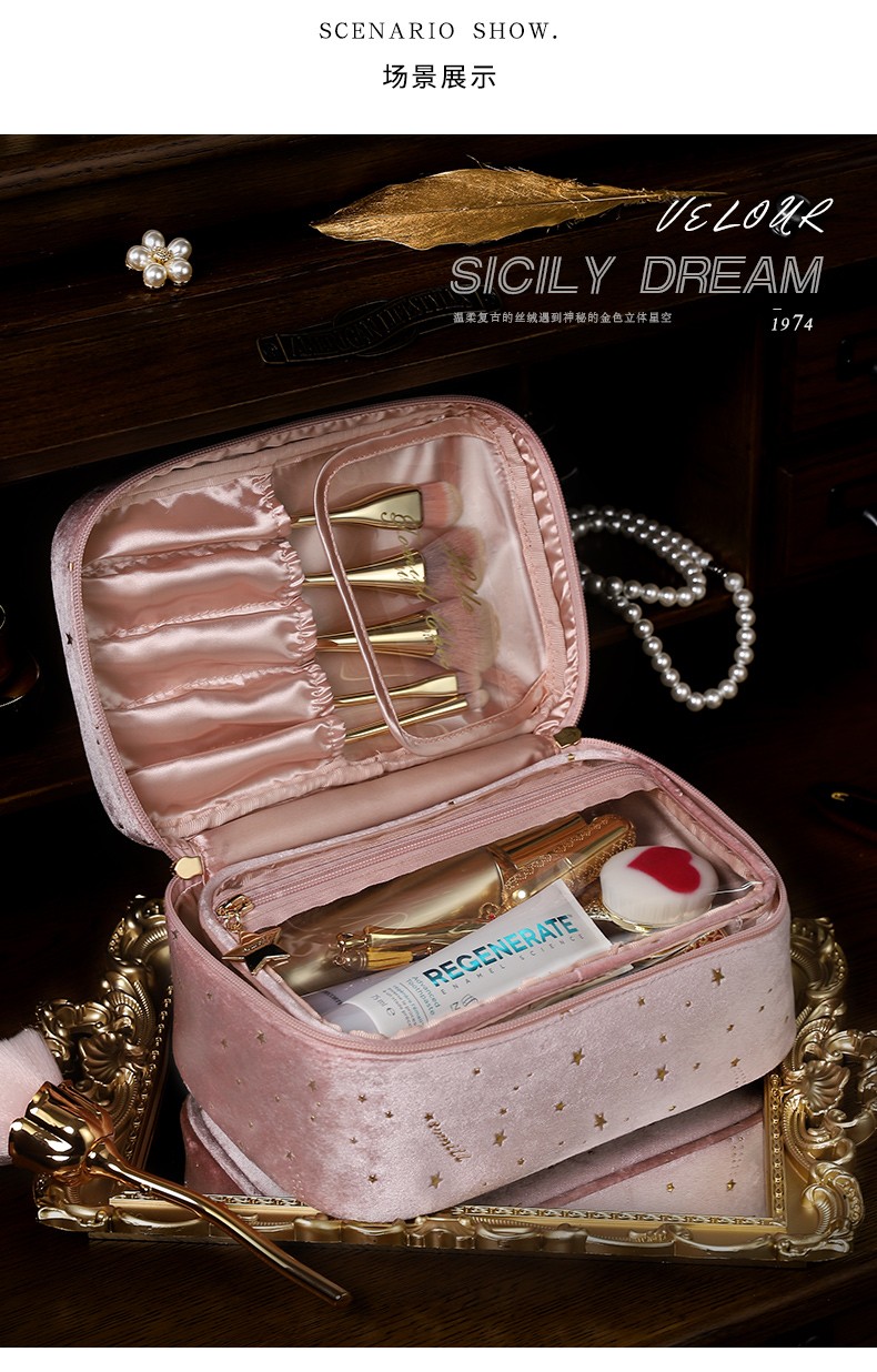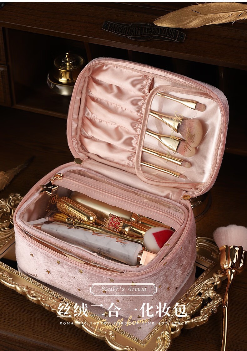 ToMill Cosmetic Bag Women's Large Capacity Skin Care Product Storage Bag Business Travel Toiletries Bag Velvet Portable Cosmetics Storage Bag Velvet Weaver-Pink + TPU Transparent Bag