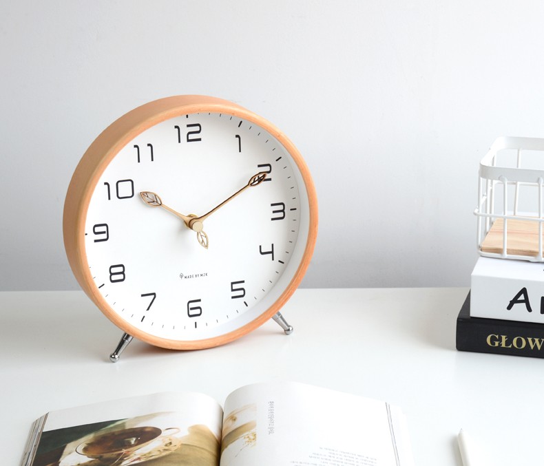 MJK table clock simple clock ornaments Nordic desktop clock living room home desktop modern personalized creative pendulum clock B style wood color