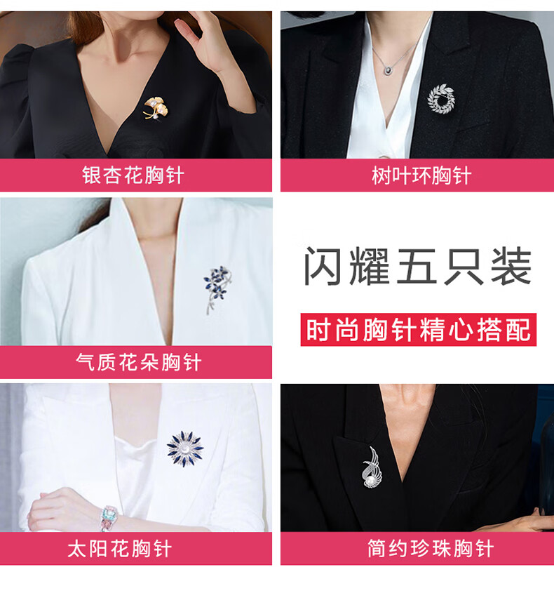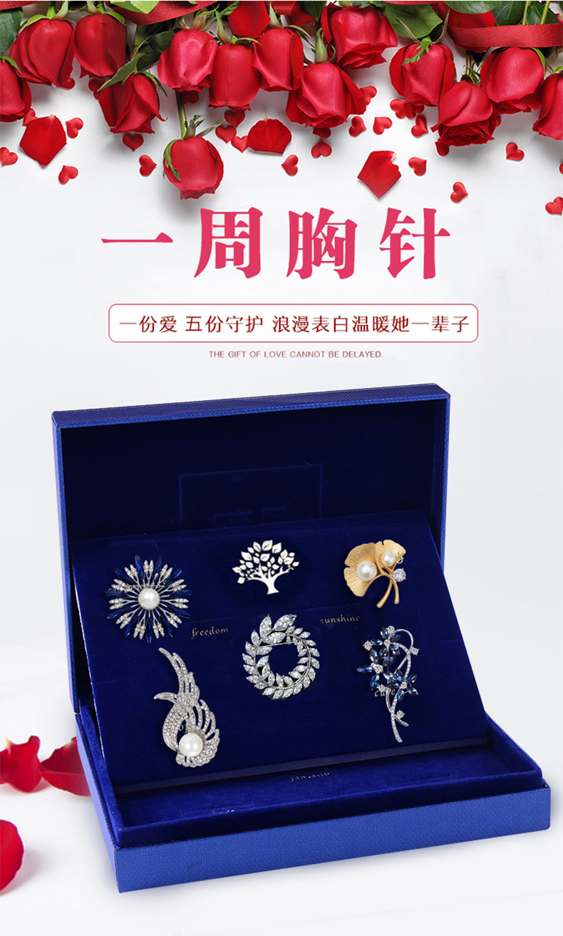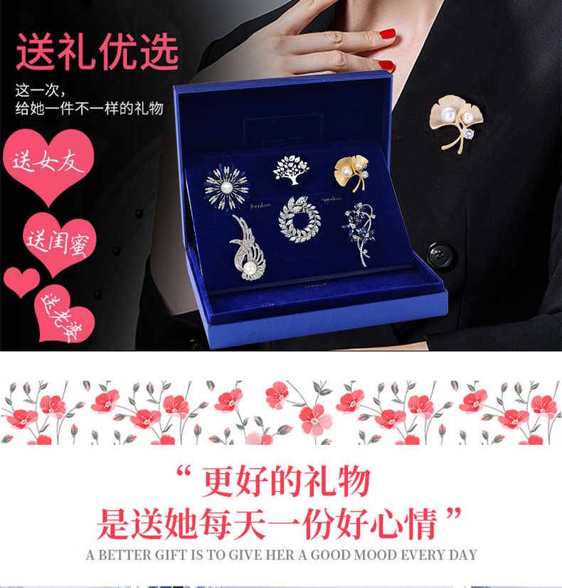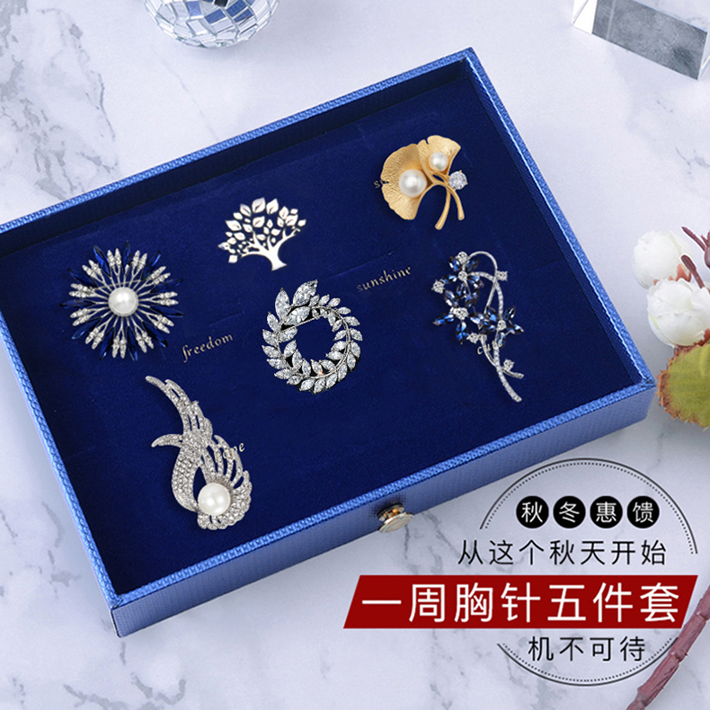 Ancient brooch, high-end women's light luxury corsage gift box, exquisite niche pin, silk scarf buckle, birthday gift for women, practical T319 five brooch set box