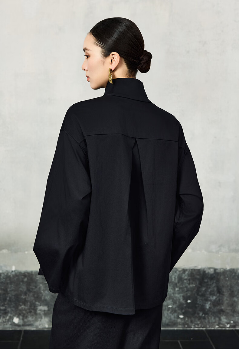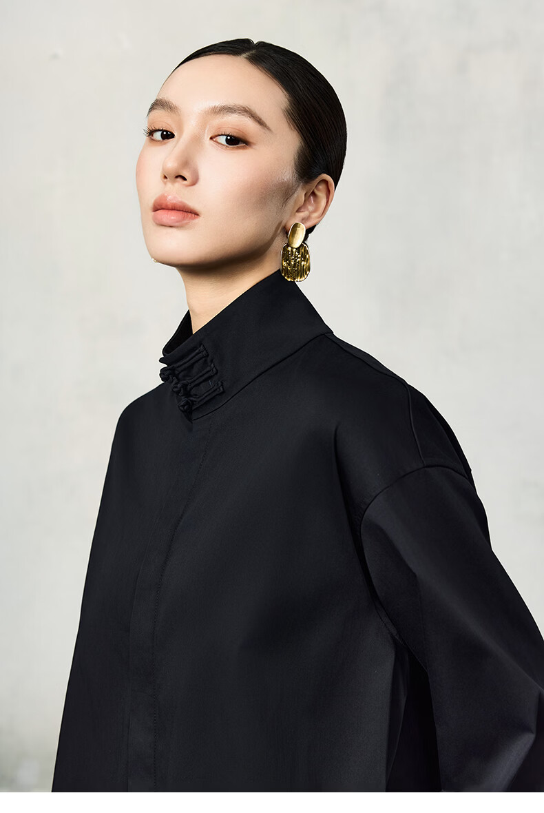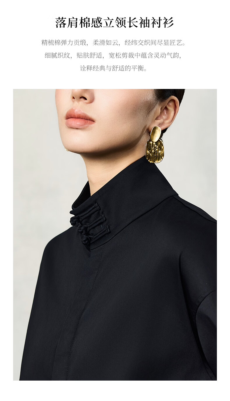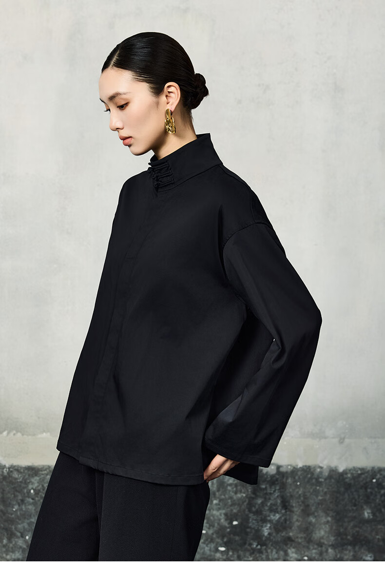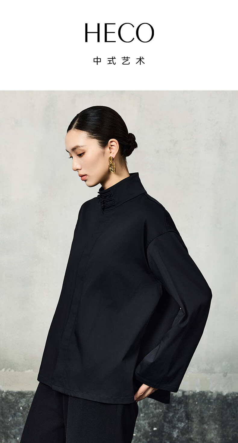 HECO Suyin New Chinese Style National Style Stand Collar Long Sleeve Shirt Women 2025 New Light Luxury Shirt Black S