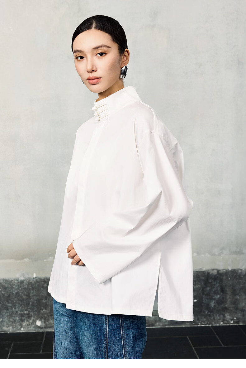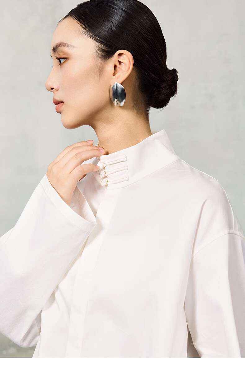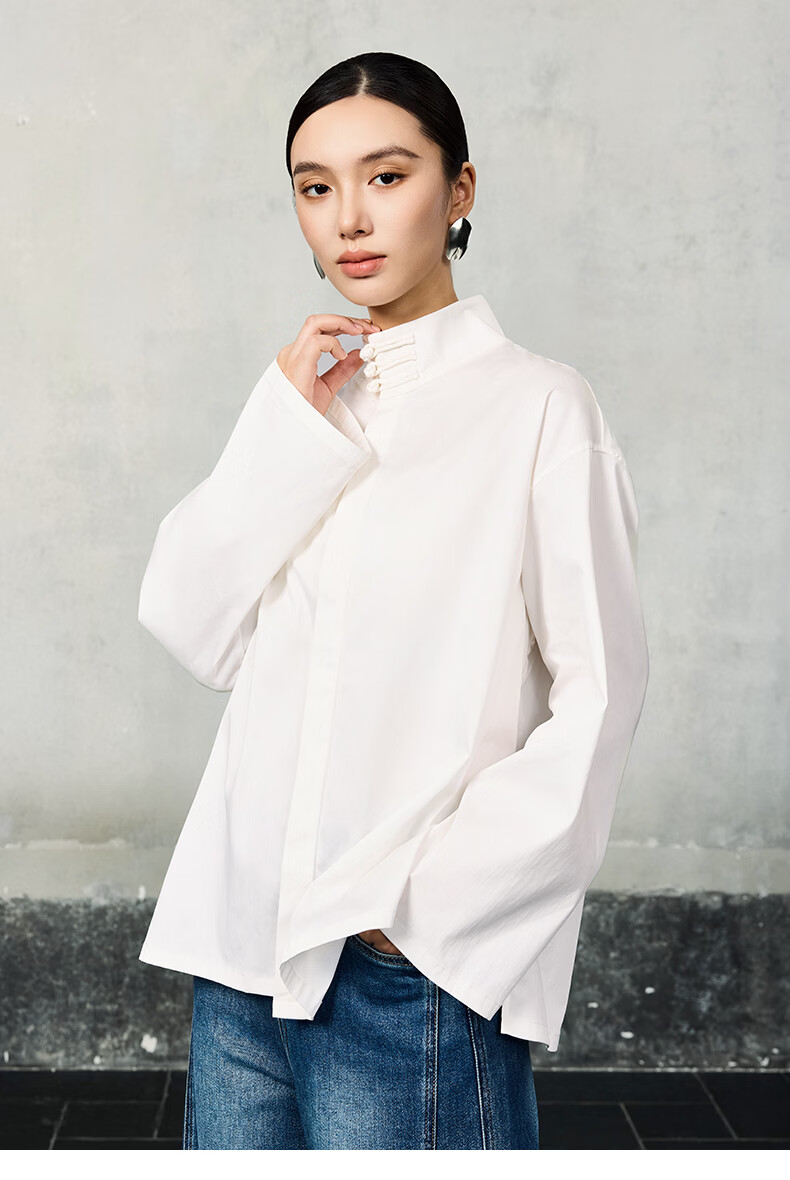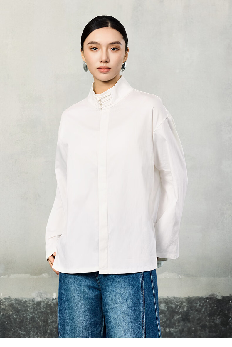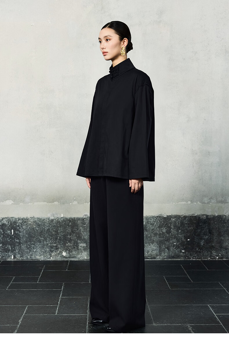 HECO Suyin New Chinese Style National Style Stand Collar Long Sleeve Shirt Women 2025 New Light Luxury Shirt Black S