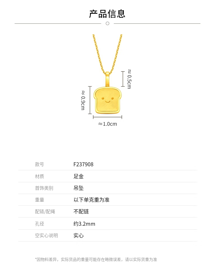 Chow Tai Fook ING series toast bun gold pendant (labor cost 180) about 1.4g F237908 gift