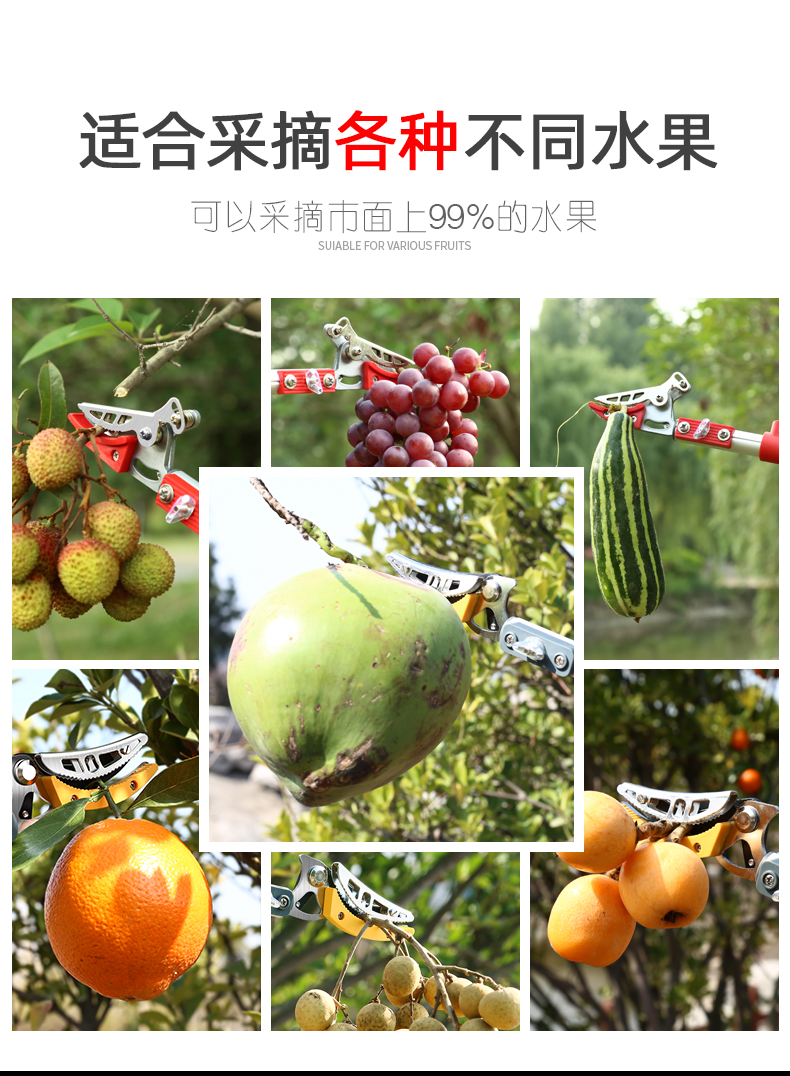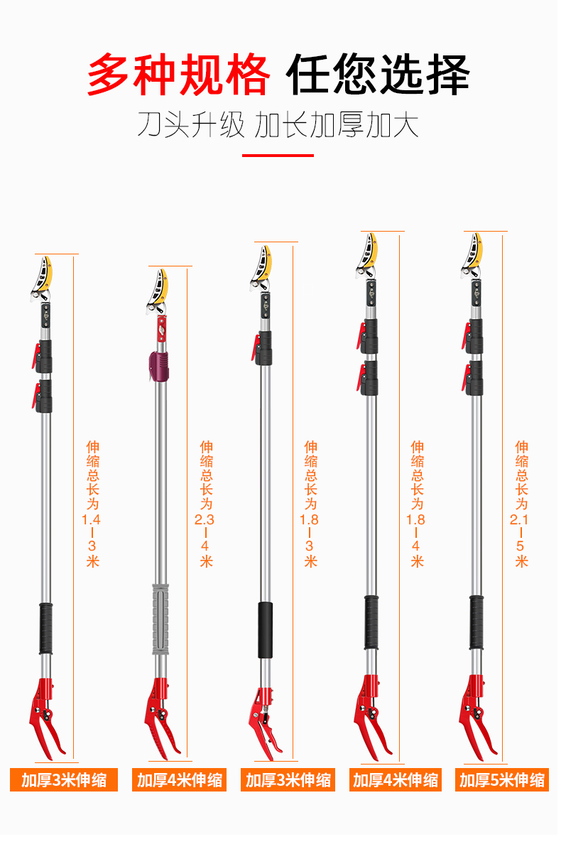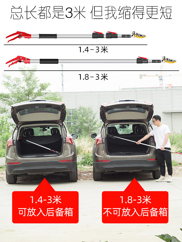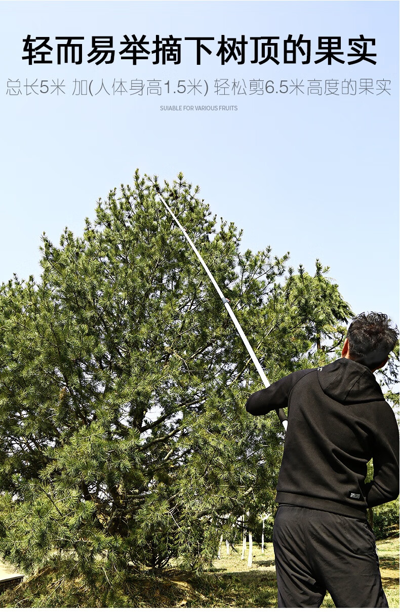 Germany Yinlong Island fruit picking lychee and bayberry fruit picking artifact fruit tree scissors high-altitude telescopic multi-functional fruit picker high branch shears thickened aluminum alloy 1.3-2.3 meters telescopic large blade model comes standard