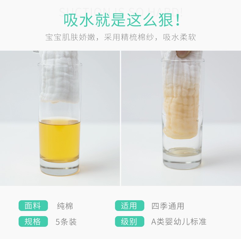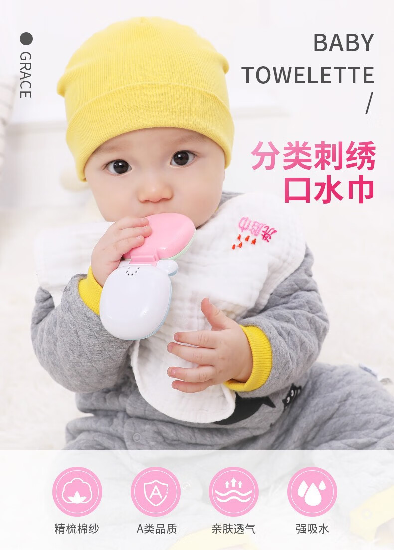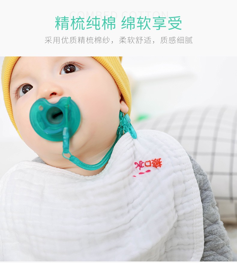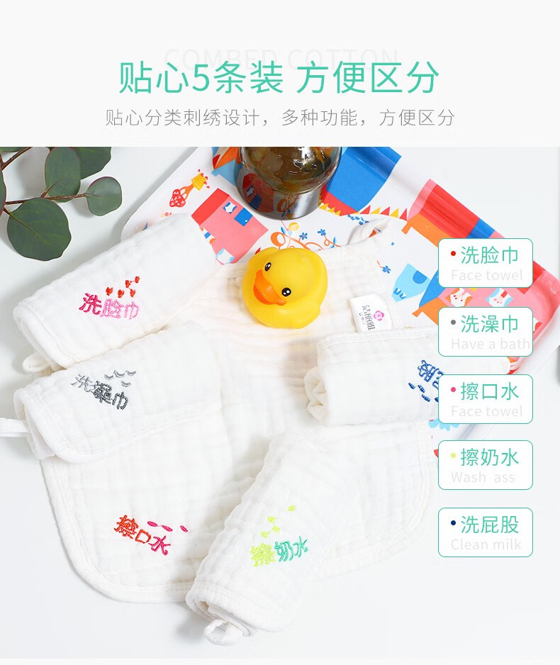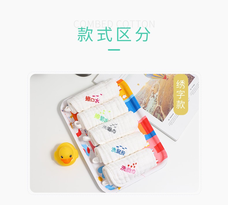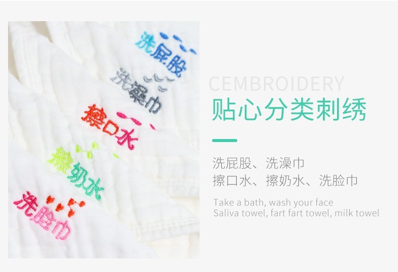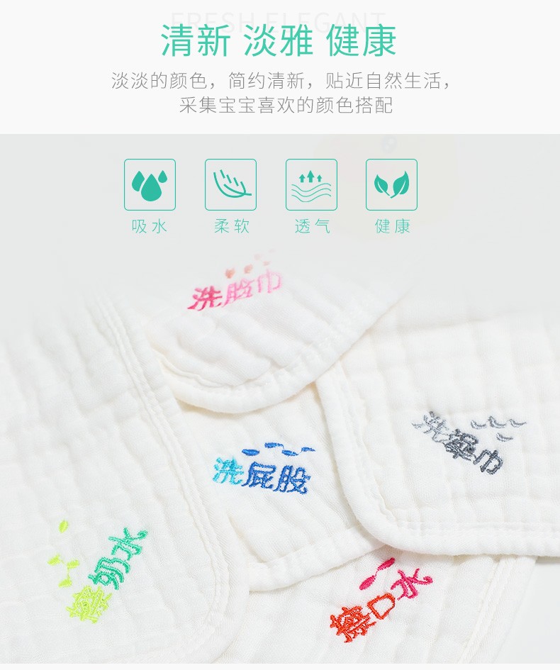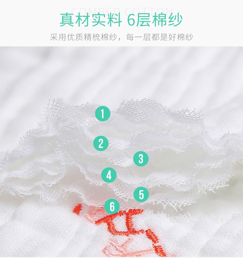 Jialiya baby face towel saliva towel Newborn baby supplies small square towel pure cotton 6-layer gauze towel embroidery style 5 pack one towel multi-purpose