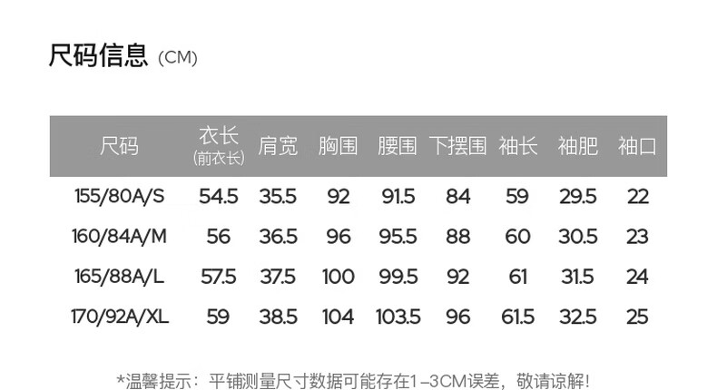 China (cm) 160-165/84-86 165-170 / 88-90 167-172 / 92-96 168-173 / 98-102 170-176 / 106-110