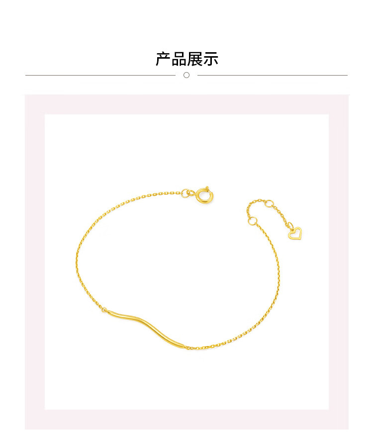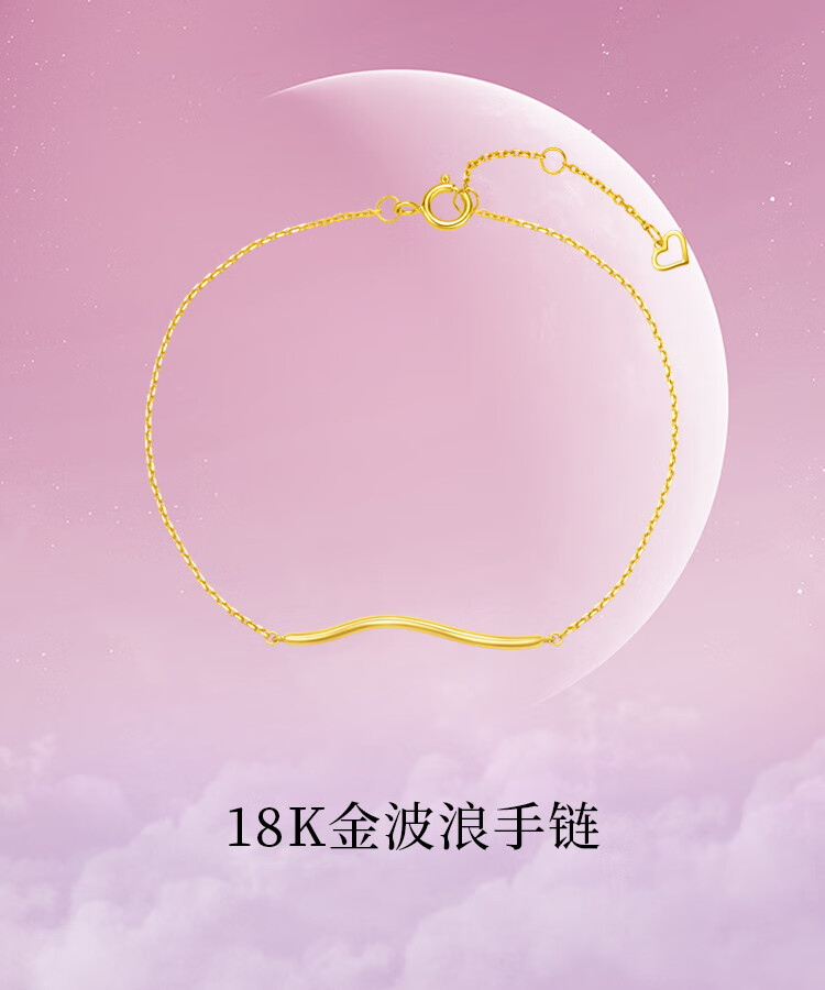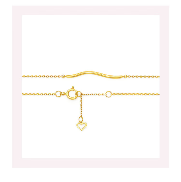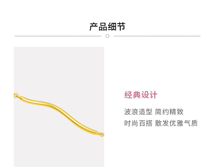 Chow Tai Fook SOINLOVE minimalist 18K gold ripple bracelet ins style commuting personality exquisite smile bracelet for women VE157 about 15cm