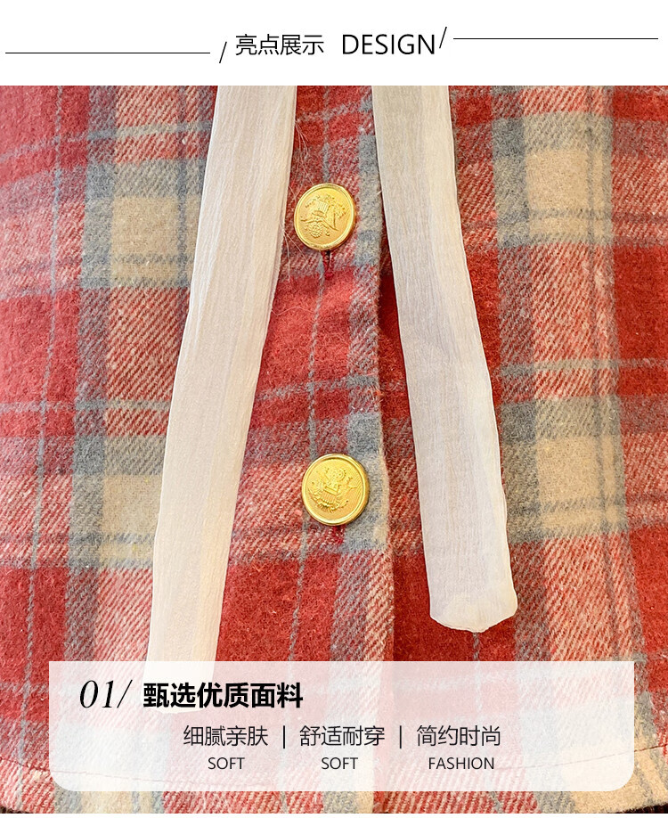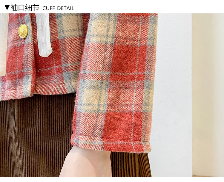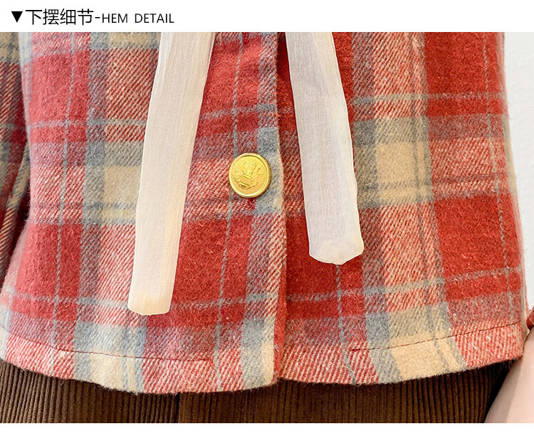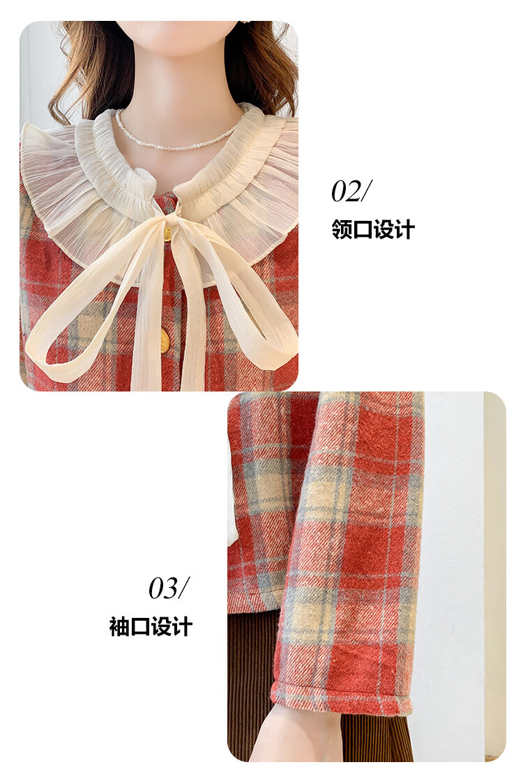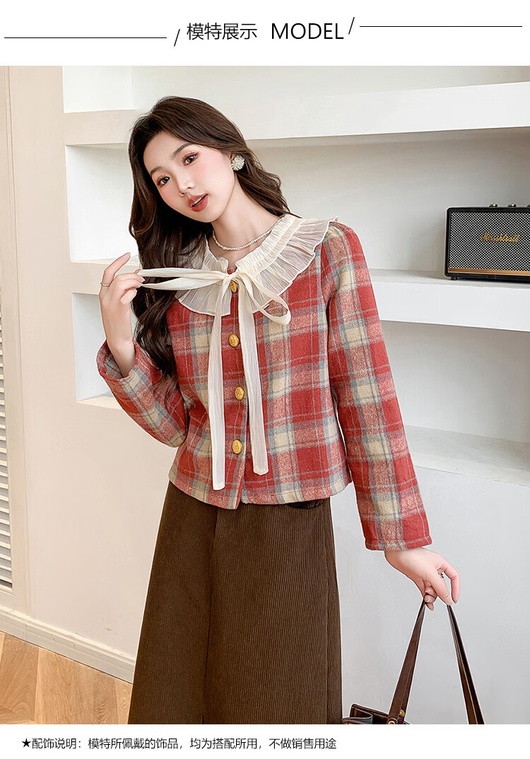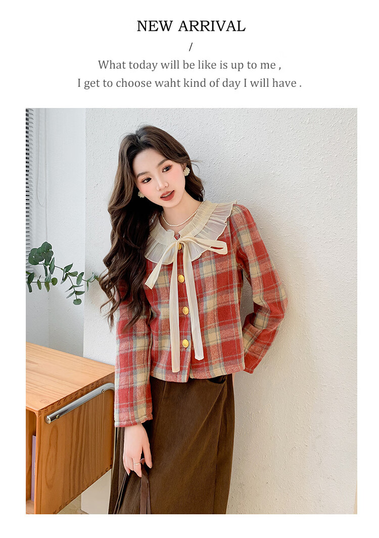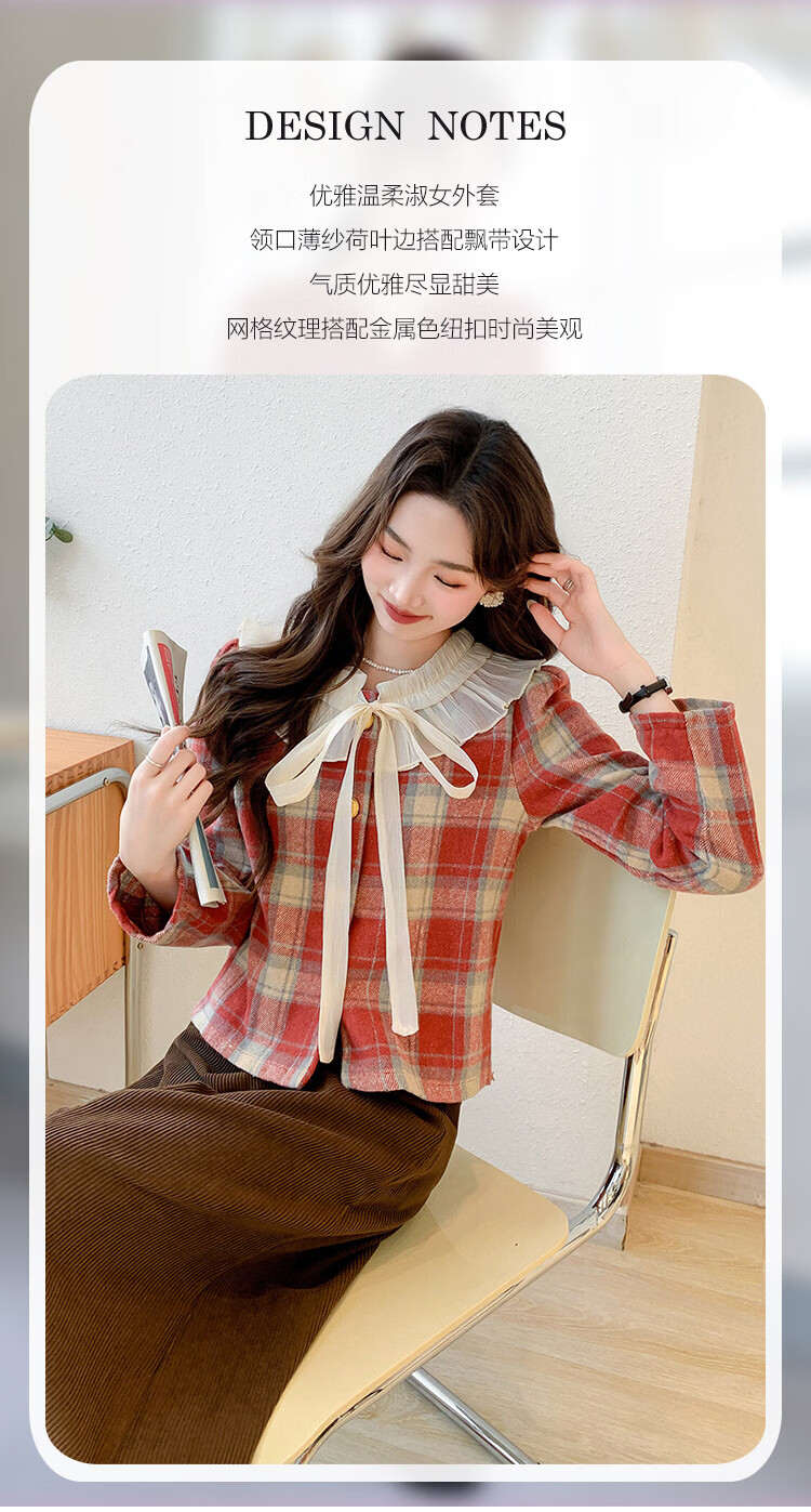 Ives (ITISF4) Spring Festival Sweet Temperament Jacket Spring Slimming Exquisite Ruffled Plaid Versatile Top Shirt Red Plaid S