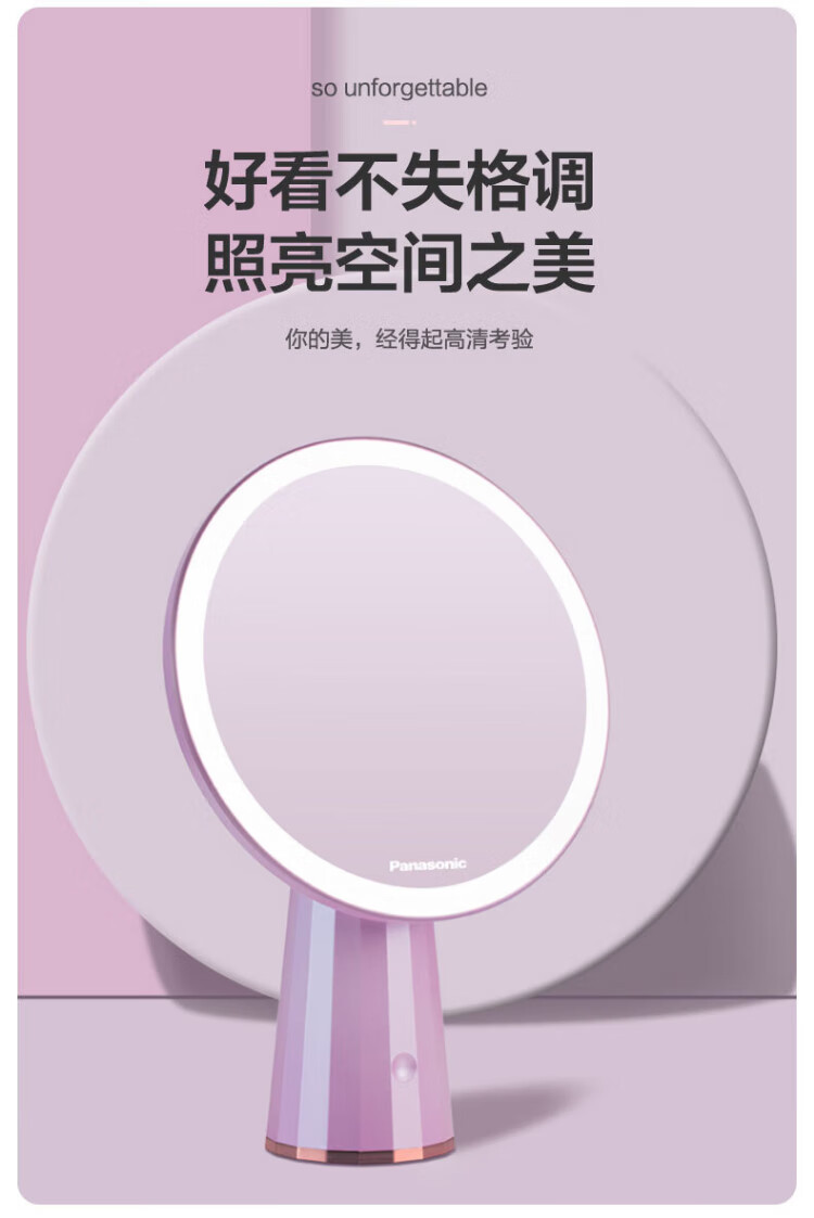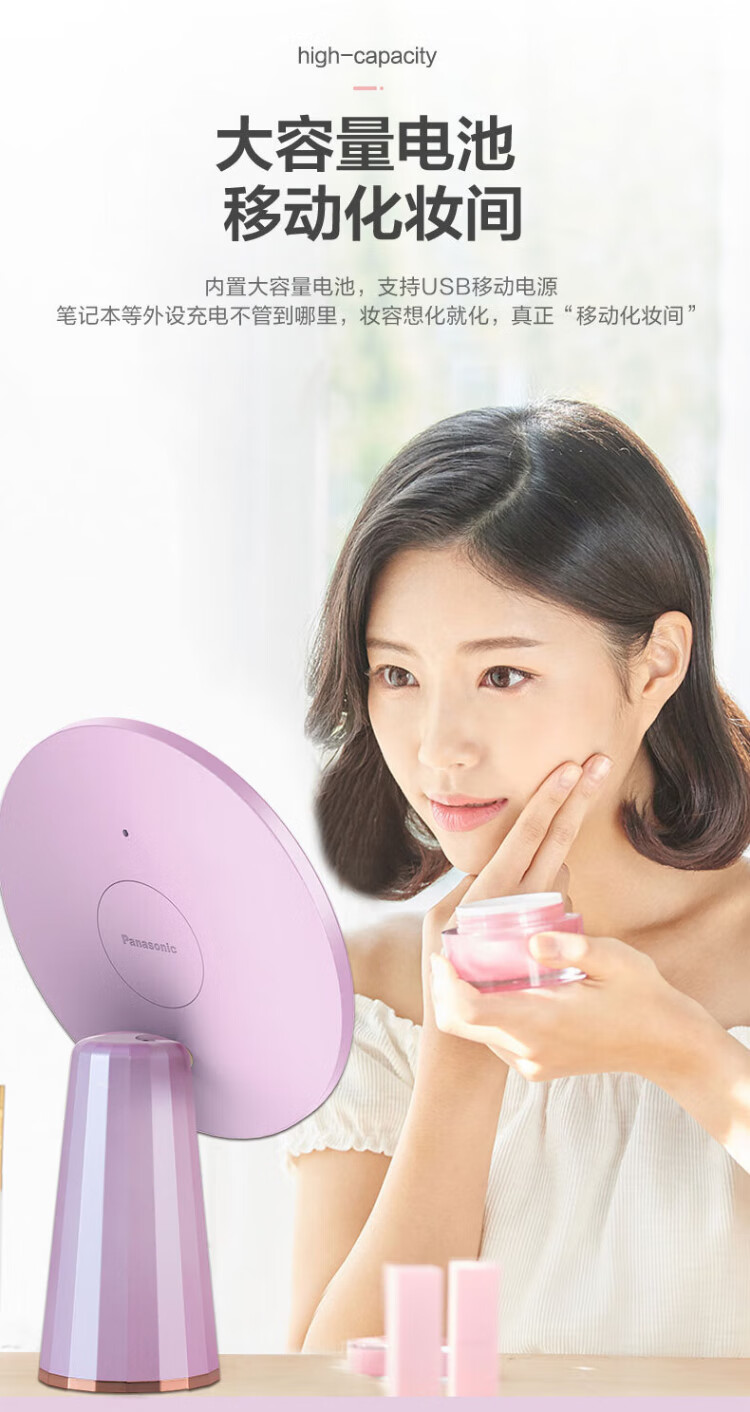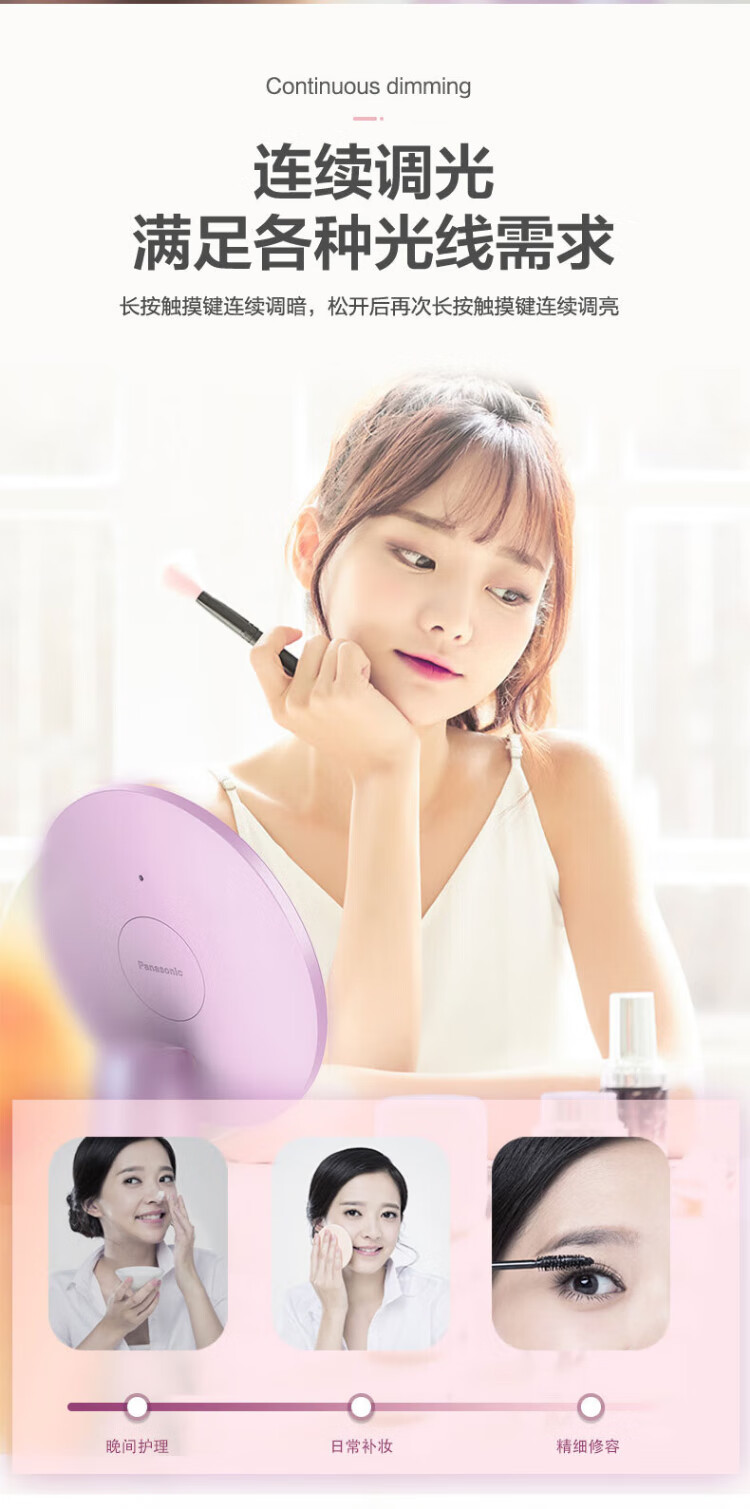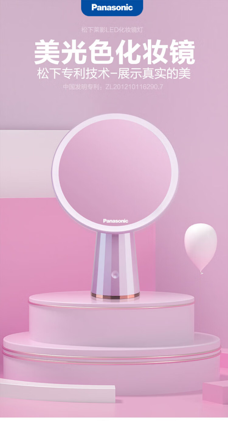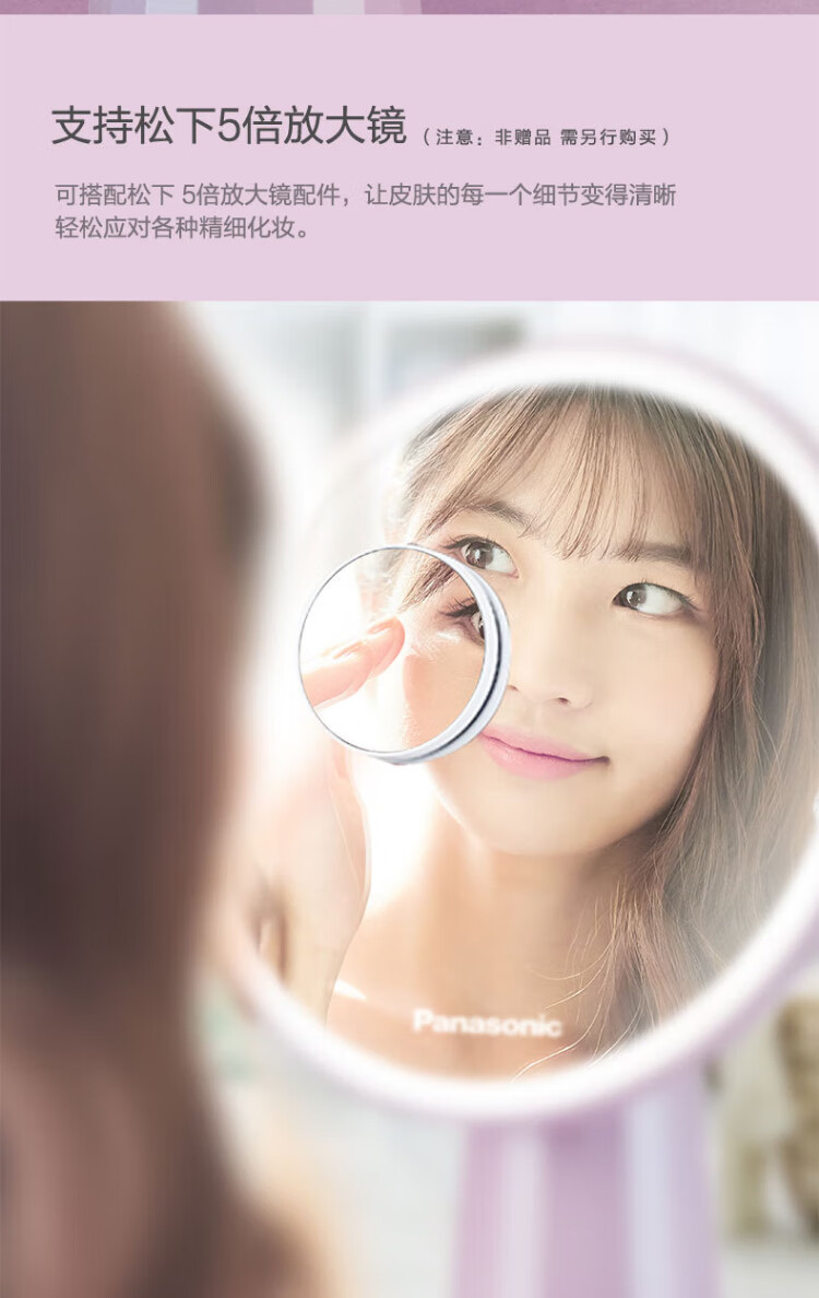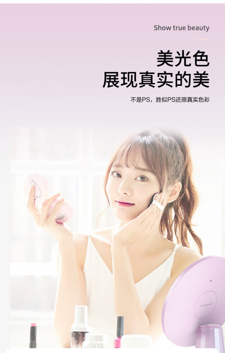 Panasonic LED makeup mirror with light, smart makeup mirror with light, portable light-filling makeup mirror, Christmas gift, girly pink
