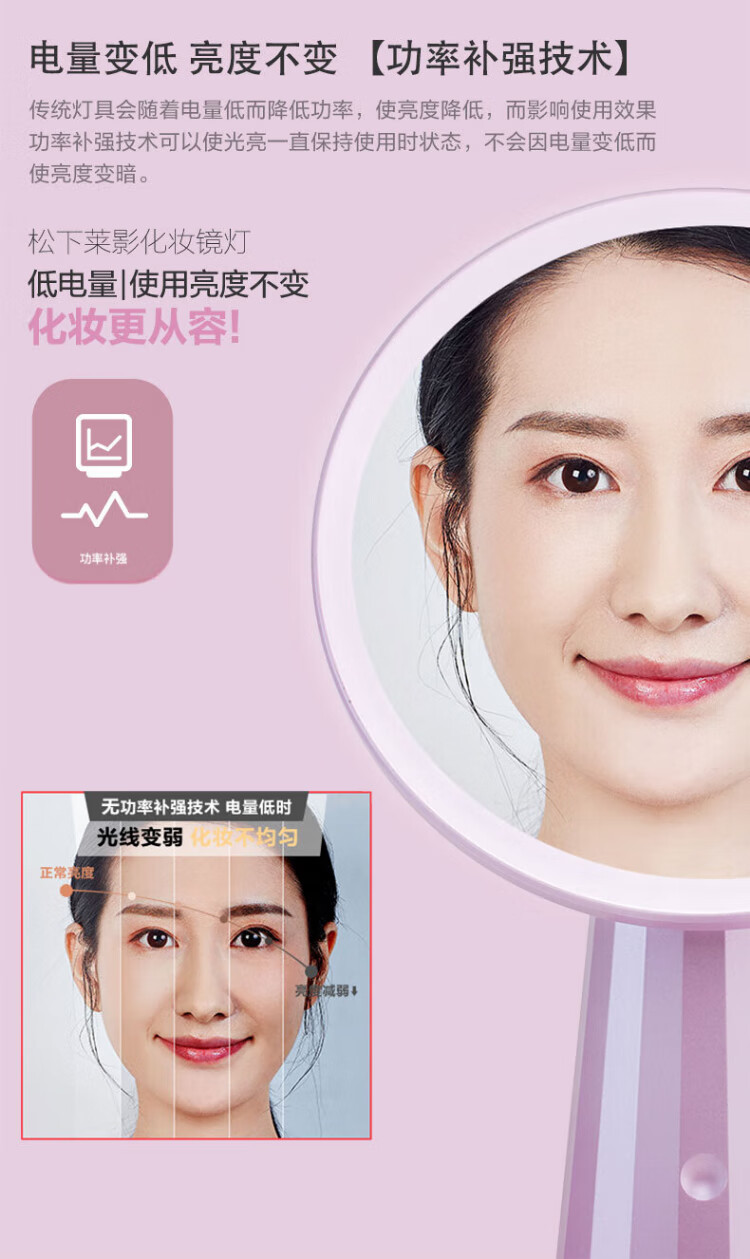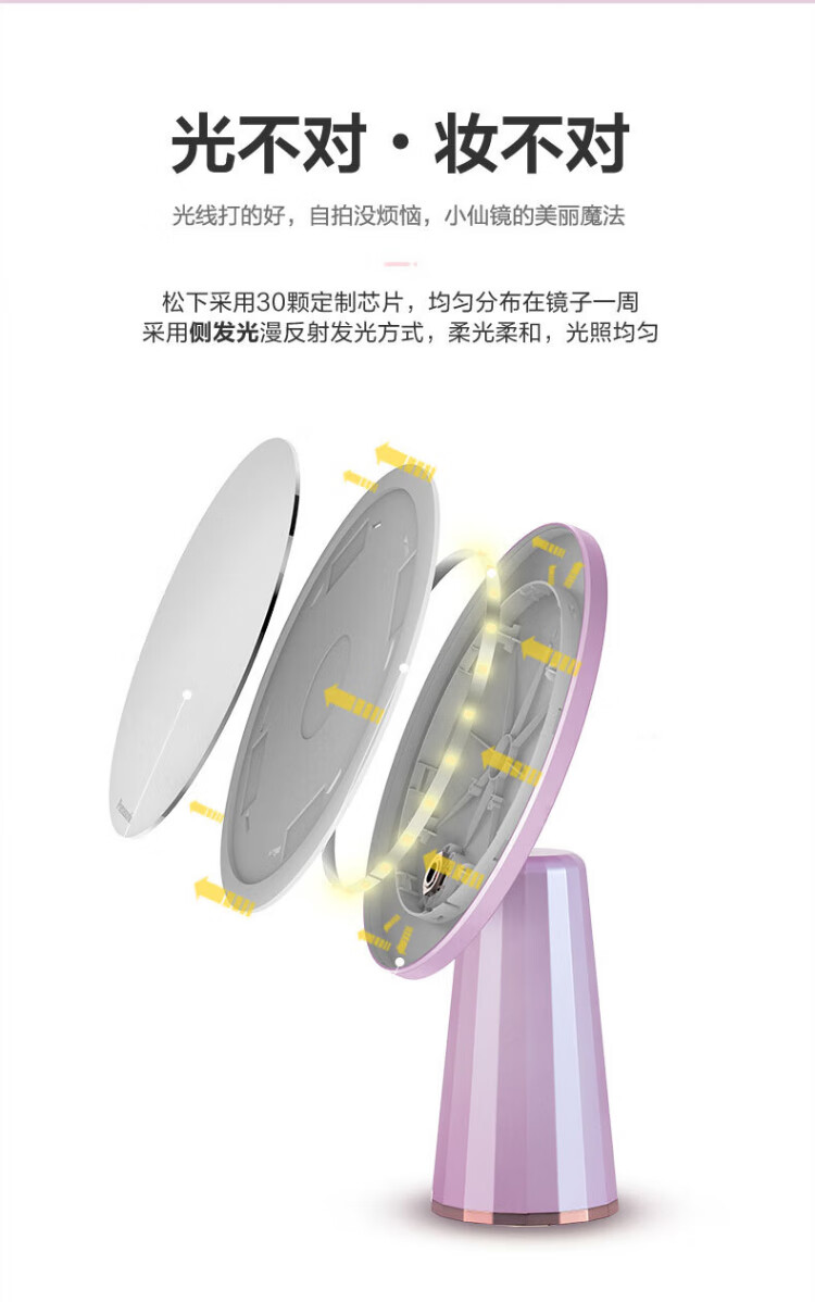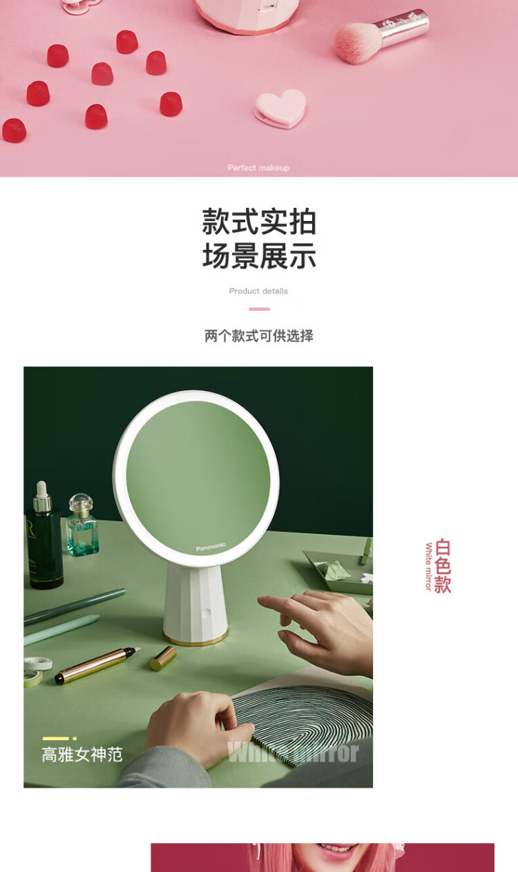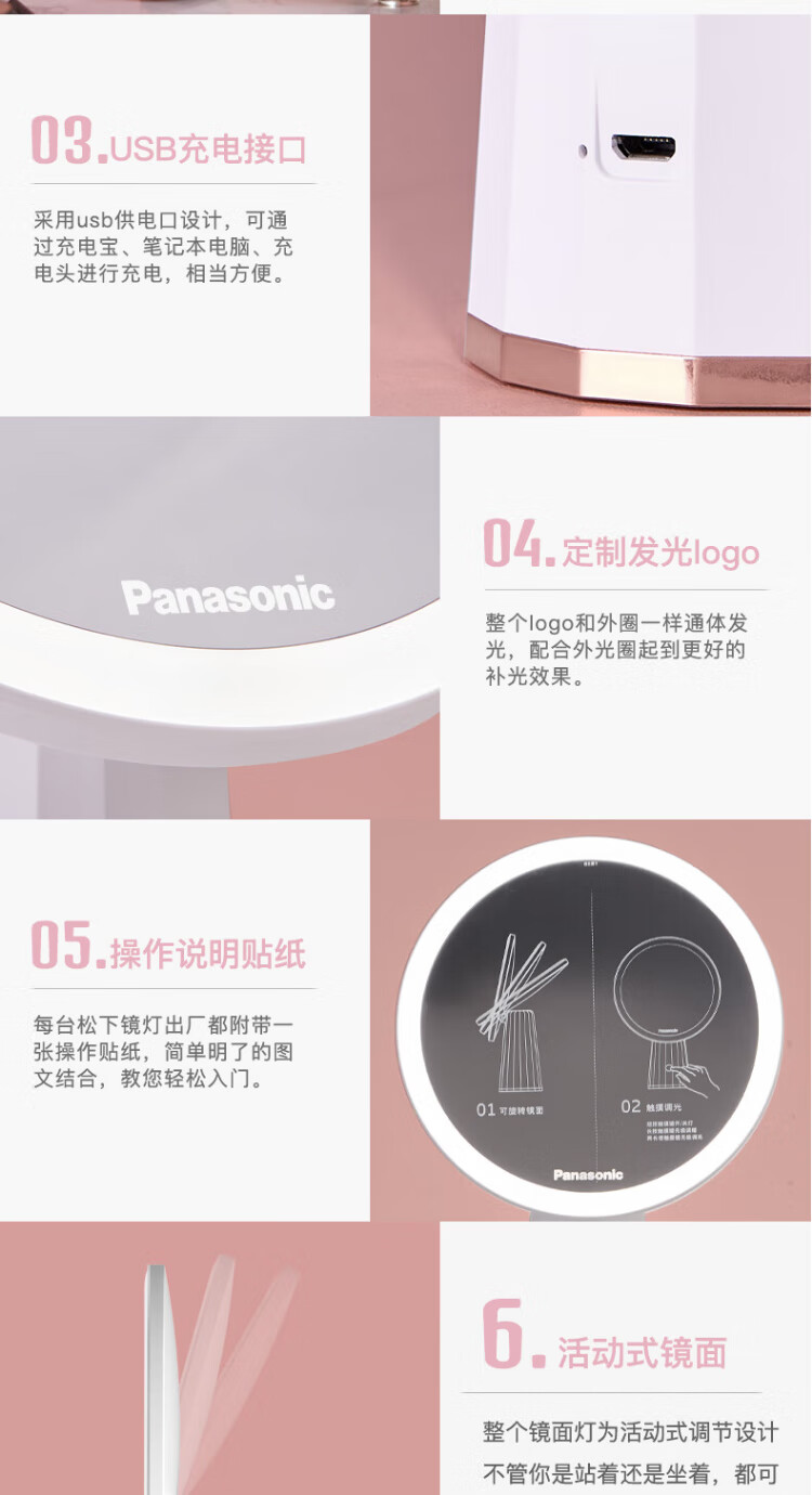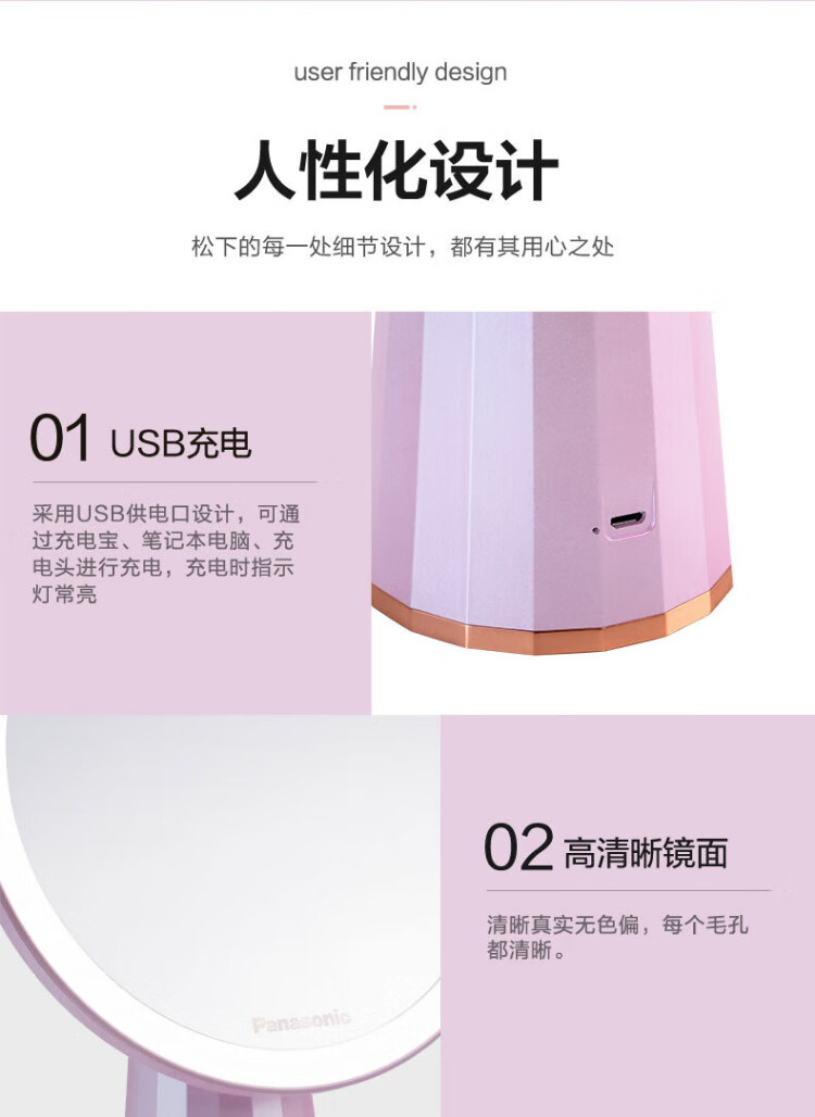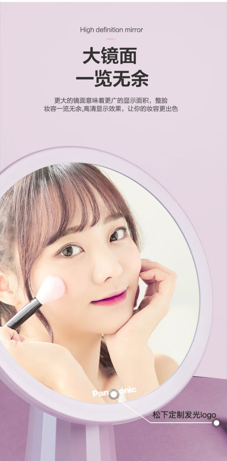 Panasonic LED makeup mirror with light, smart makeup mirror with light, portable light-filling makeup mirror, Christmas gift, girly pink