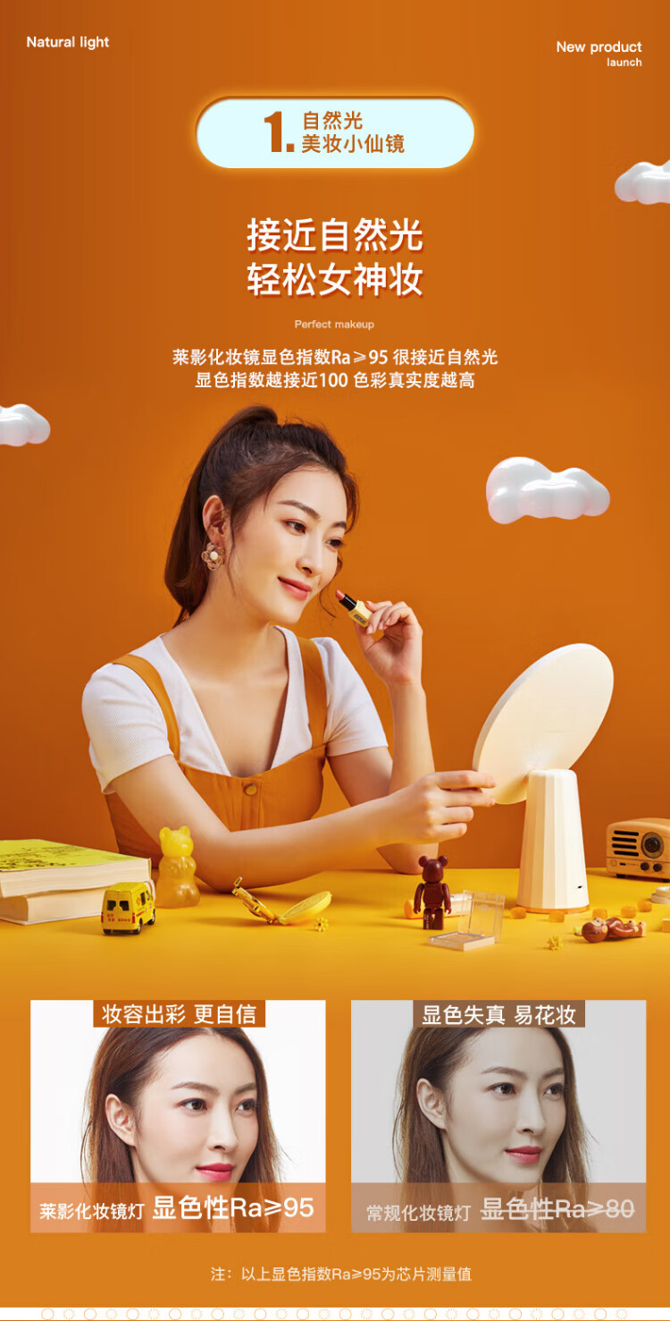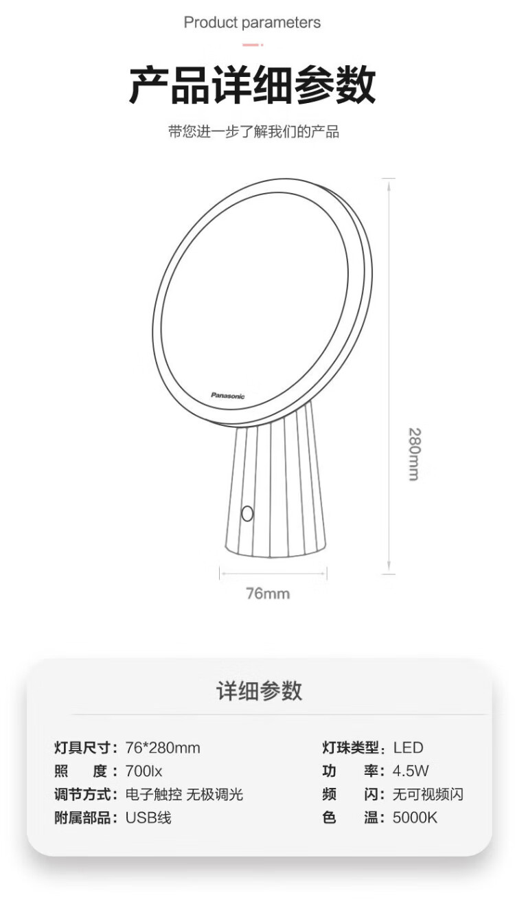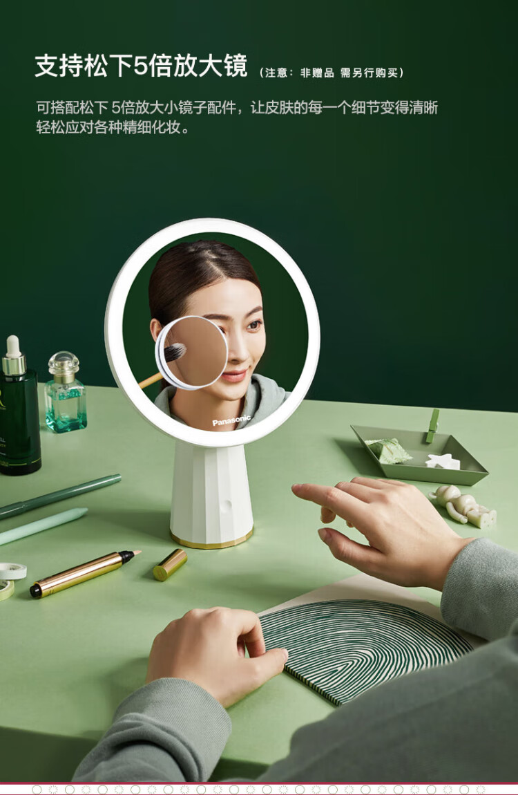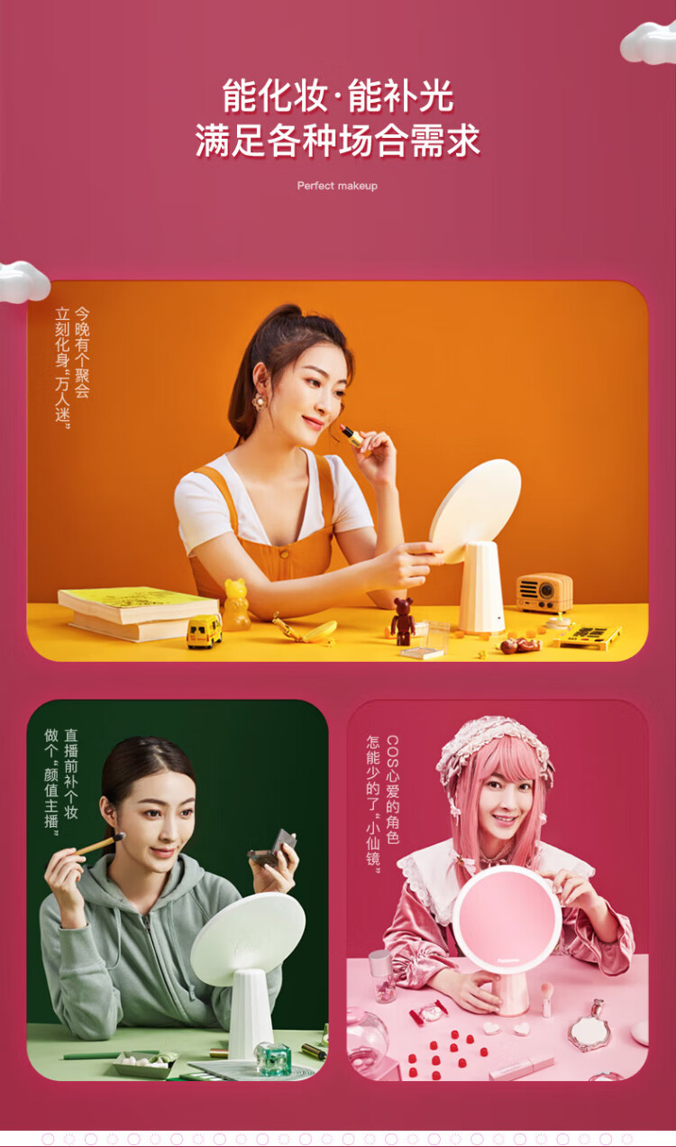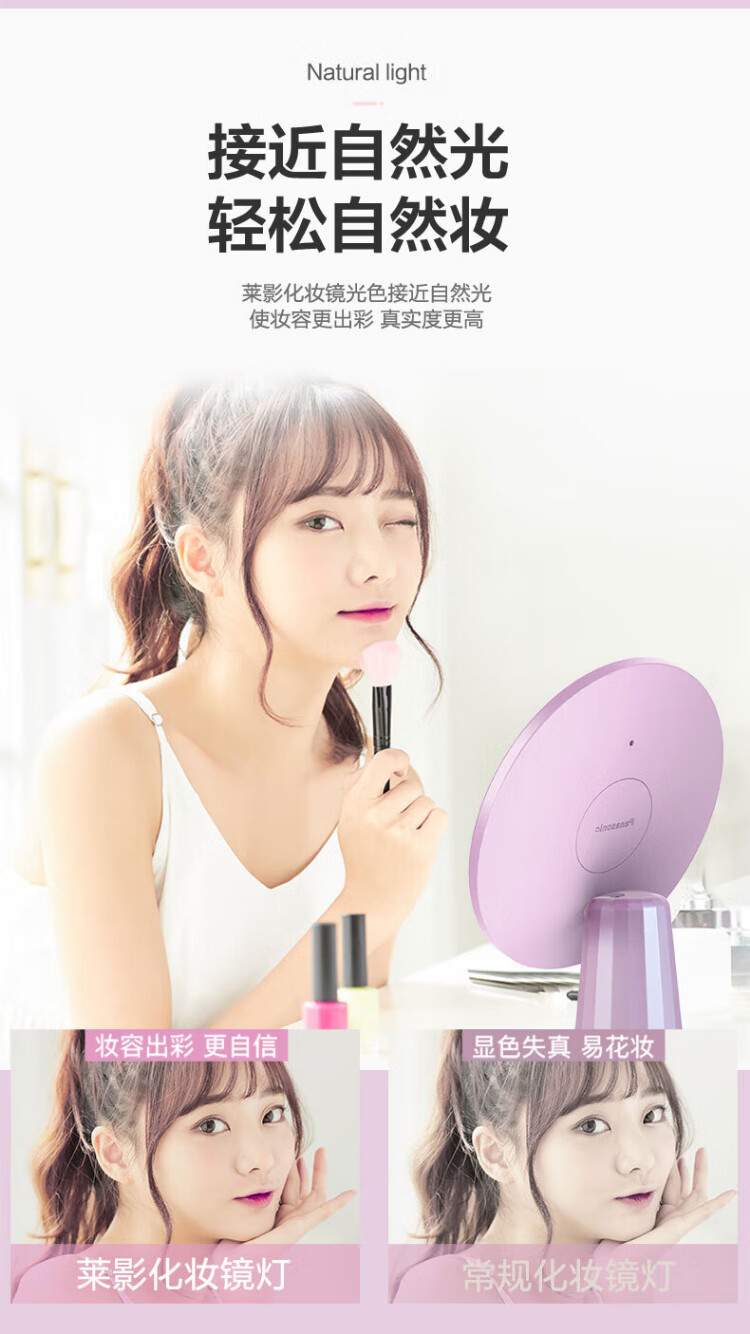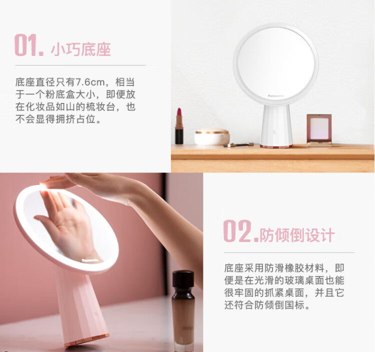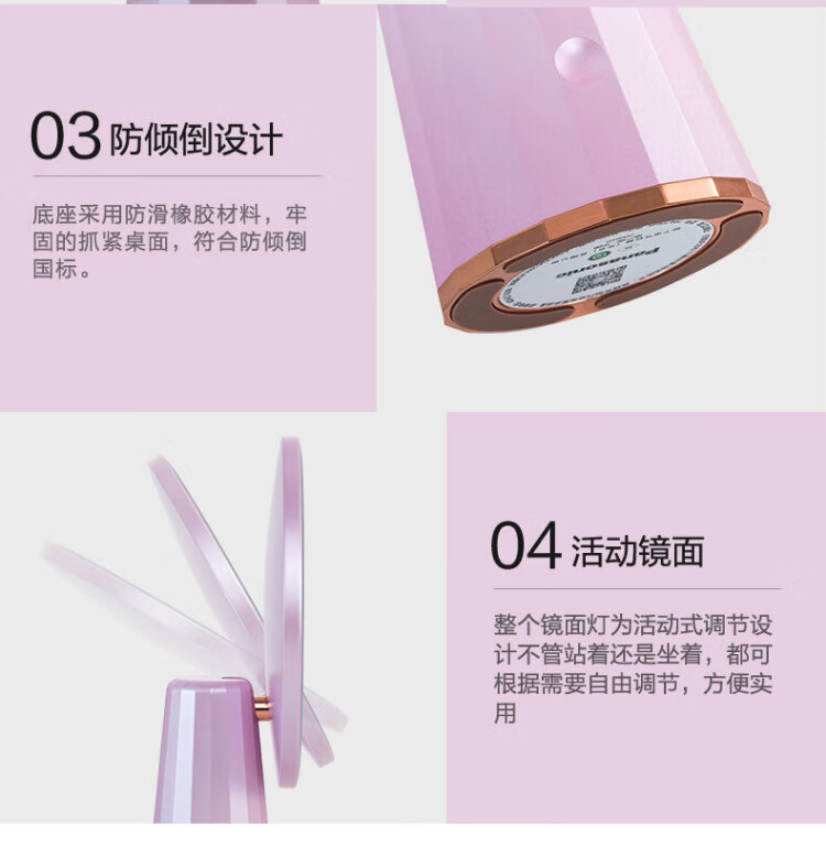 Panasonic LED makeup mirror with light, smart makeup mirror with light, portable light-filling makeup mirror, Christmas gift, girly pink