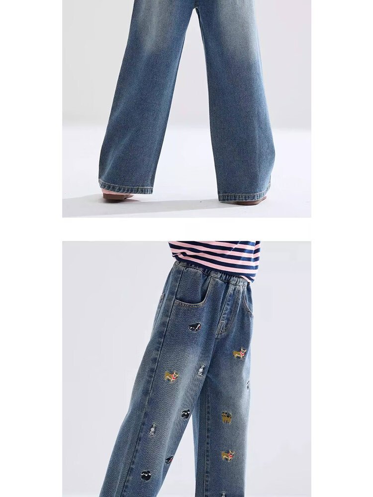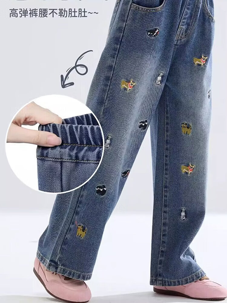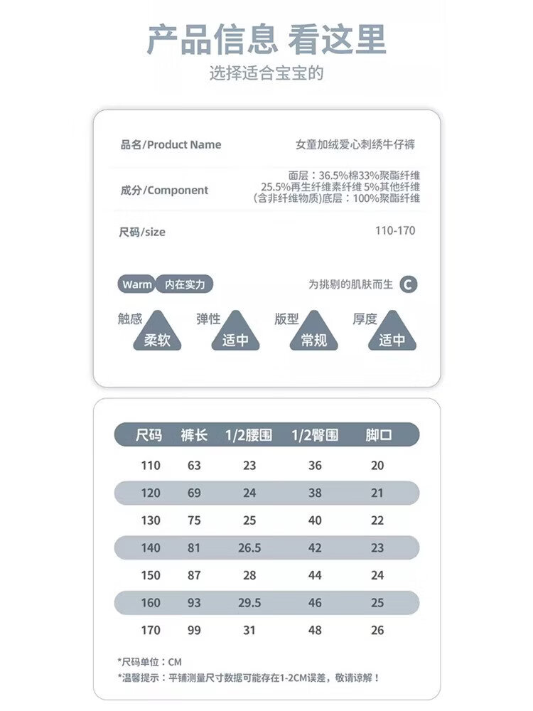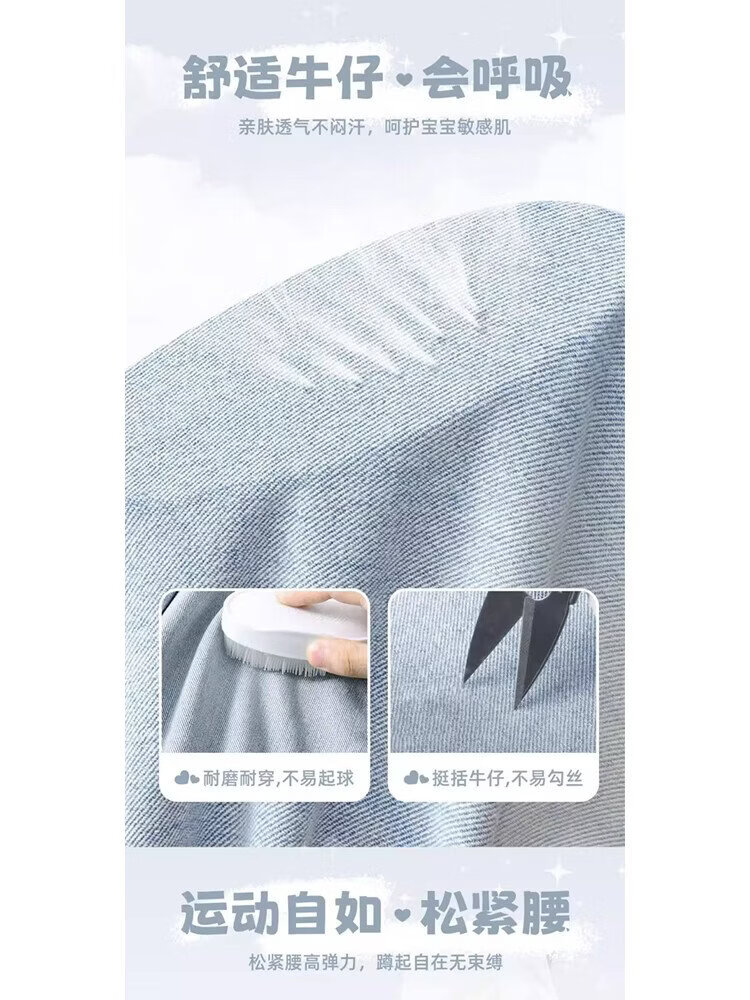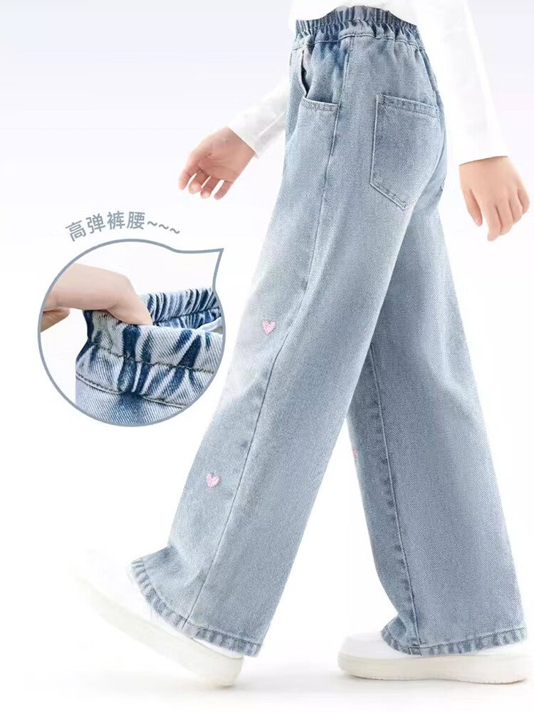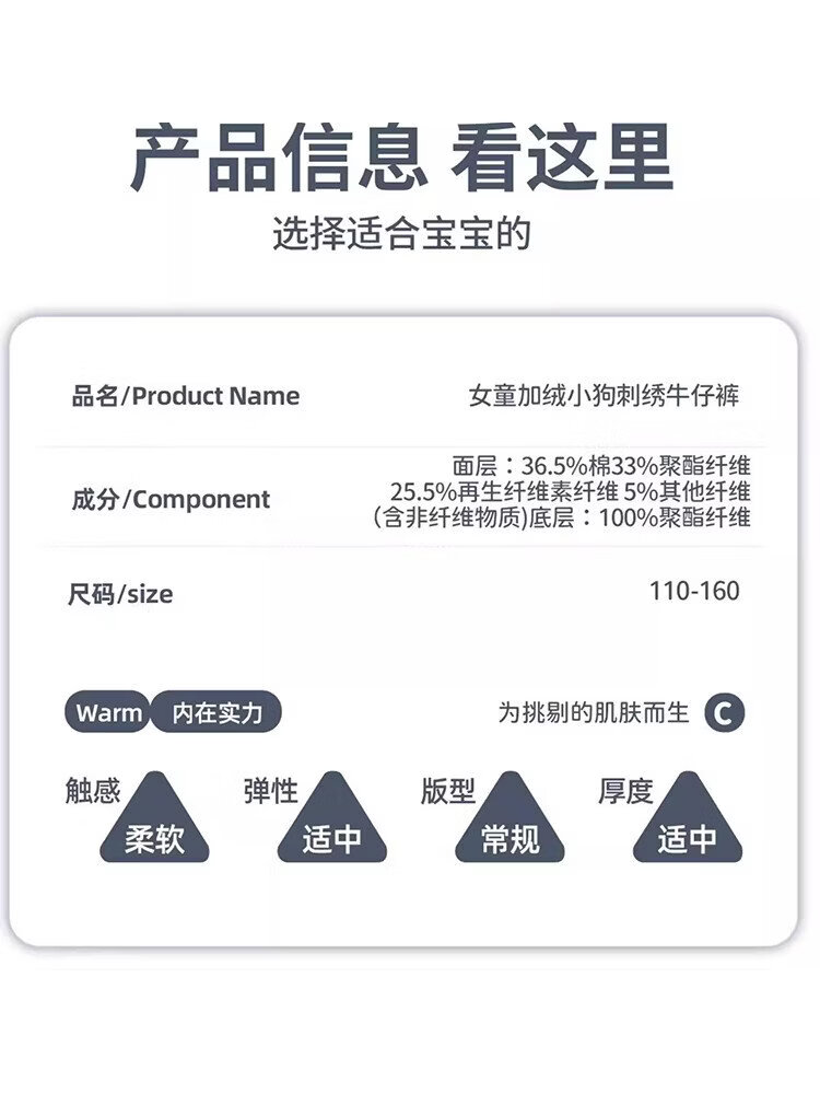 BOBDOG girls' velvet thickened pants new style girls casual jeans all-in-one velvet autumn and winter wear denim light blue 140