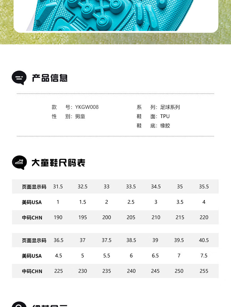 Li Ning (LI-NING) Quick Shadow 4 children's football shoes men's and women's TF broken nail primary school students professional competition training shoes YKGW008