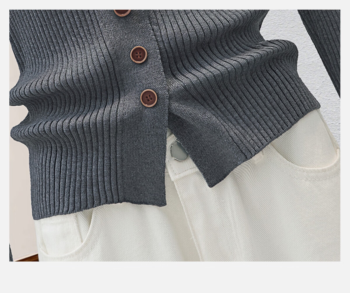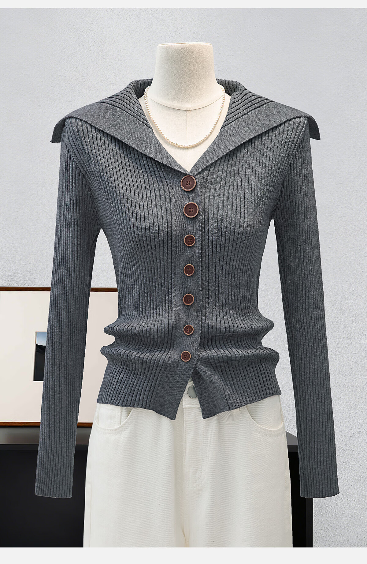 Sibaishe Solid Color Long Sleeve Knitted Cardigan Women's 2026 Spring New Fashion Long Sleeve Slim Fit Top