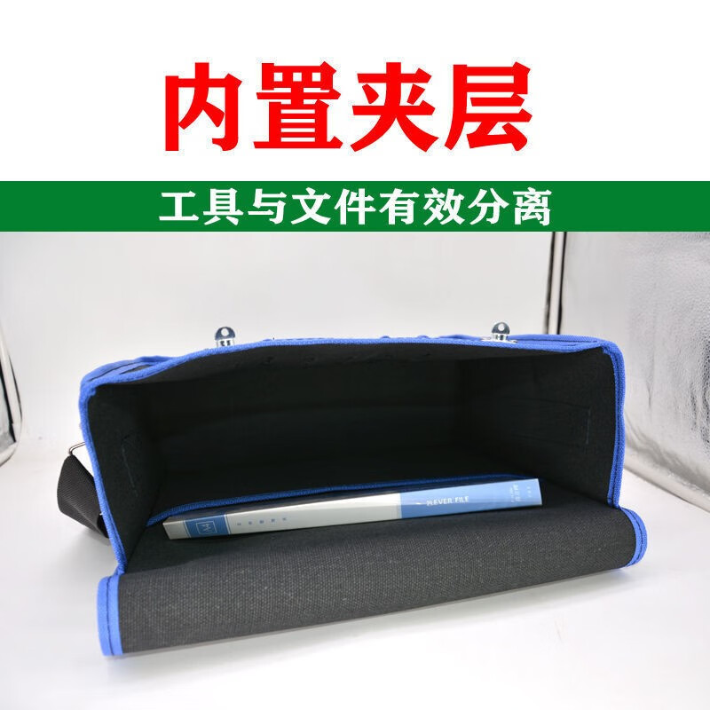 Multifunctional tool bag black thickened canvas electrician bag wear-resistant hardware storage bag construction site labor insurance repair bag water cup pocket large size 40-37-15 cm