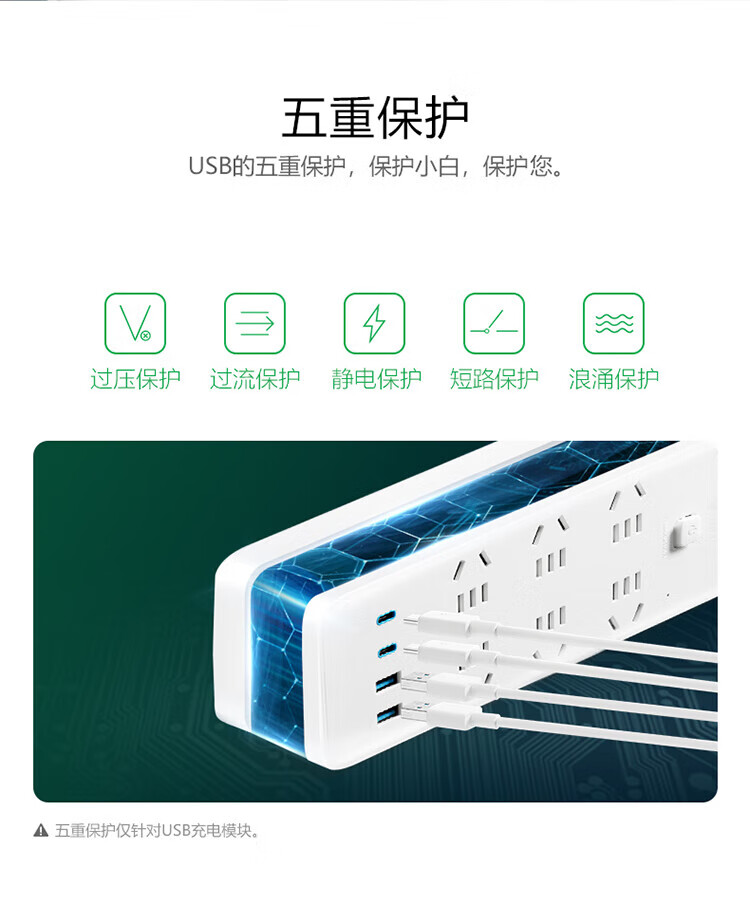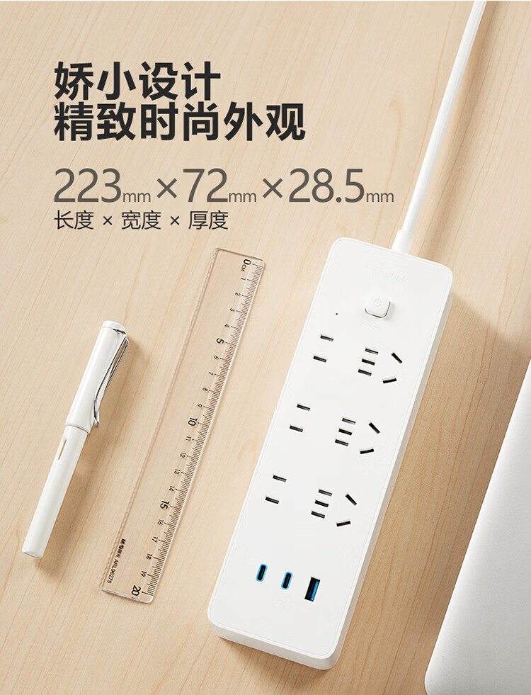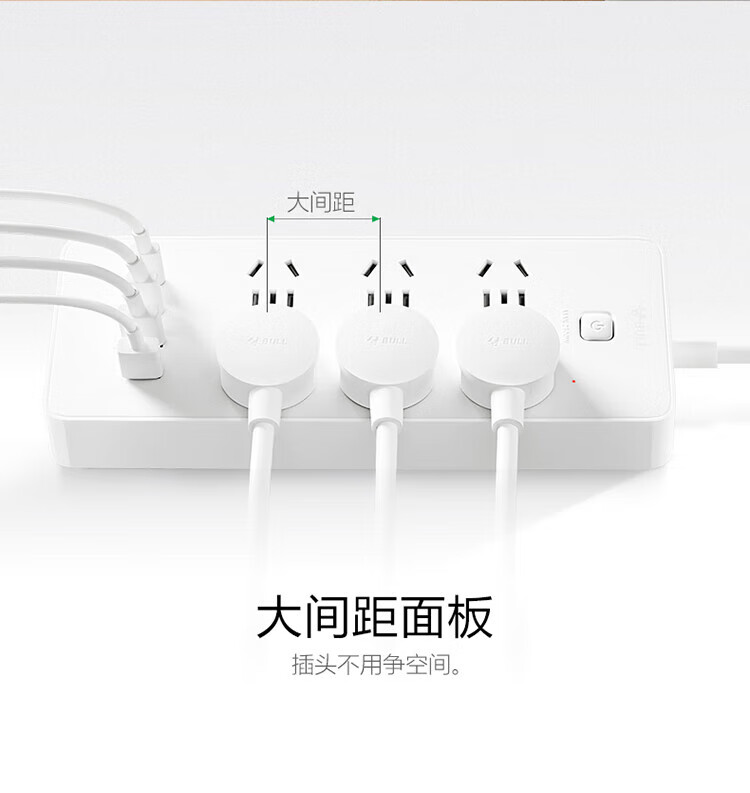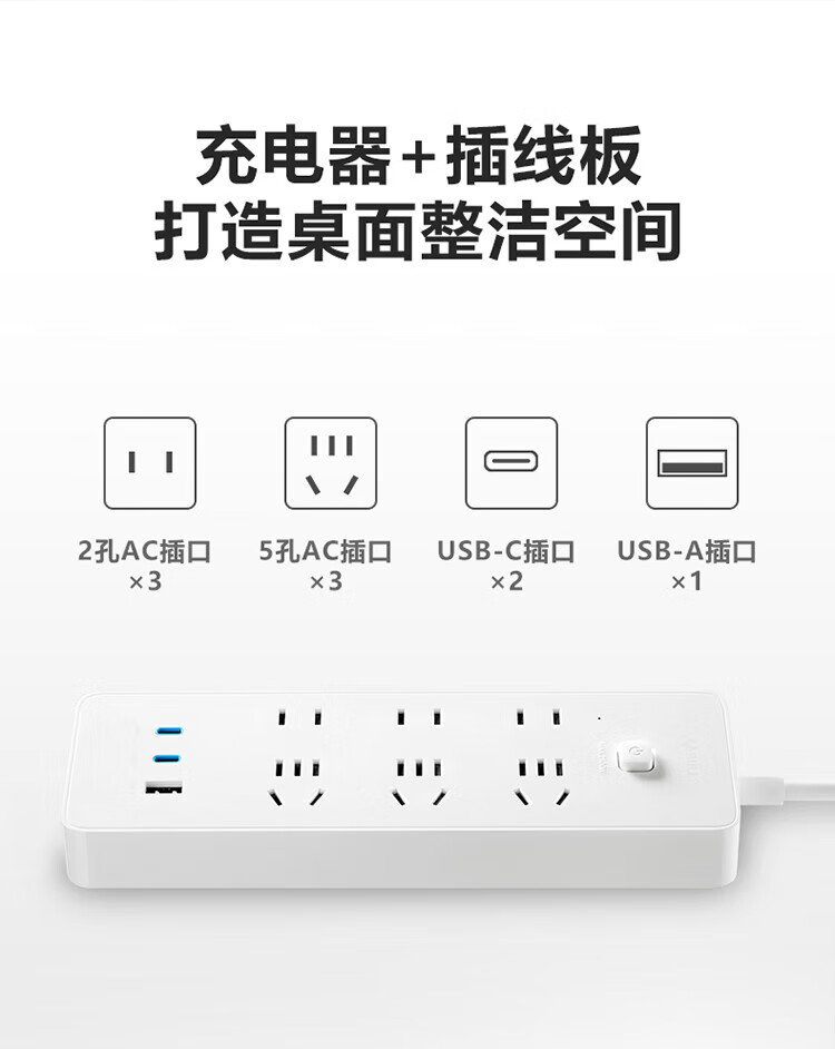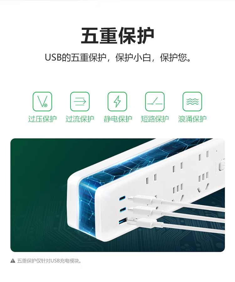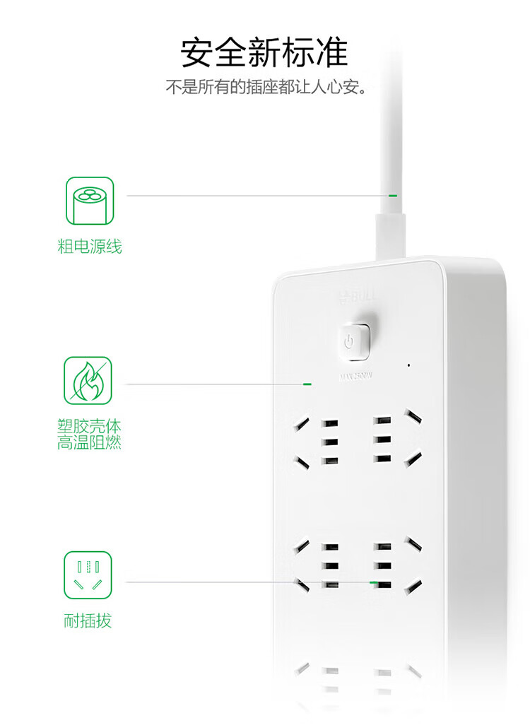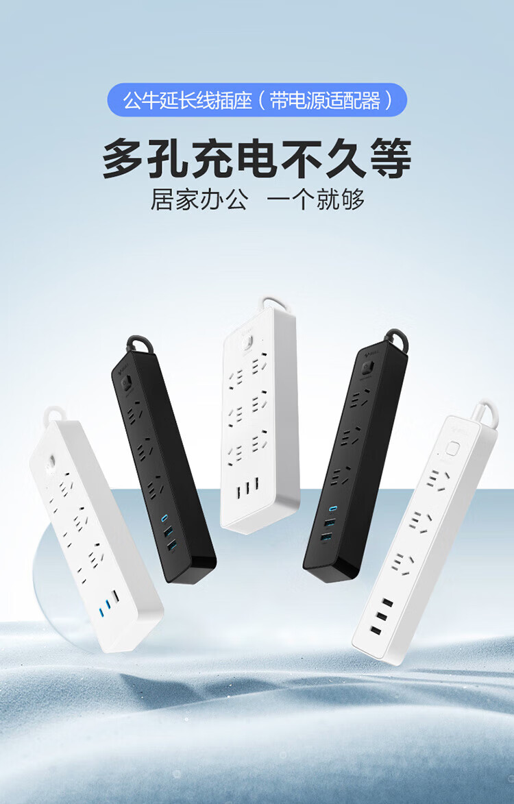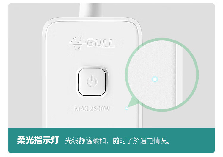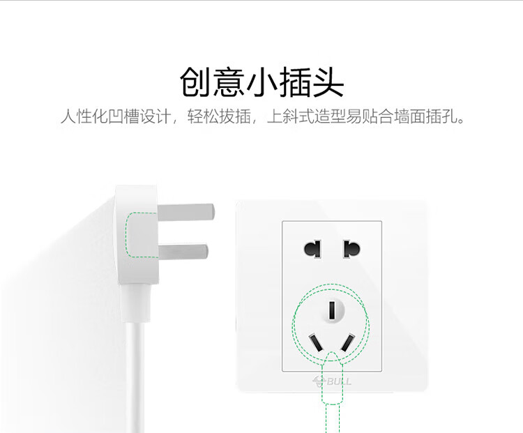 BULL Xiaobai Fast Charging Series Socket Converter Smart USB TYPE-C Port Terminal Board Socket Strip 20W Fast Charging | Six Positions and Five Holes | 1.8 Meters U1206