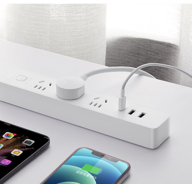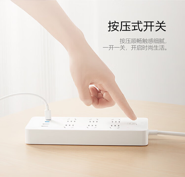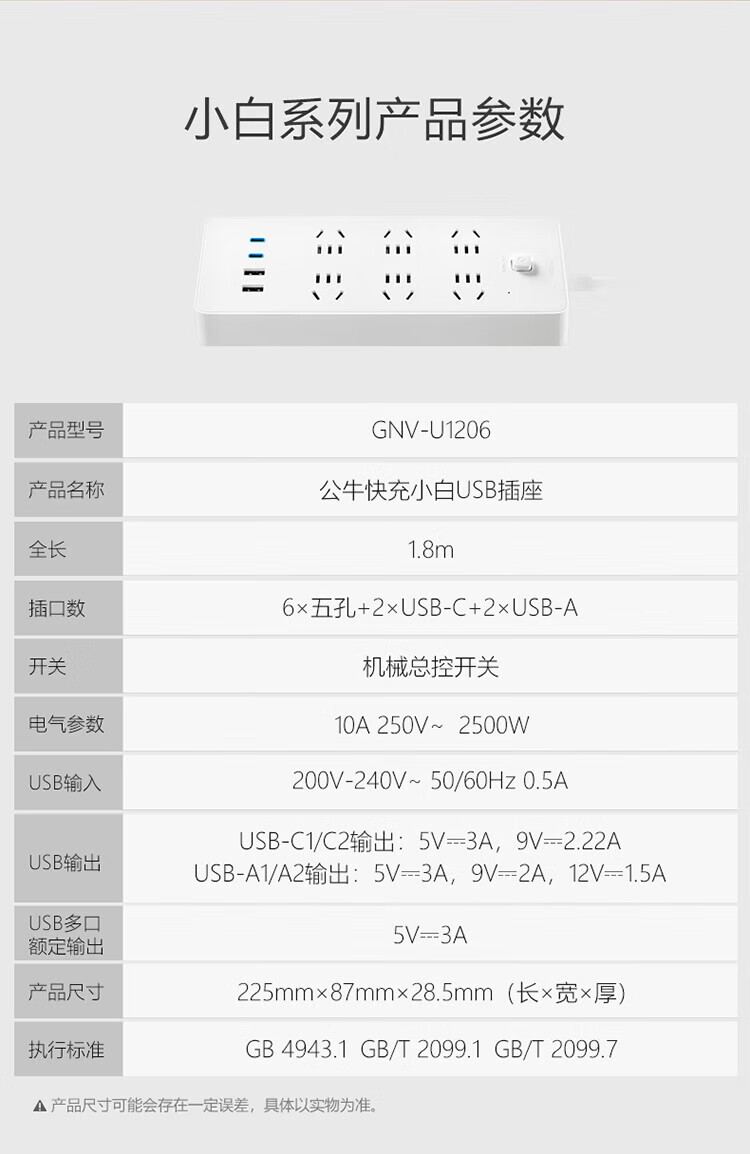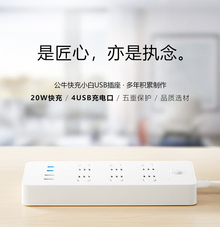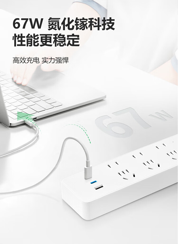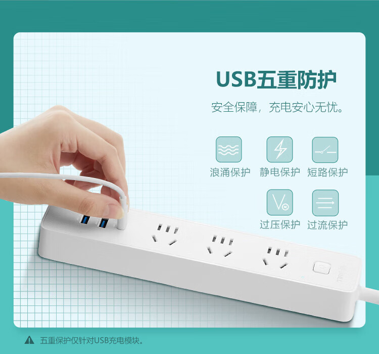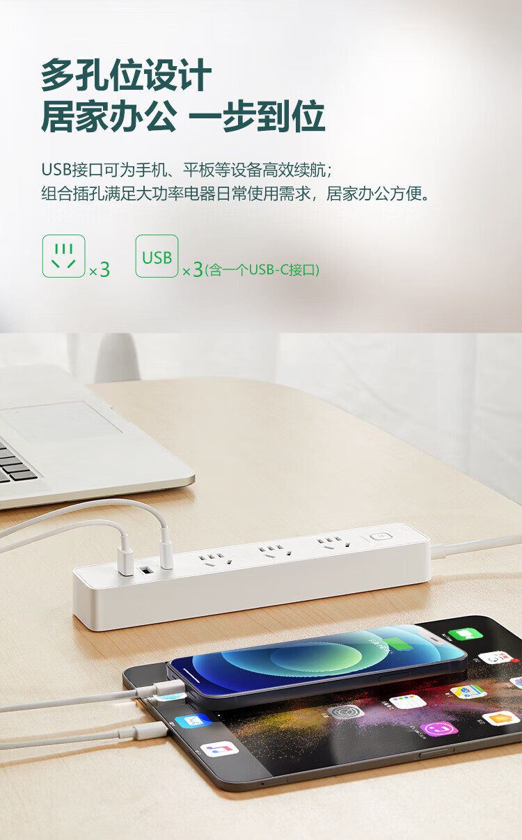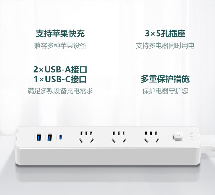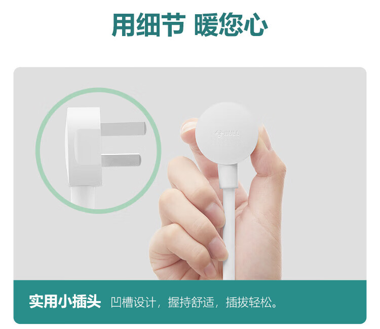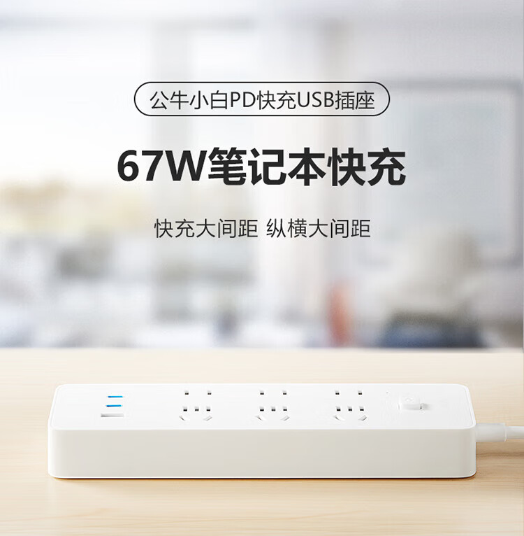 BULL Xiaobai Fast Charging Series Socket Converter Smart USB TYPE-C Port Terminal Board Socket Strip 20W Fast Charging | Six Positions and Five Holes | 1.8 Meters U1206