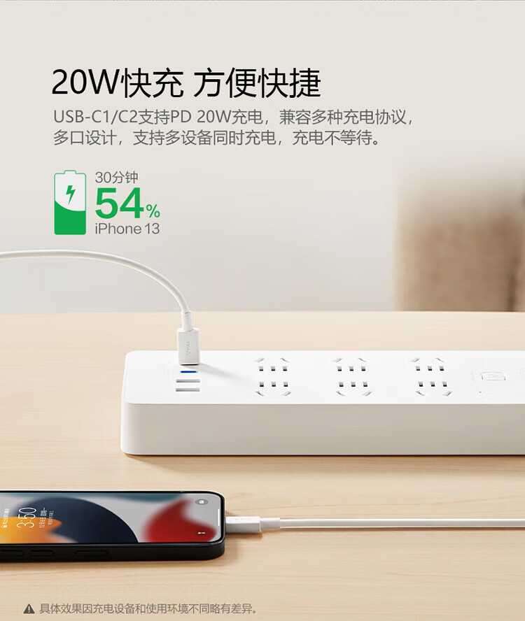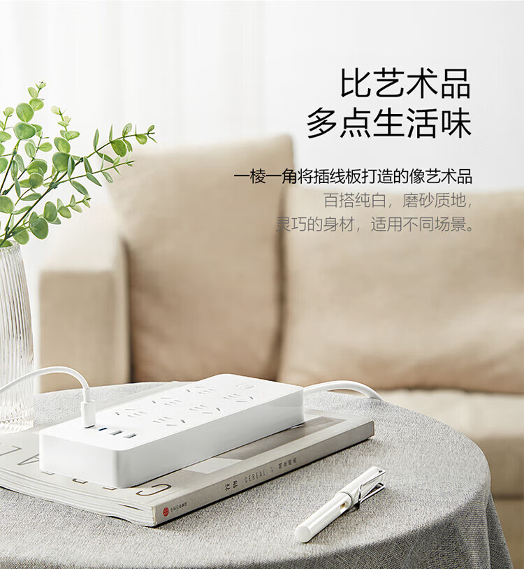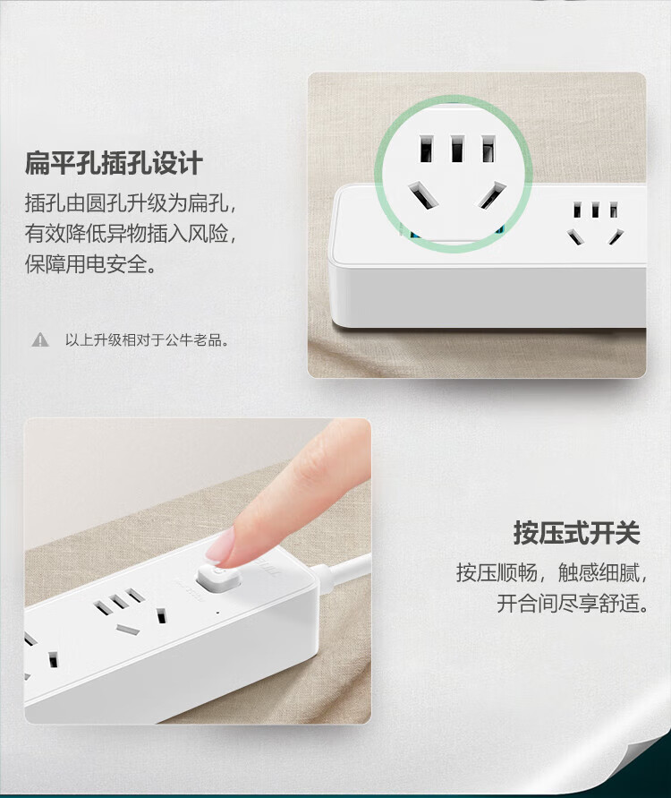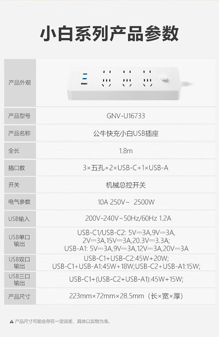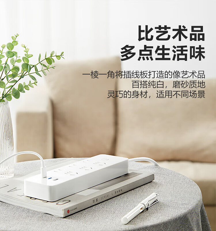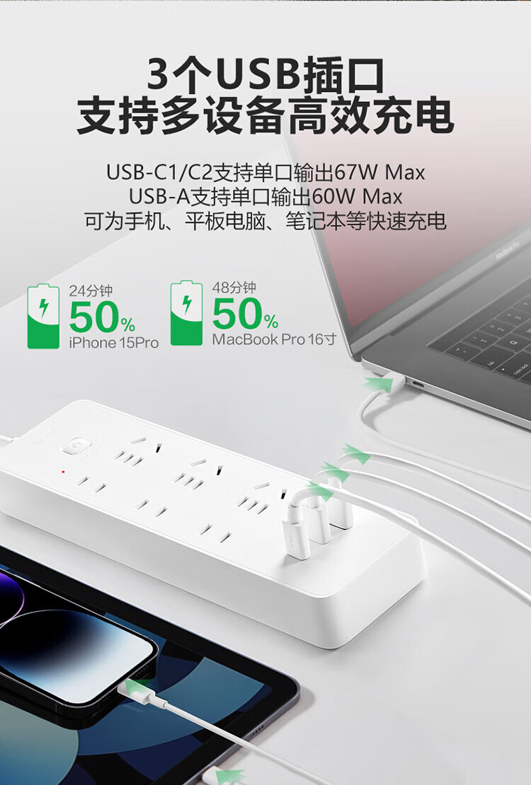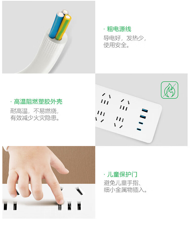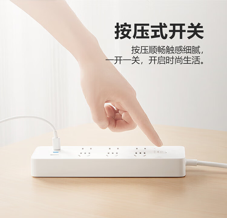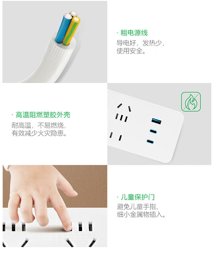 BULL Xiaobai Fast Charging Series Socket Converter Smart USB TYPE-C Port Terminal Board Socket Strip 20W Fast Charging | Six Positions and Five Holes | 1.8 Meters U1206