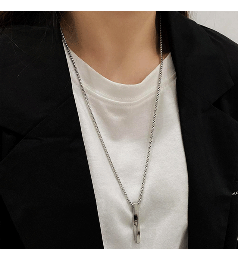 Feihua Versatile Necklace Men's Accessories Titanium Steel Boys Pendant Hip-Hop Niche Design Personality Trendy Sweater Chain Twisted Necklace 1 About 60cm + About 6cm Extension Chain