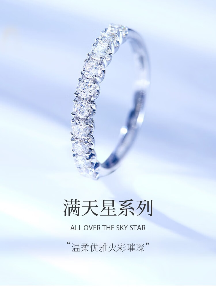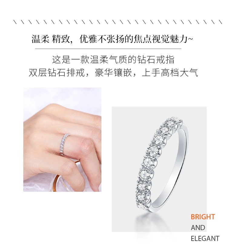 Hi diamond platinum starry diamond ring row of rings for women, simple and versatile diamond ring for girlfriend to propose, wedding and birthday gift in stock - PT950 platinum 50 points