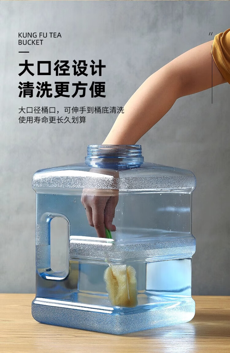 Hanhe large diameter water storage bucket food grade pure drinking water bucket tea set tea water storage tank portable outdoor water storage bucket 15 liter vertical water storage bucket (with pipe brush)