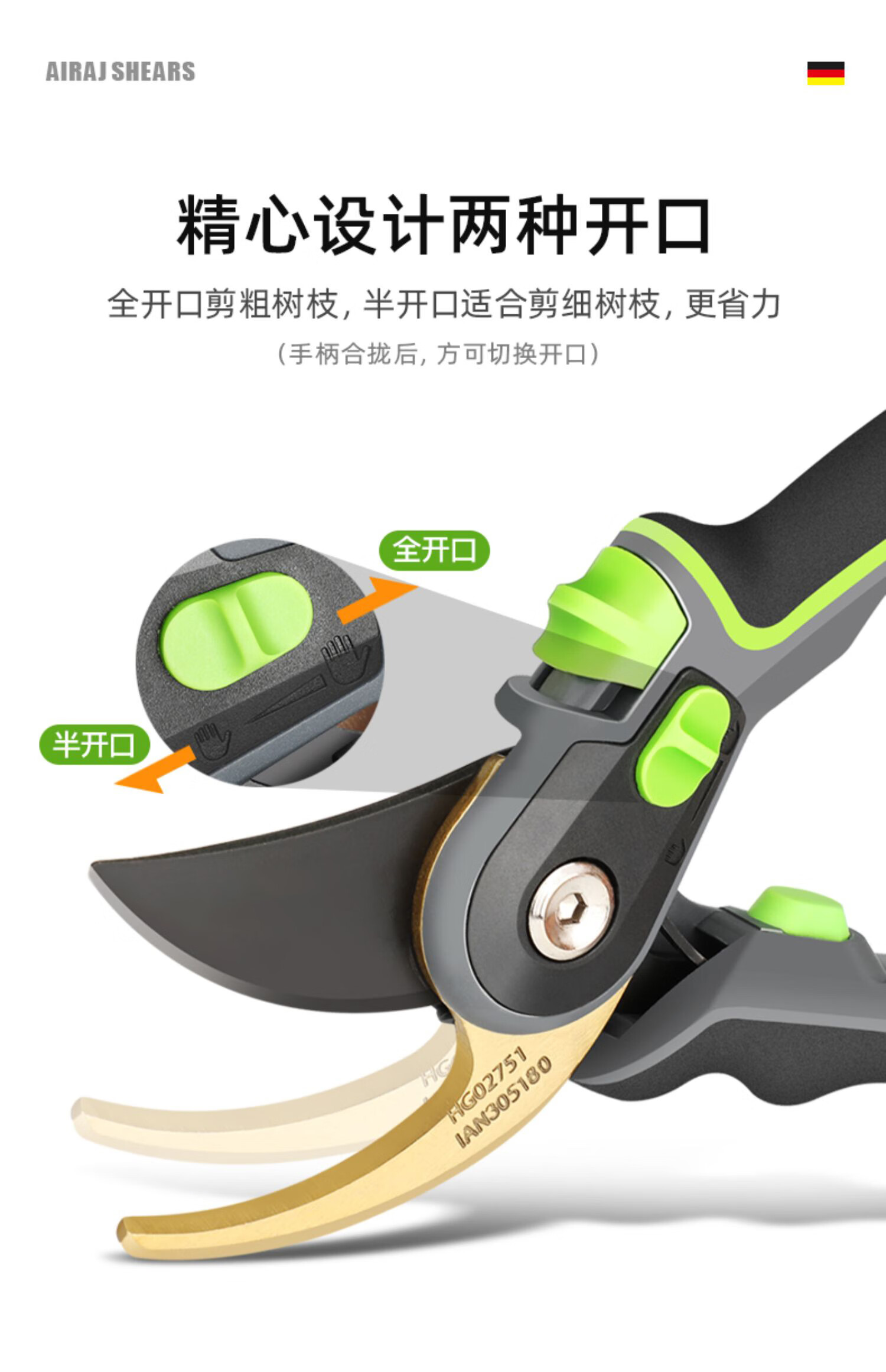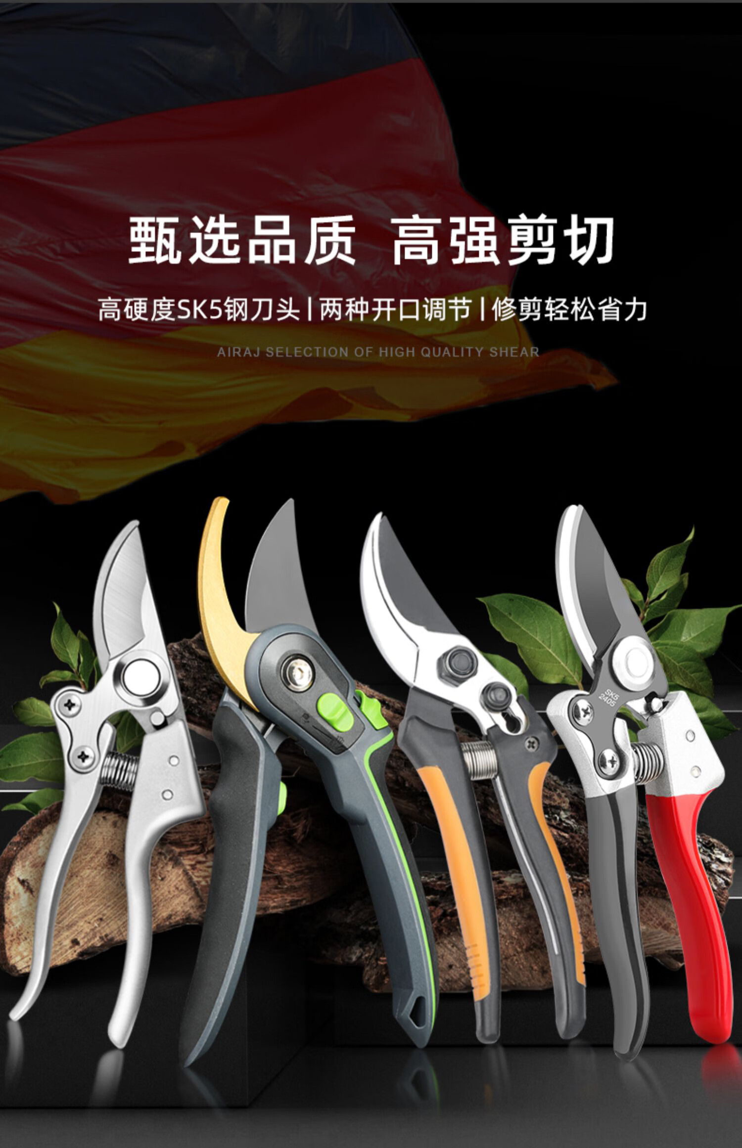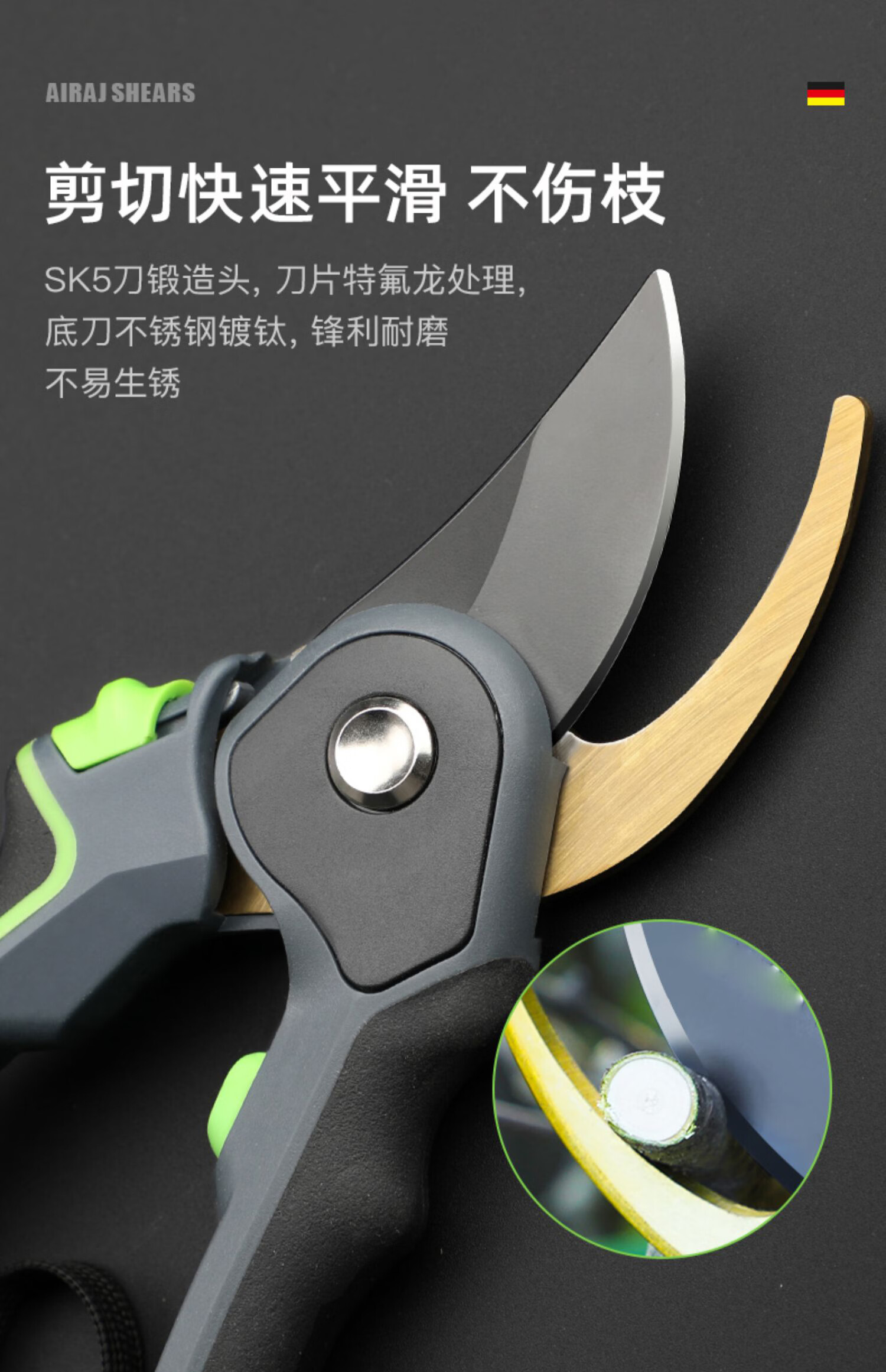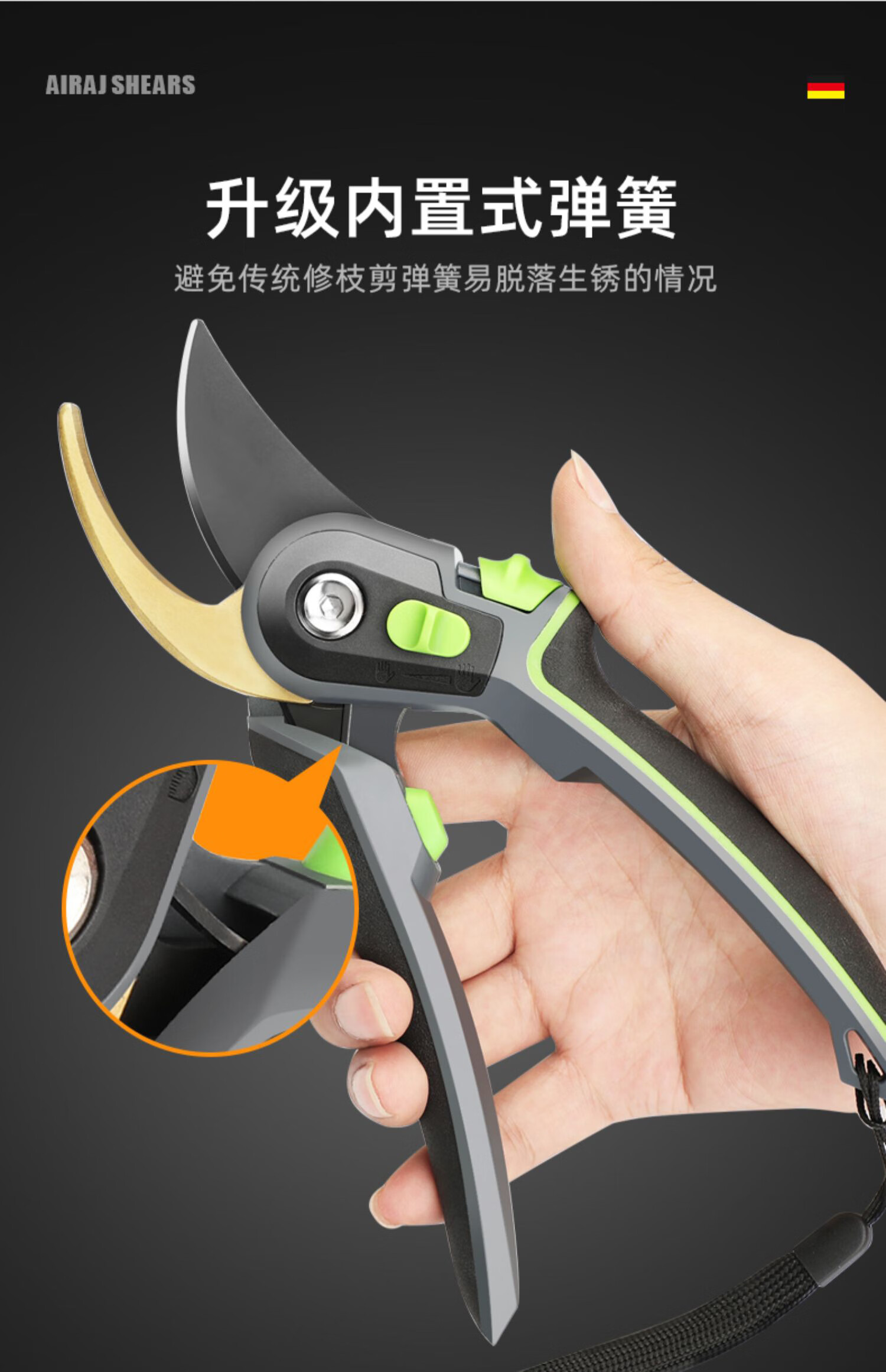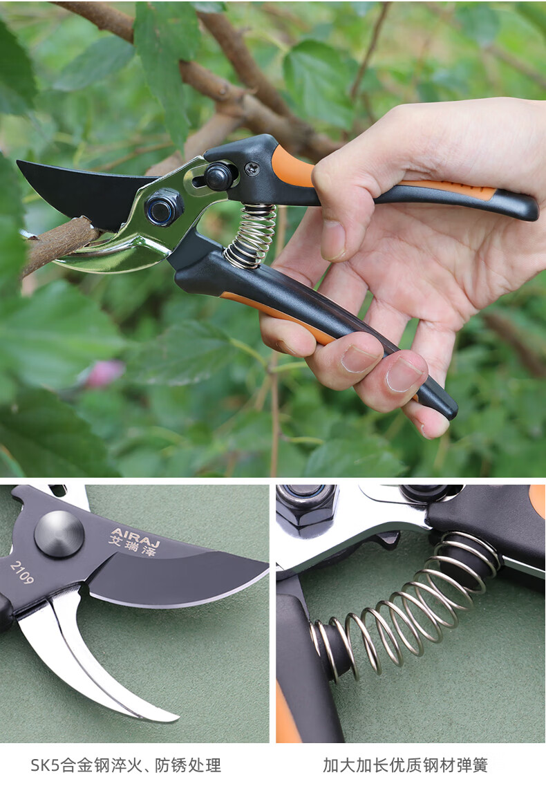 Wen Naji pruning scissors, gardening pruning shears, pruning shears, flower shears, gardening labor-saving flower art tools, fruit tree pruning thick branch scissors WH1 upgraded black diamond