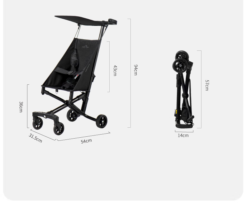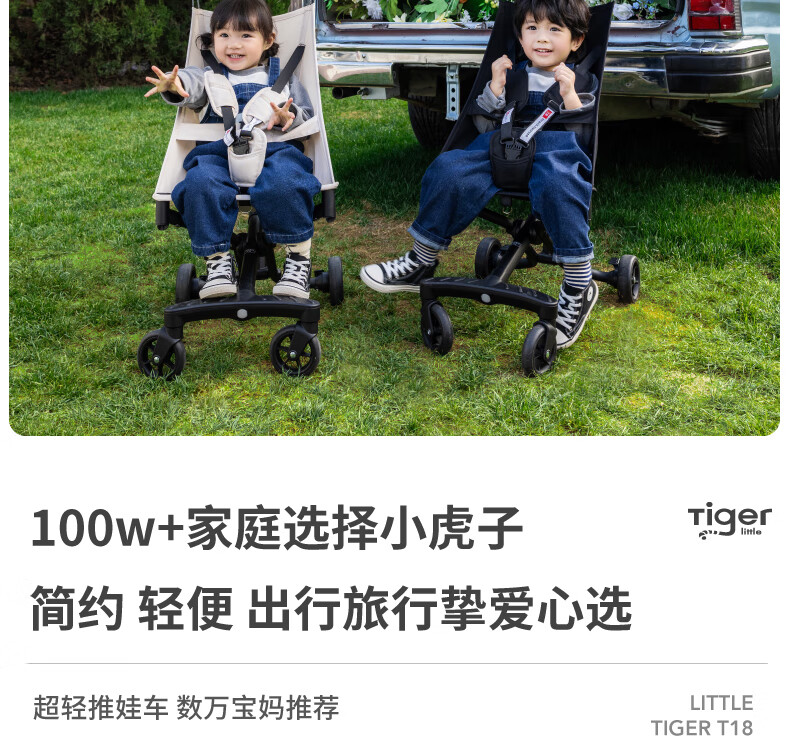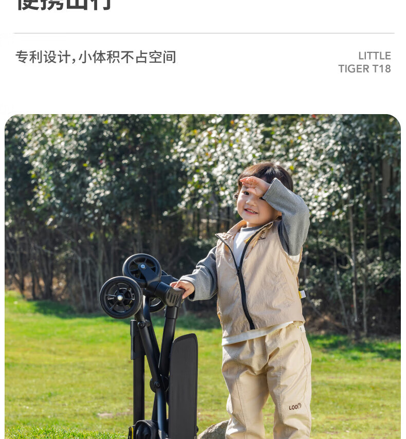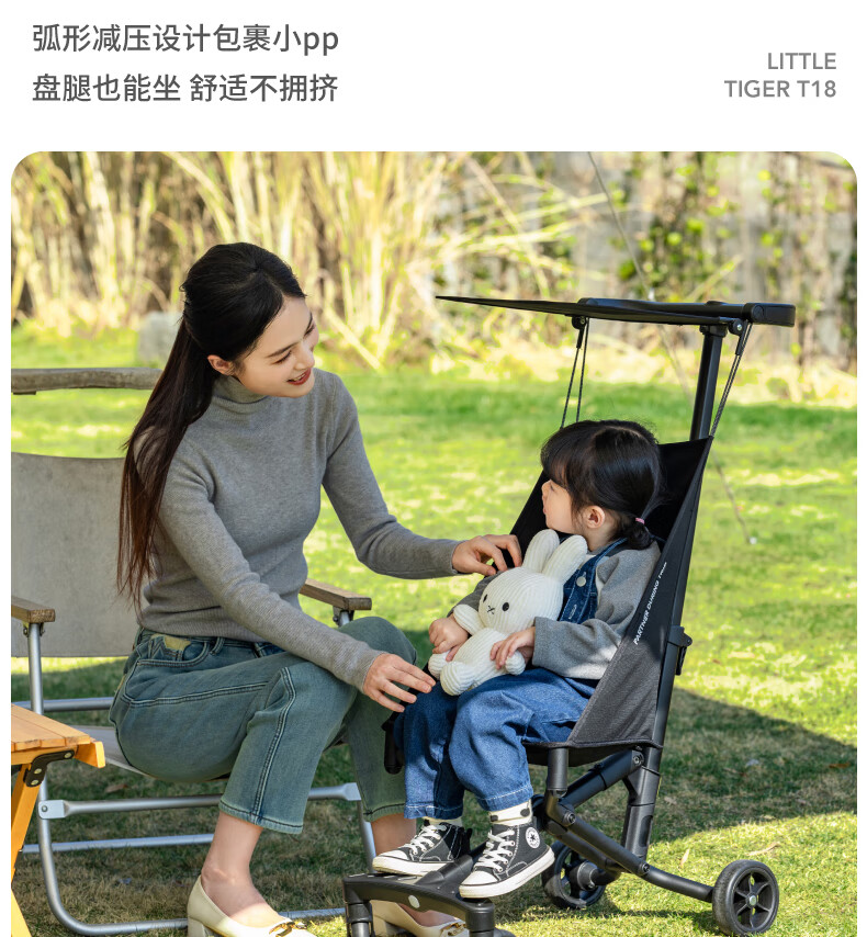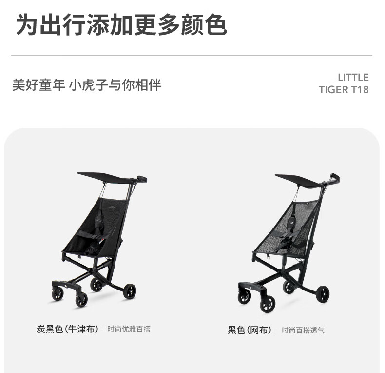 Xiaohuzi's new aluminum alloy lightweight folding baby stroller, simple boarding stroller, baby stroller T18 T18 black (Oxford cloth model)