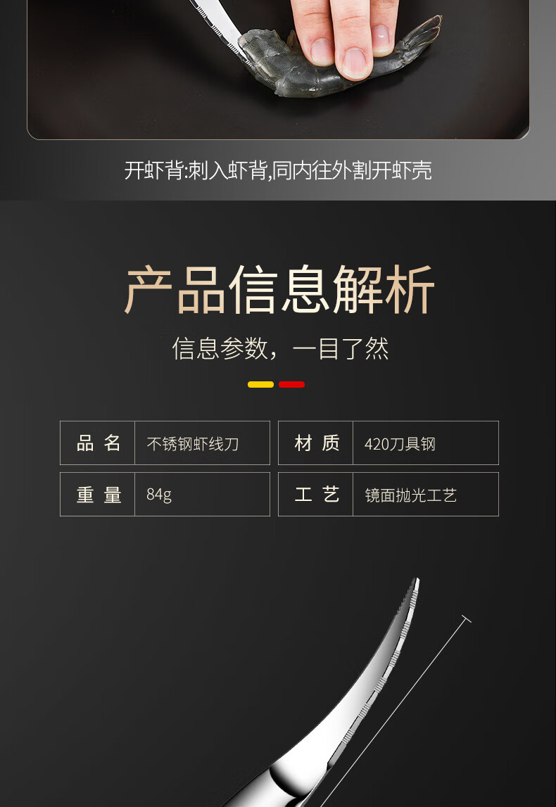 CM LIVE shrimp line knife, shrimp back knife, household stainless steel shrimp line picker, crayfish intestine cutter, fish belly knife, shrimp peeler, shrimp line cutter, shrimp knife peeling tool, Berlin classic all-steel shrimp line knife 17cm