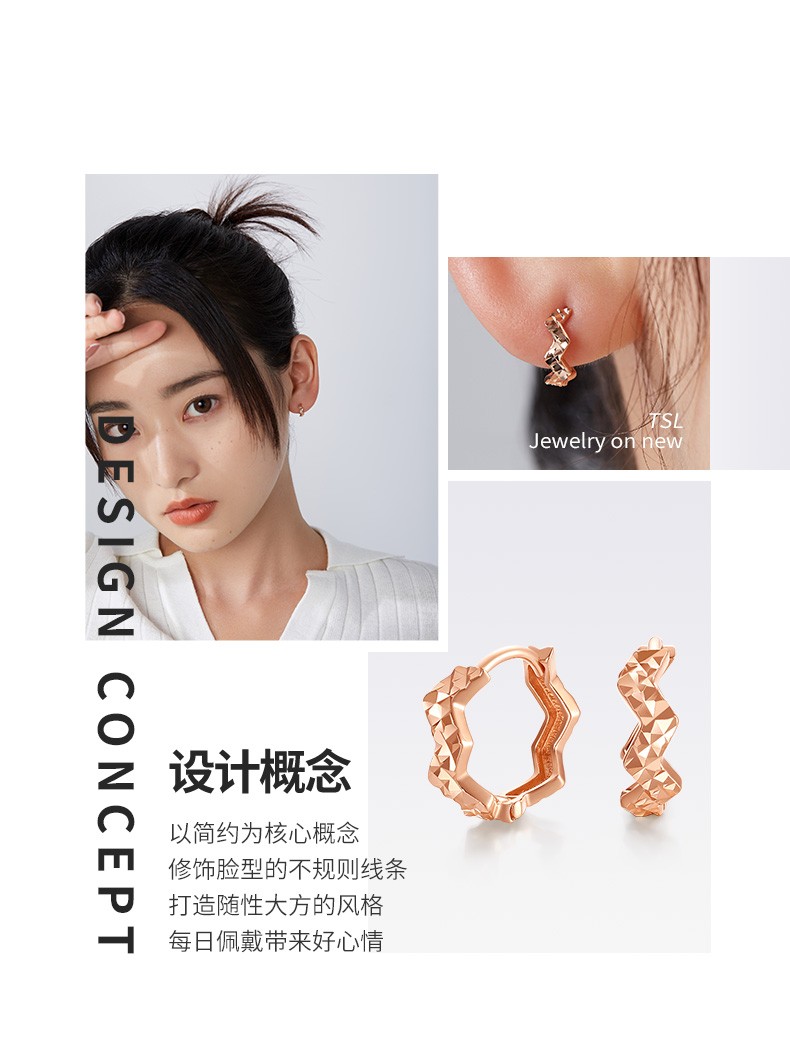 Xie Ruilin (TSL) 18K rose gold earrings Yueji series simple color gold earrings earrings for women AG682 k gold earrings