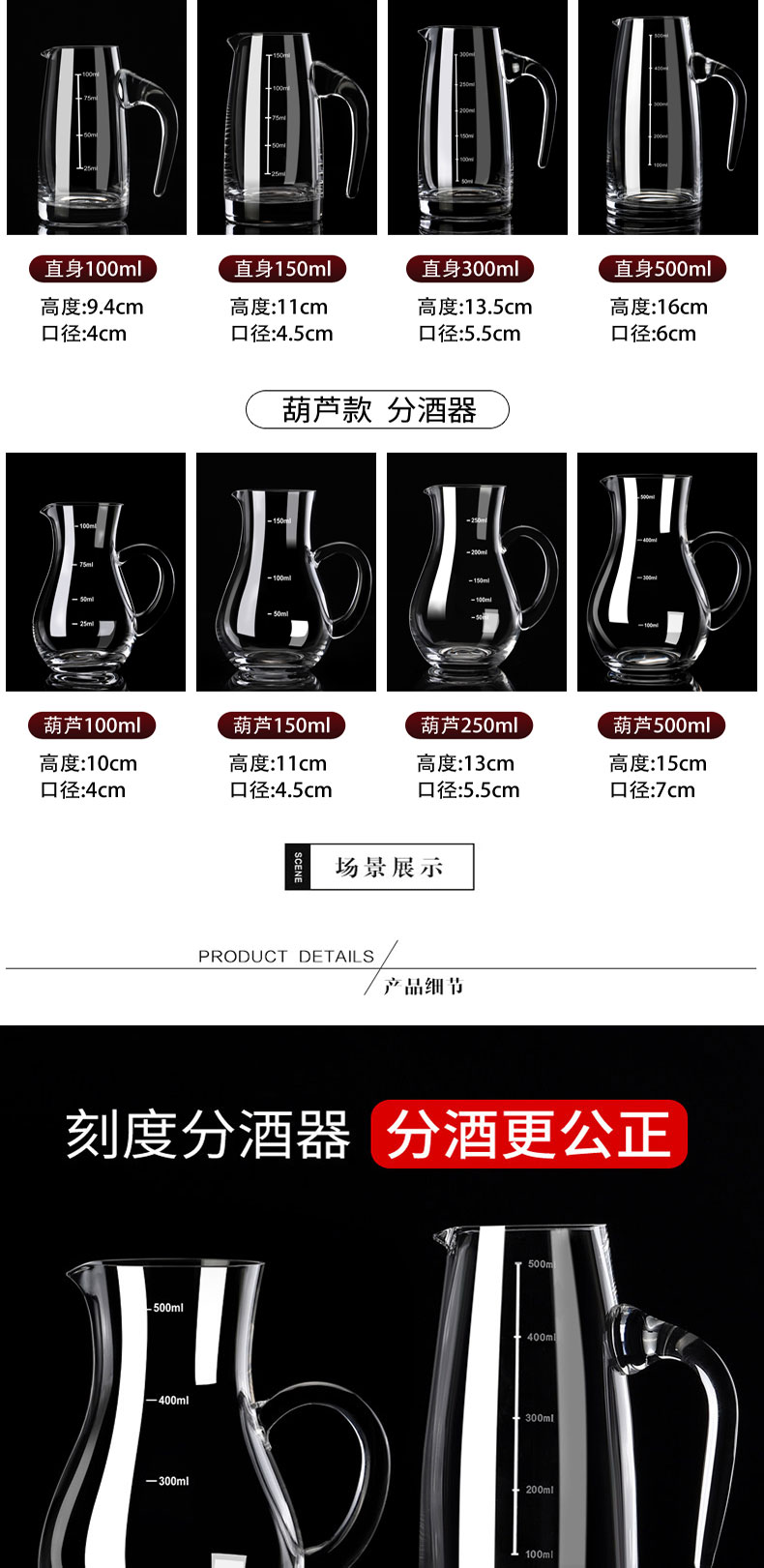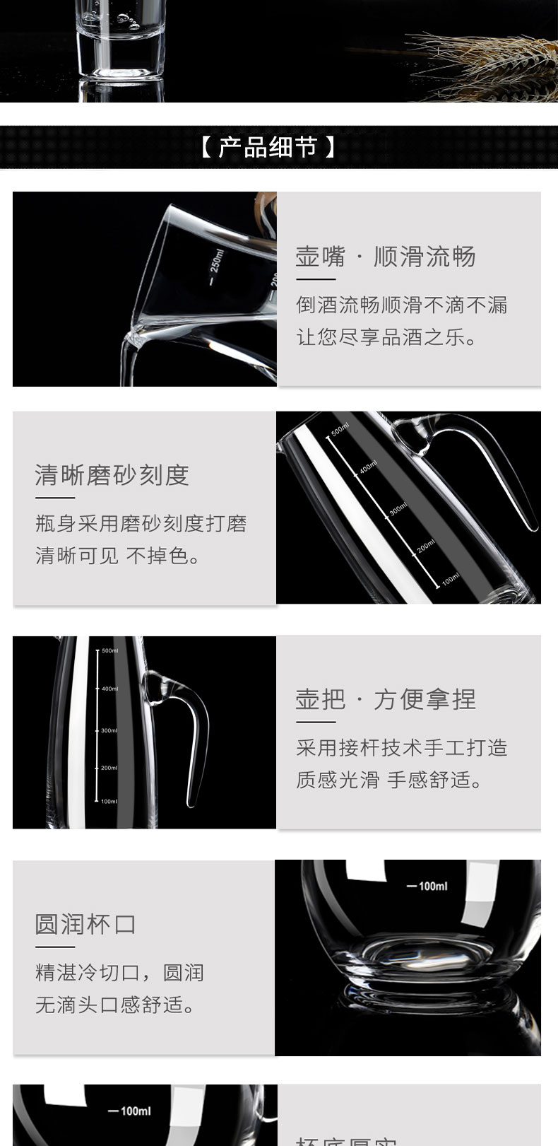 MARTIGUES white wine divider red wine decanter household wine jug tie jug fair cup crystal glass with graduated wine cup set gourd style 500ml