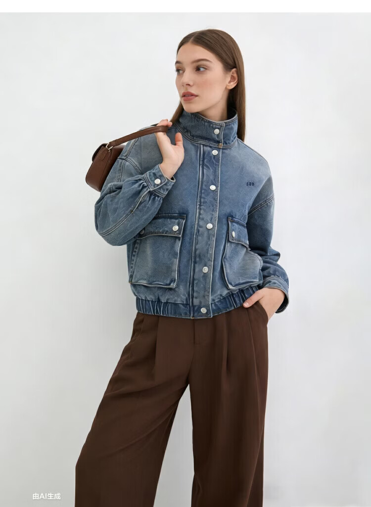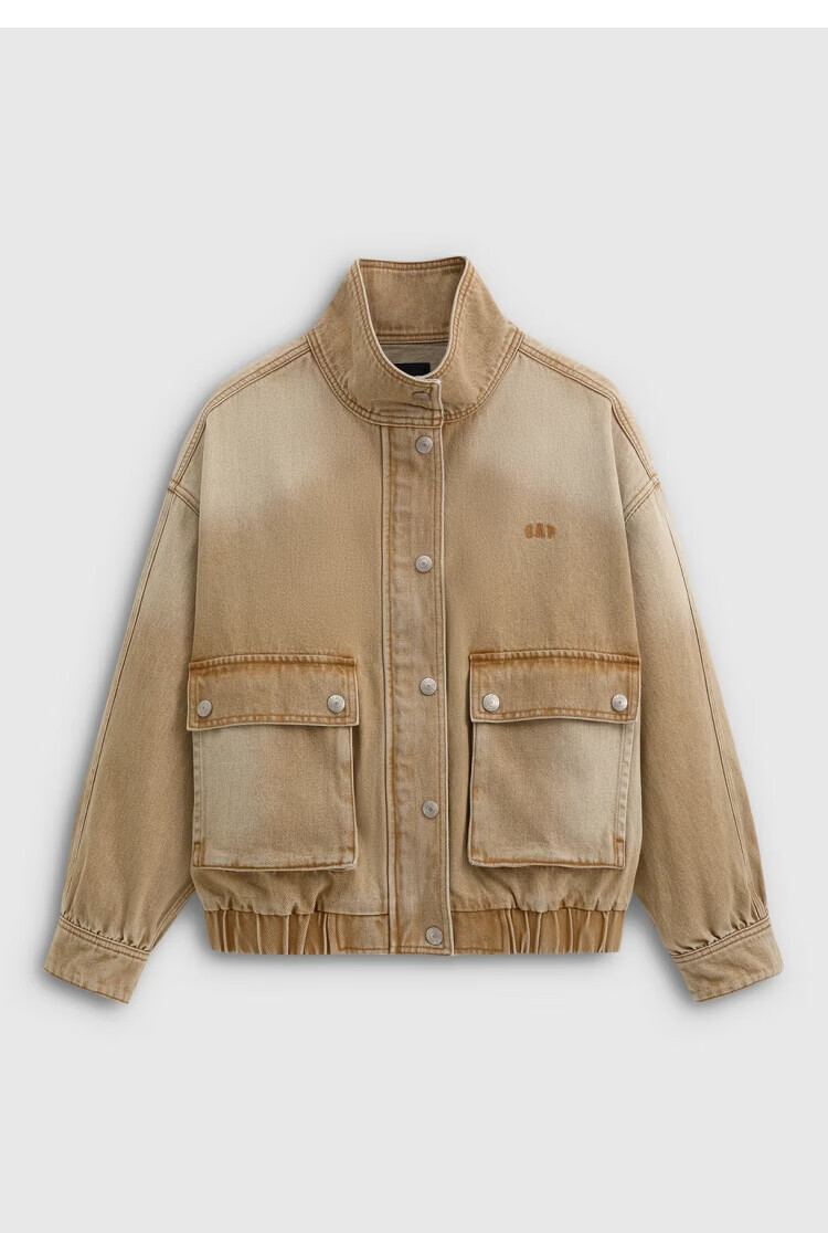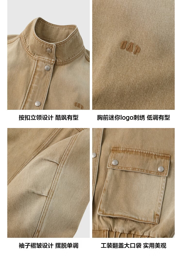 GAP Women's 2026 Spring New Logo Embroidered Workwear Loose Stand Collar Denim Jacket 859835