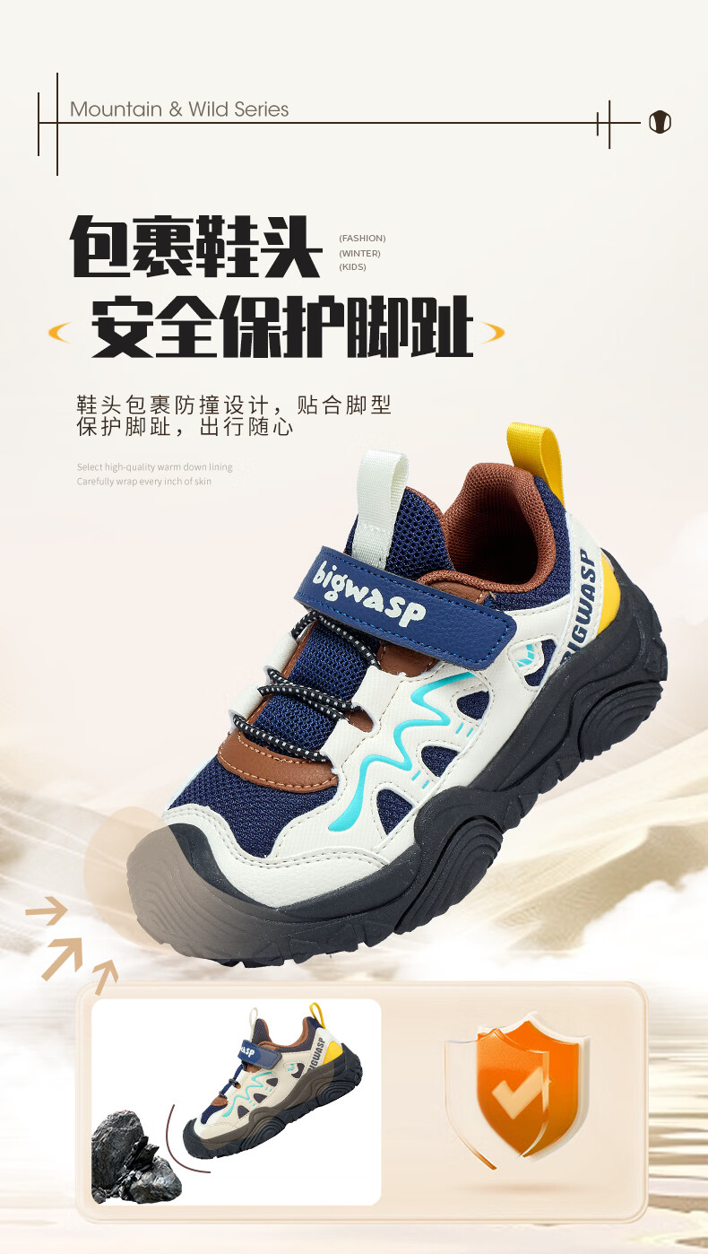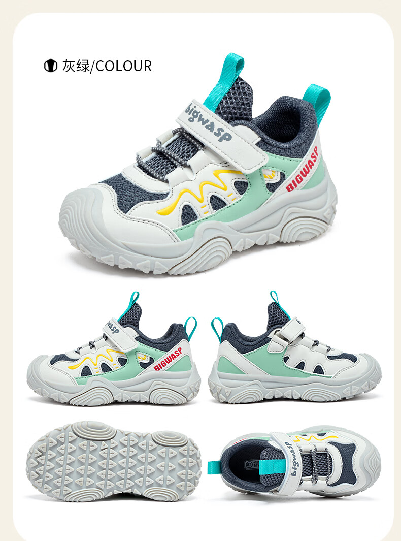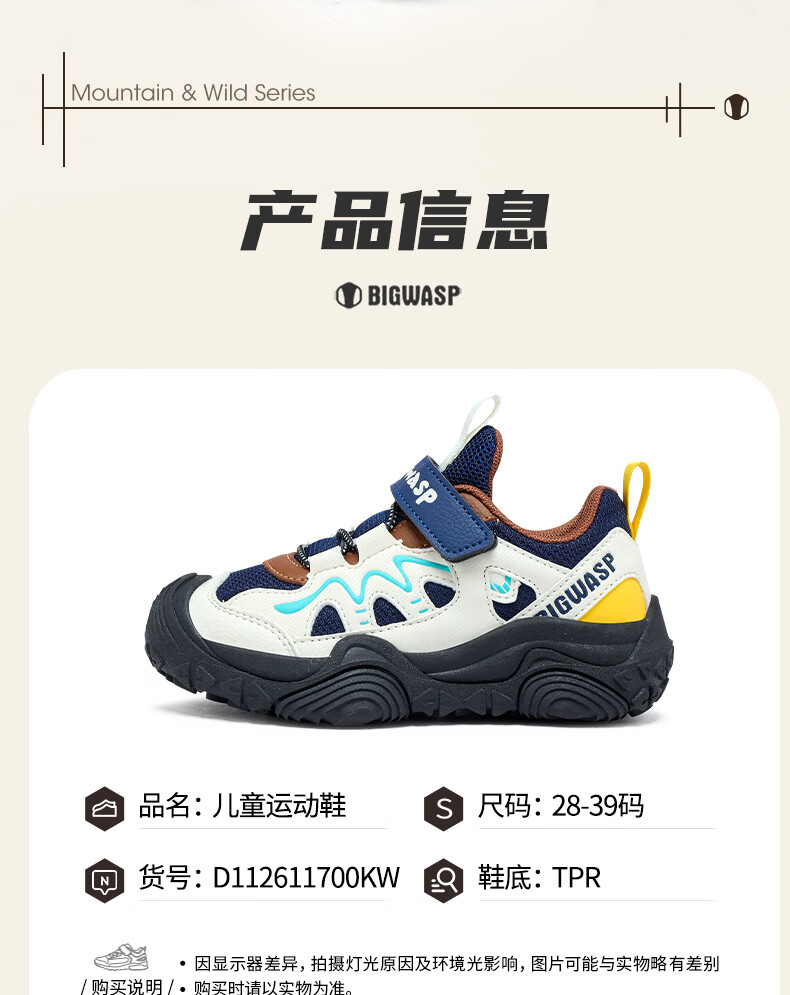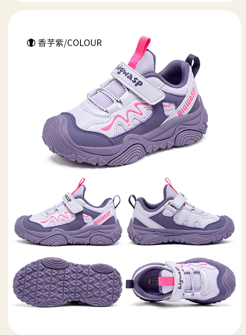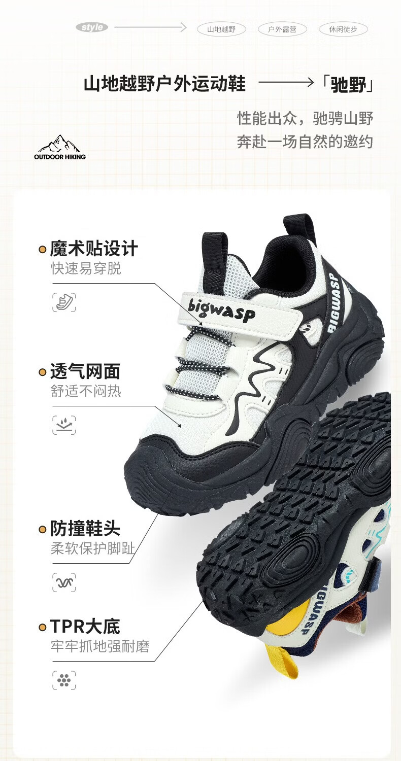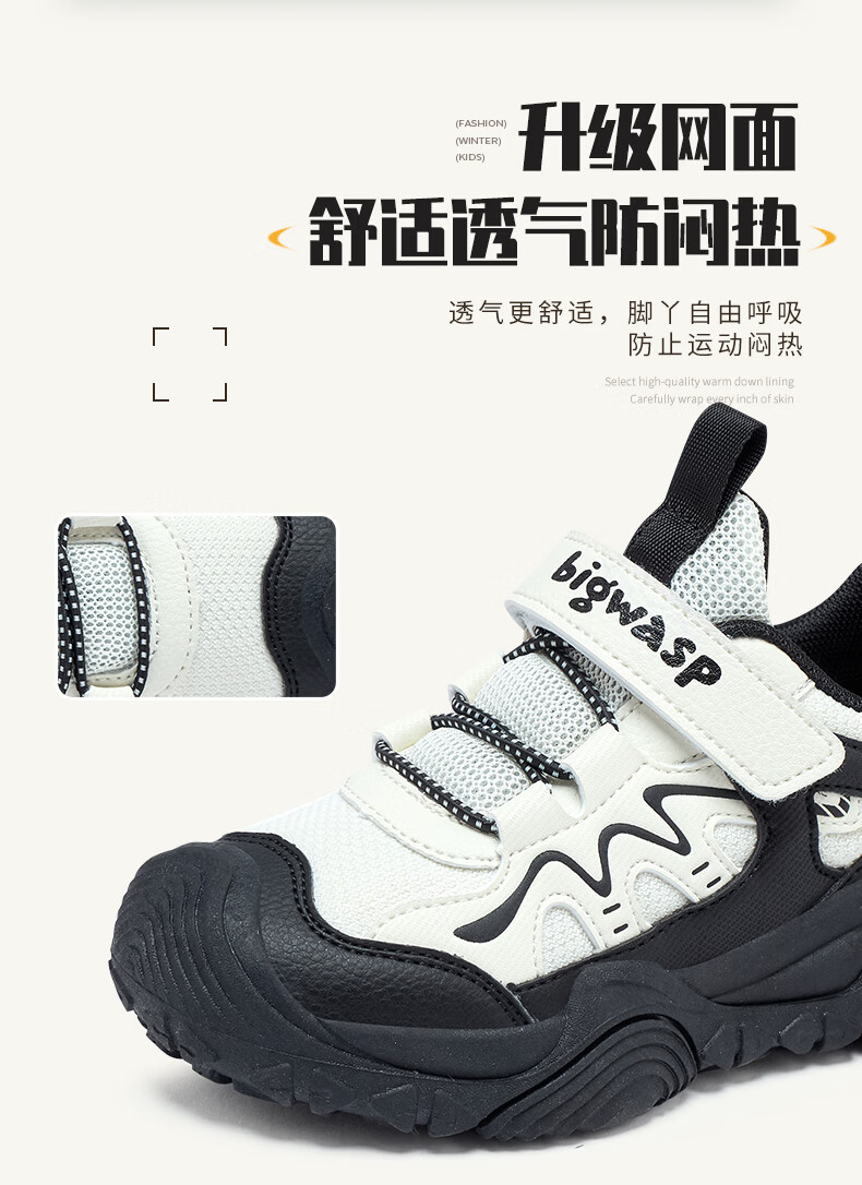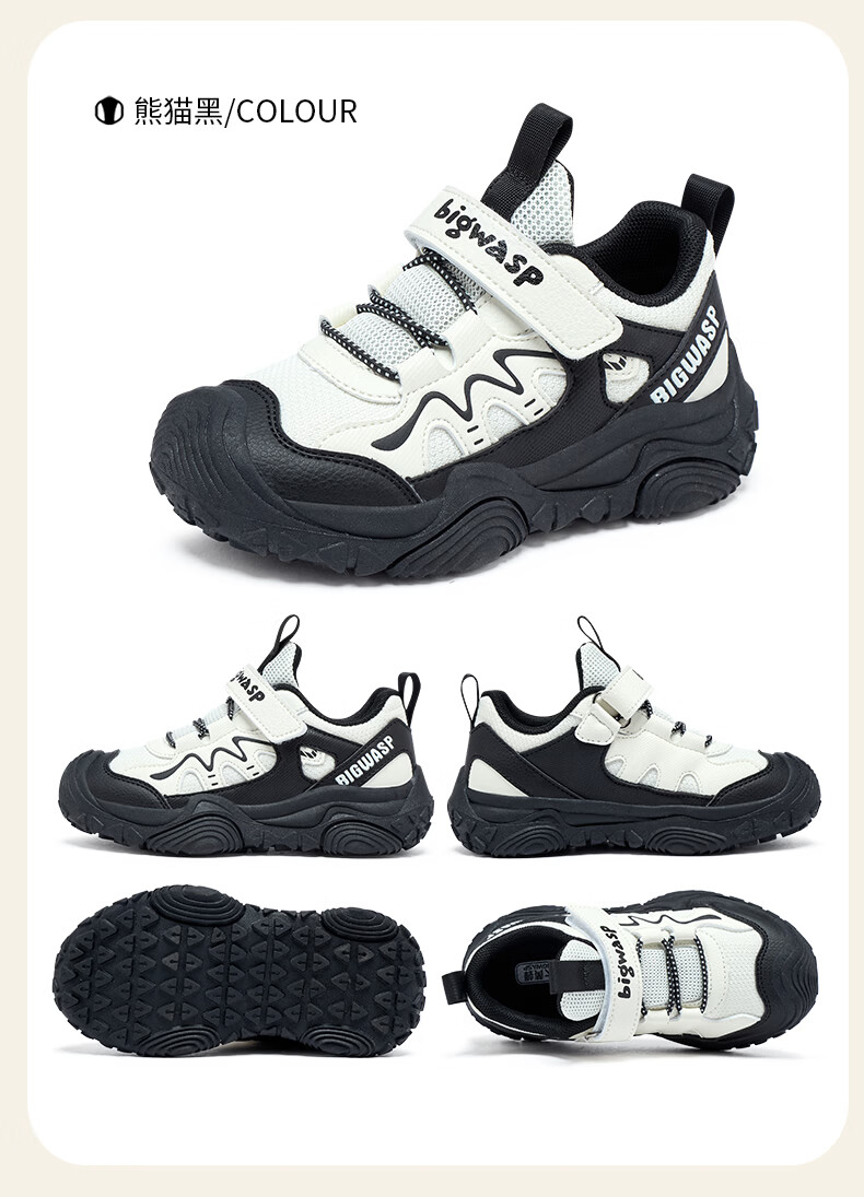 BIG WASP Children's Shoes Boys' Sports Shoes 26 Spring New Girls' Running Shoes D112611700KW Panda Black (Double Network) 33