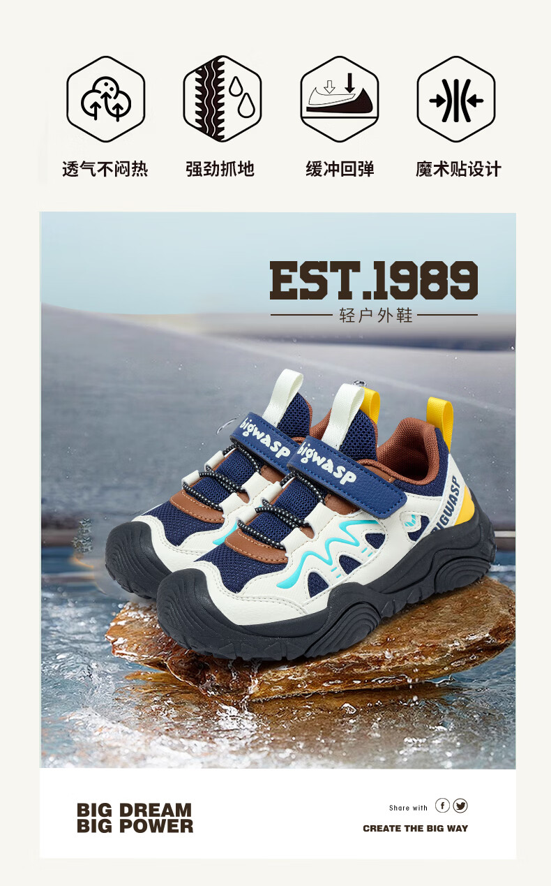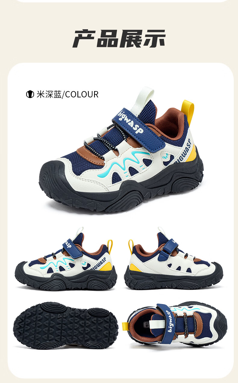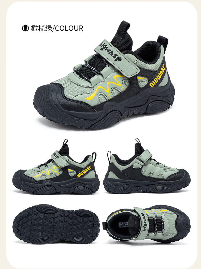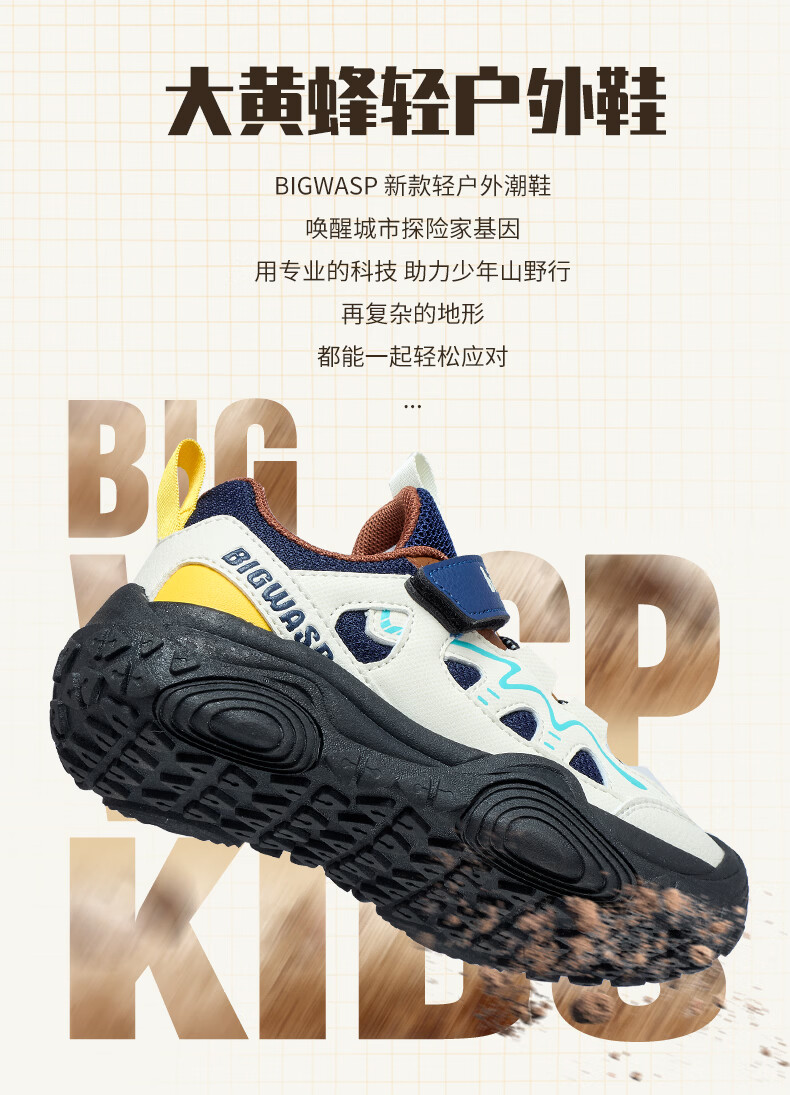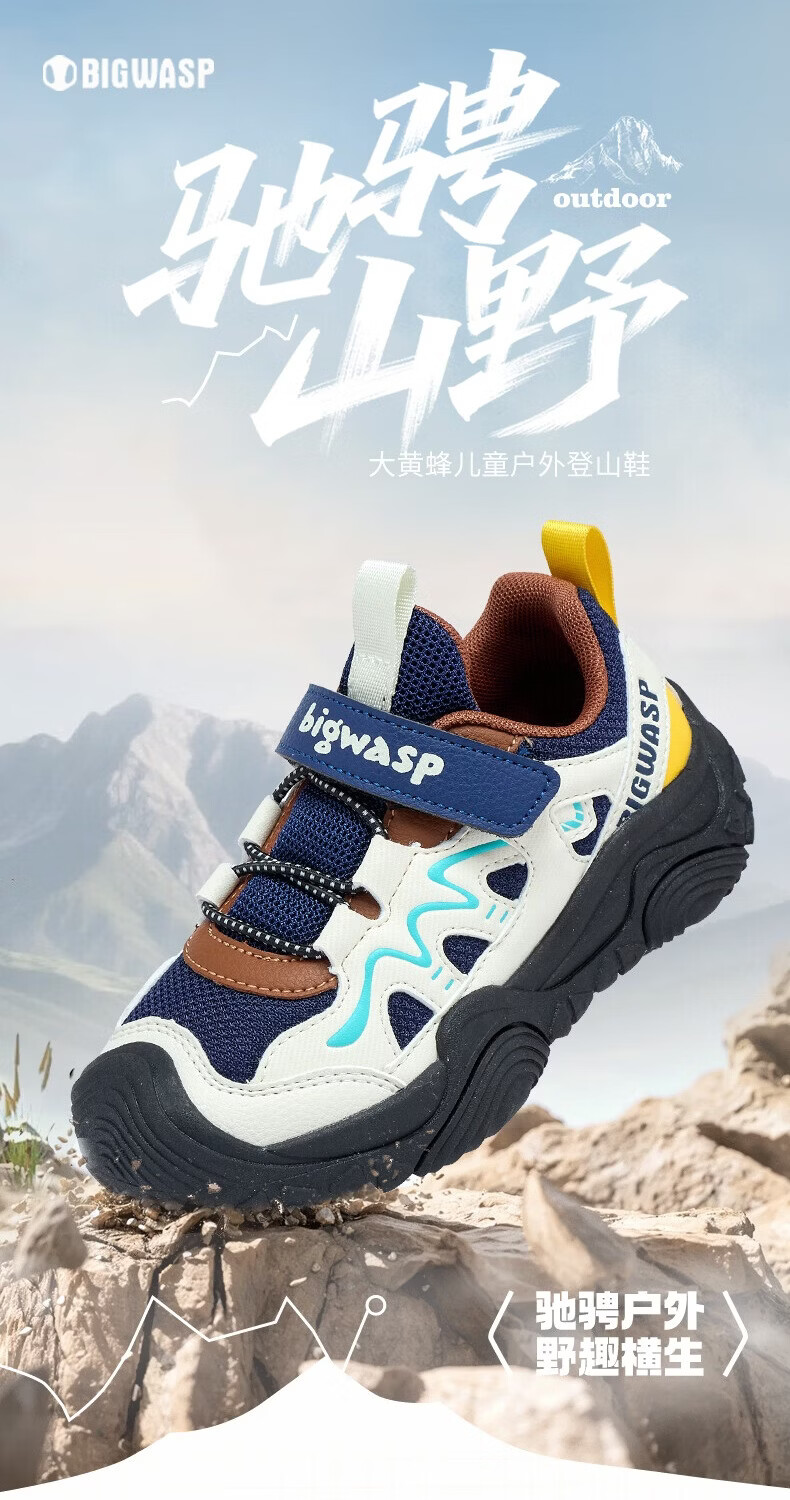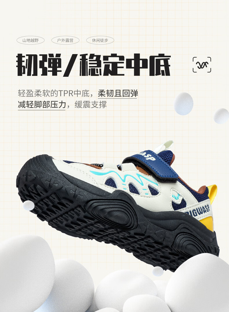 BIG WASP Children's Shoes Boys' Sports Shoes 26 Spring New Girls' Running Shoes D112611700KW Panda Black (Double Network) 33