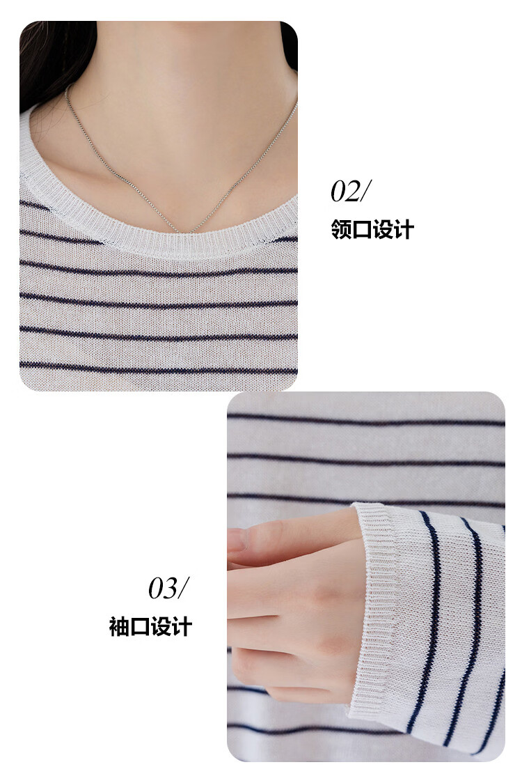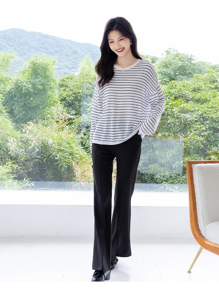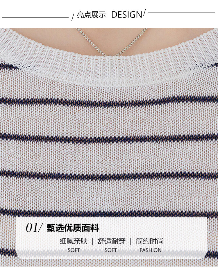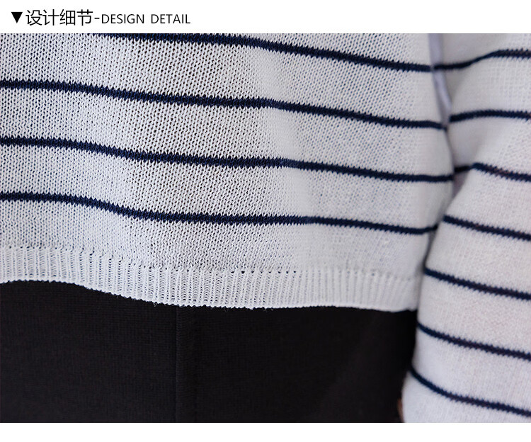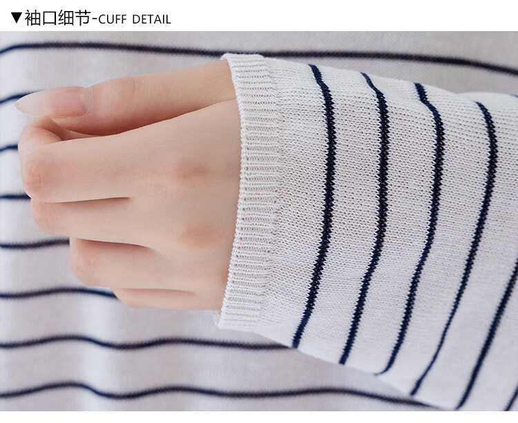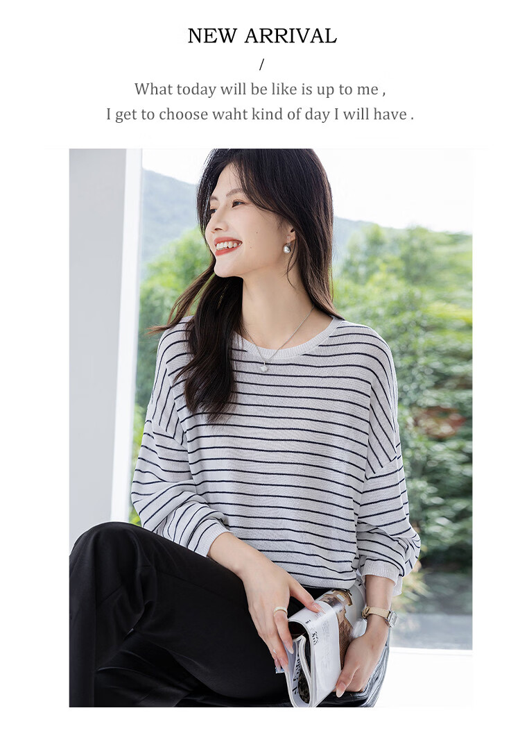 Ives (ITISF4) chic lazy style long-sleeved T-shirt Korean striped loose slim casual top white one size