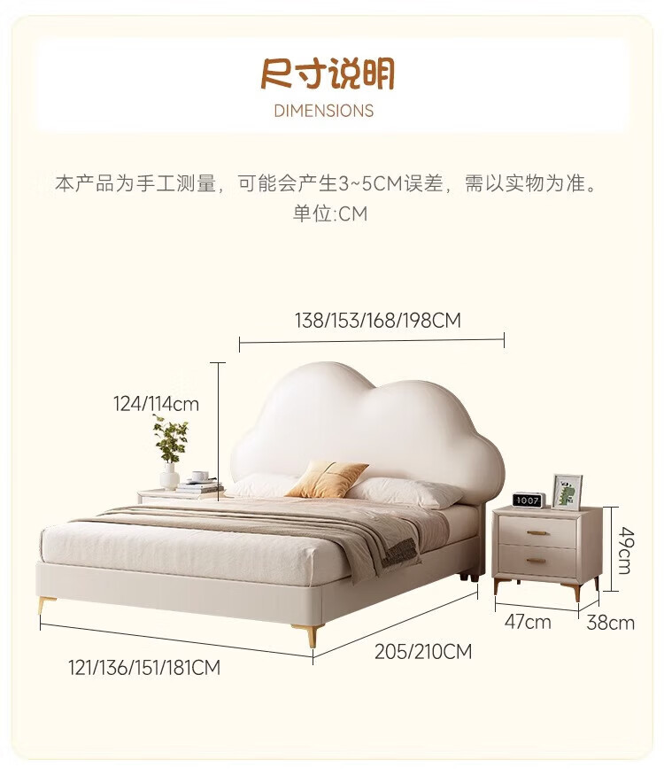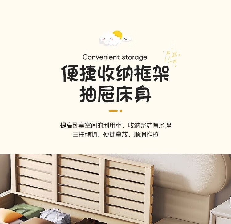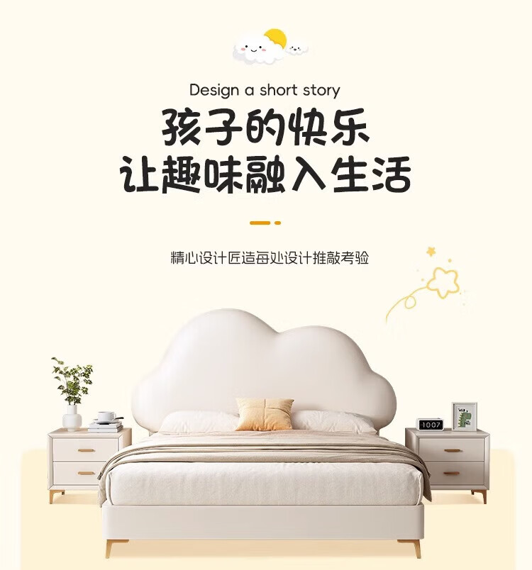 Sanskrit children's bed girl's 1.2m princess bed modern simple cloud bed girl's bed 1.5m single bed bedroom storage bed