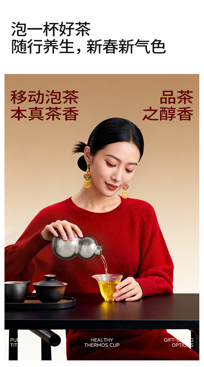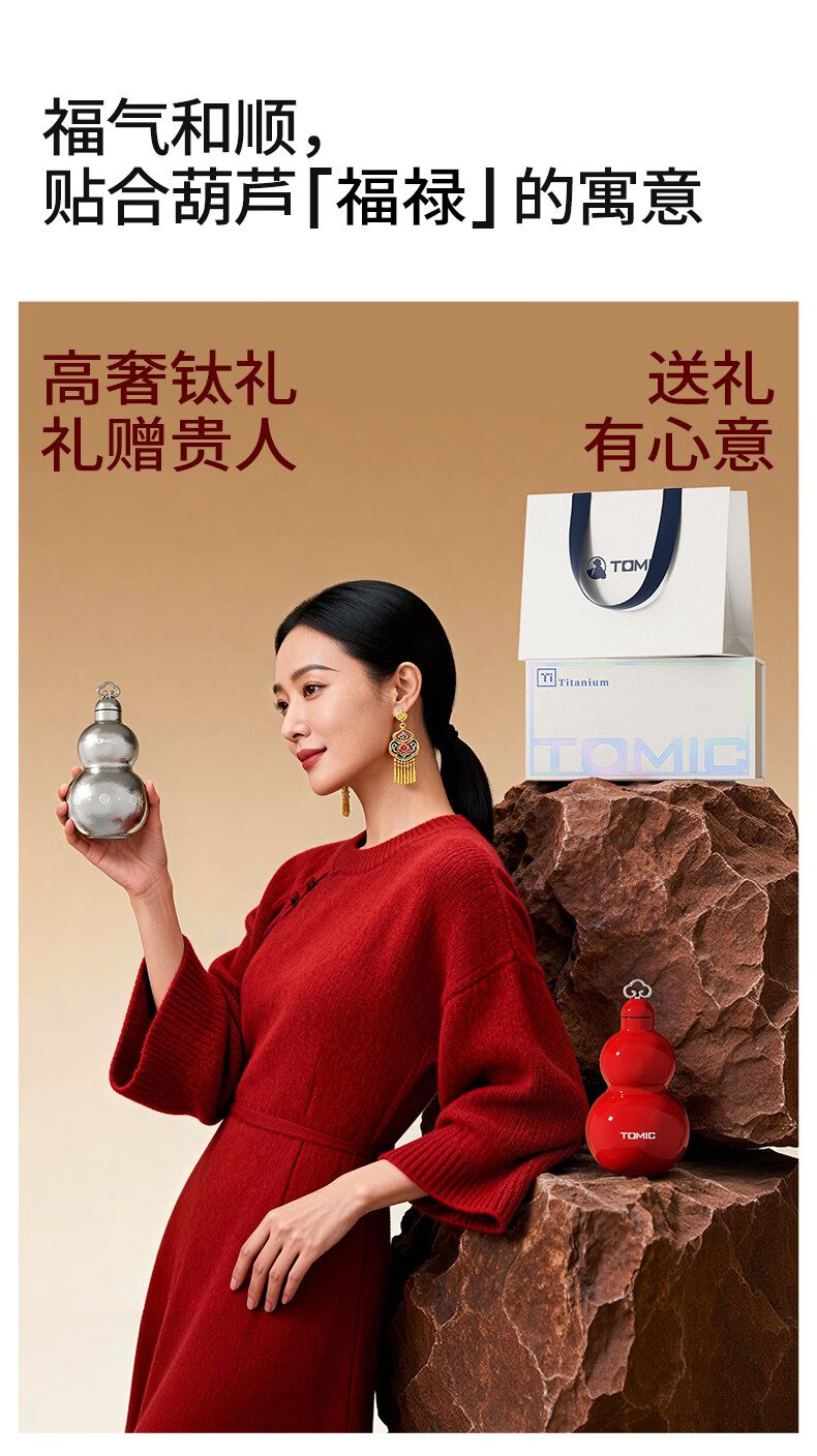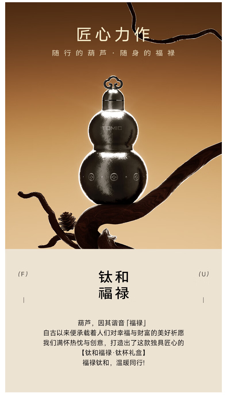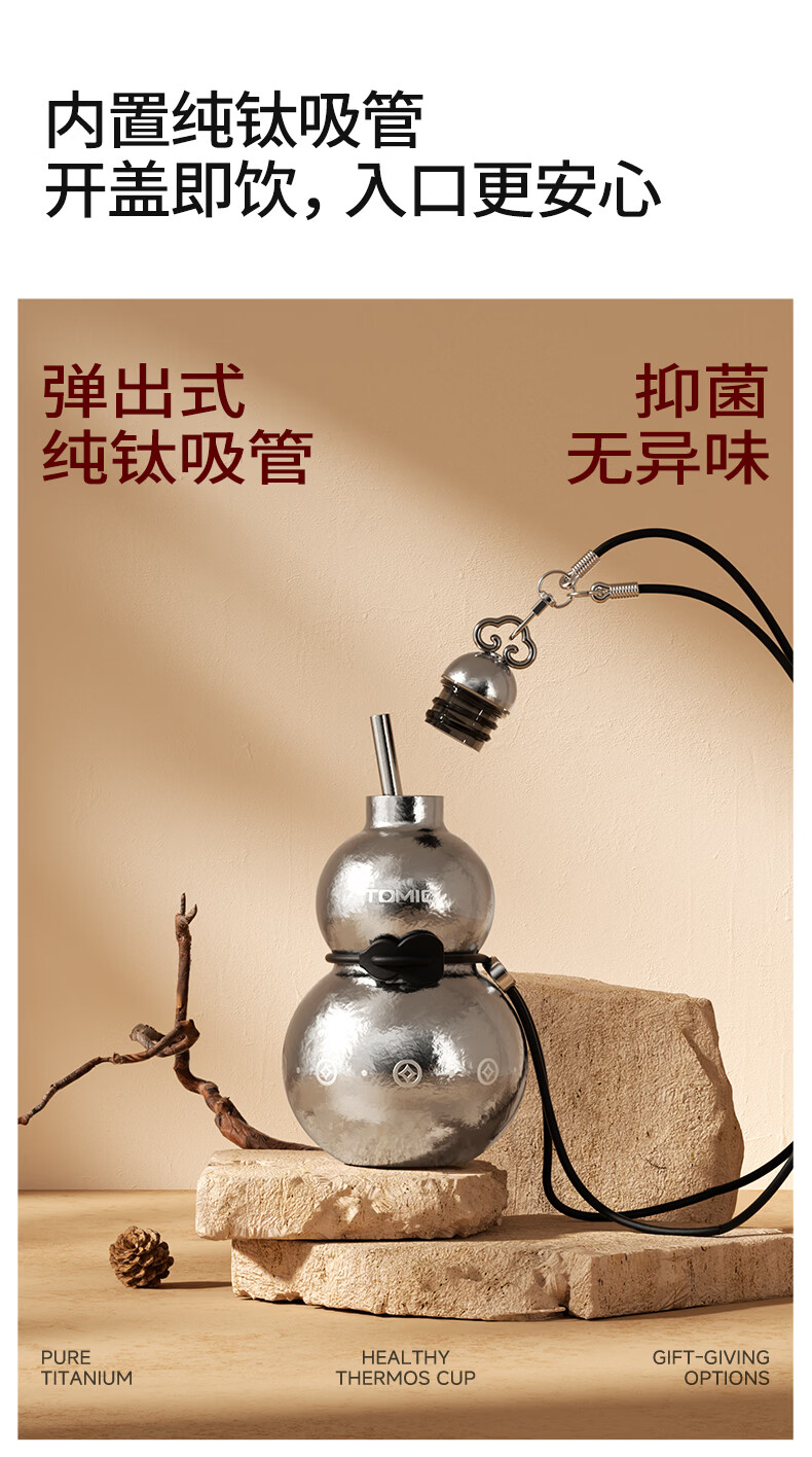 TOMIC gourd thermos cup pure titanium Fulu gourd kettle titanium water cup portable straw water cup animal year gift
