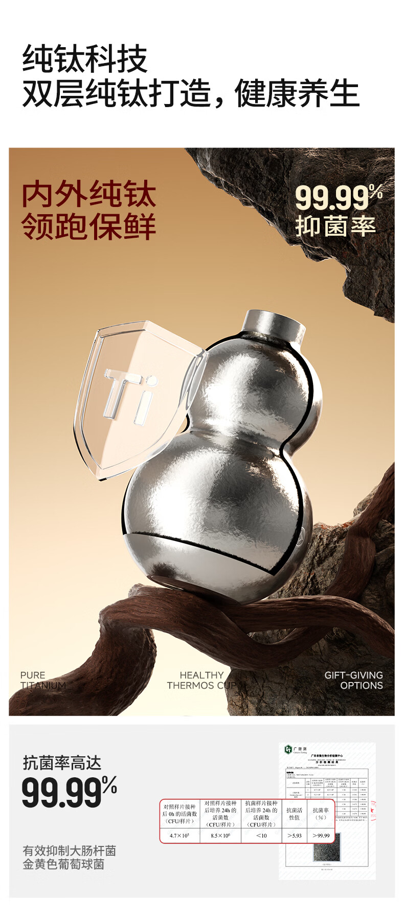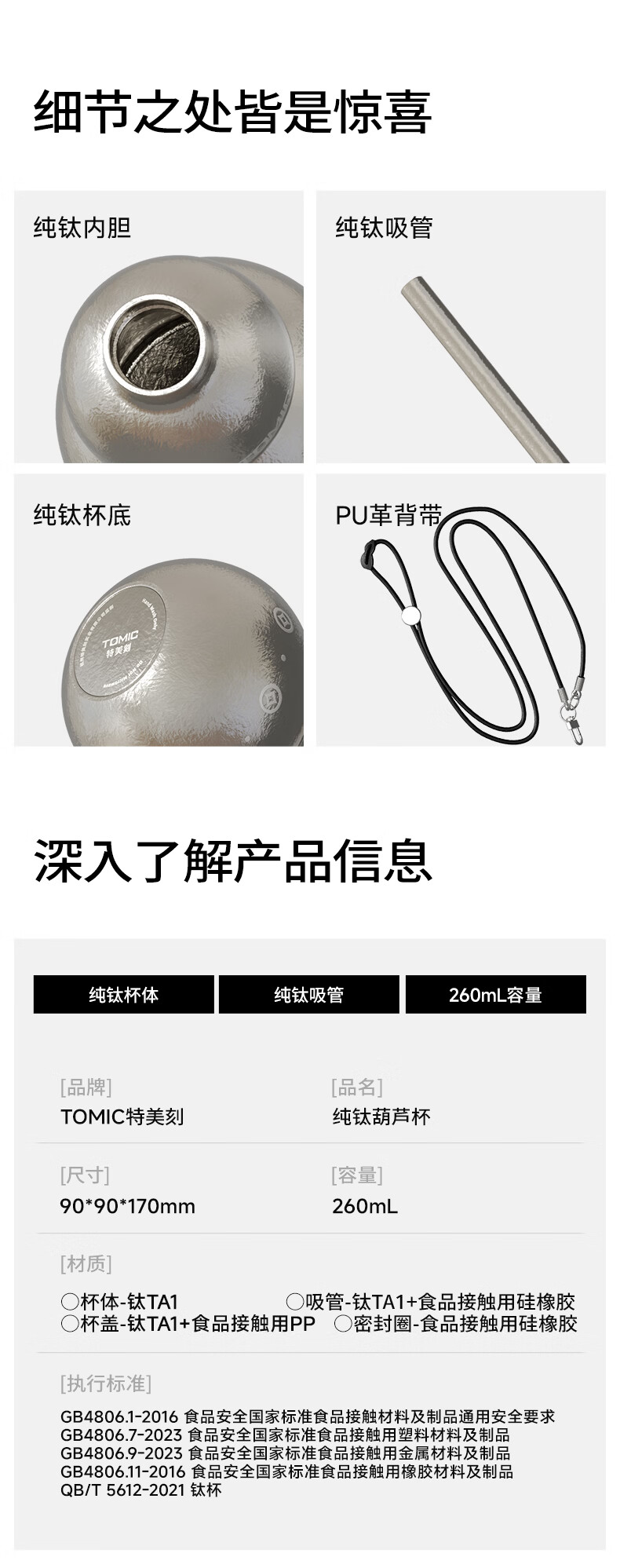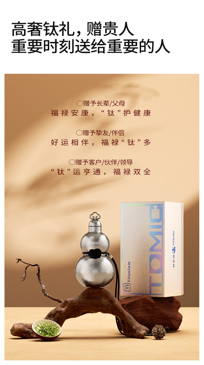TOMIC gourd thermos cup pure titanium Fulu gourd kettle titanium water cup portable straw water cup animal year gift