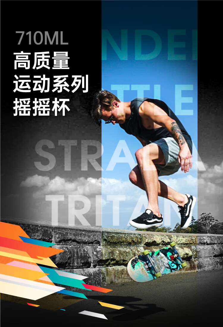 Blender BottleTritan Protein Powder Mixing Cup Meal Replacement Portable Large Capacity Water Cup Fitness Sports Water Cup for Men and Women with Mixing Ball 24oz Tritan-Ocean Blue 710ml