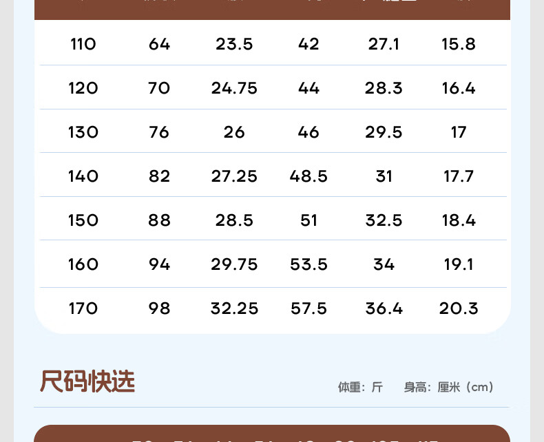 China (cm) 160-165/84-86 165-170 / 88-90 167-172 / 92-96 168-173 / 98-102 170-176 / 106-110