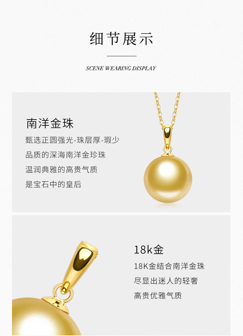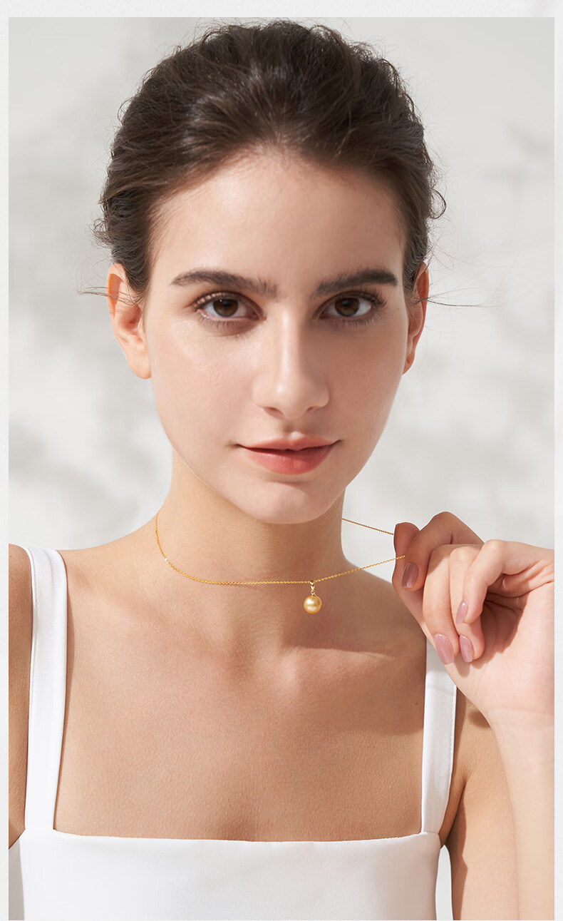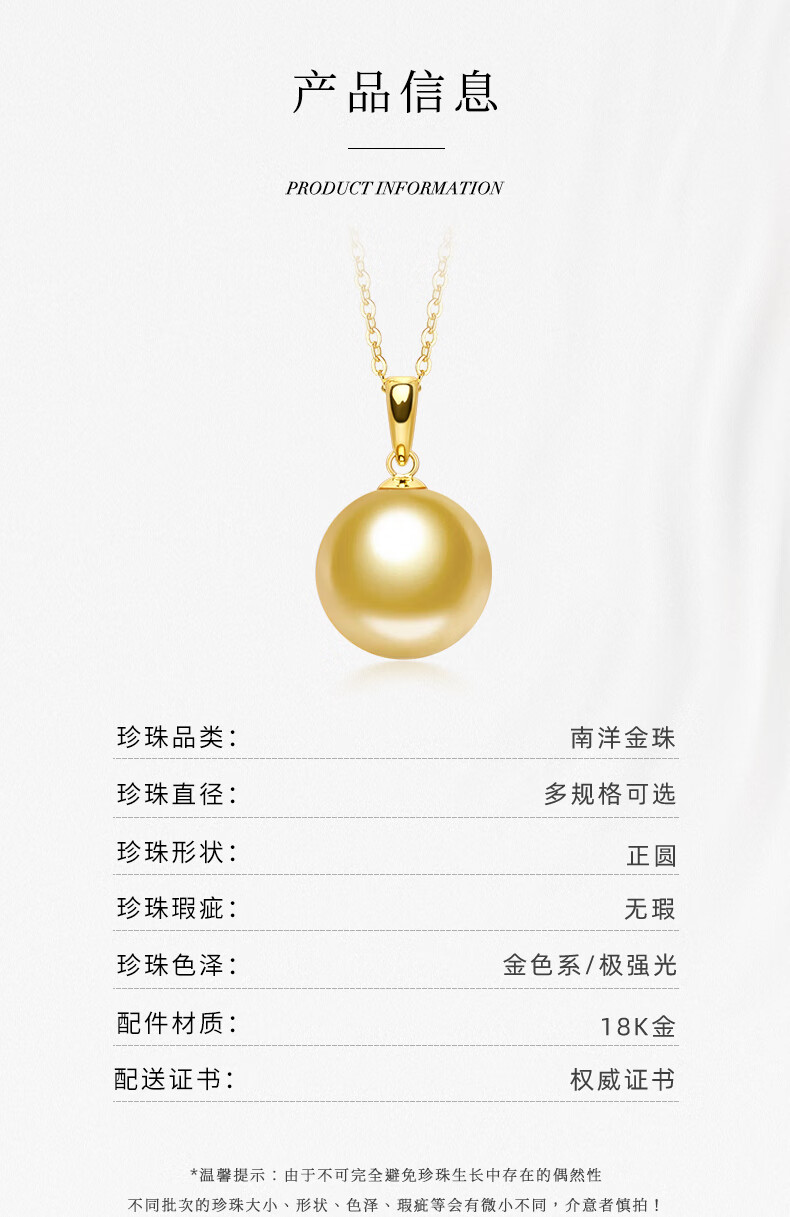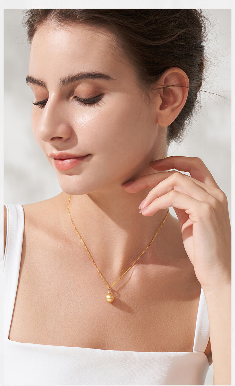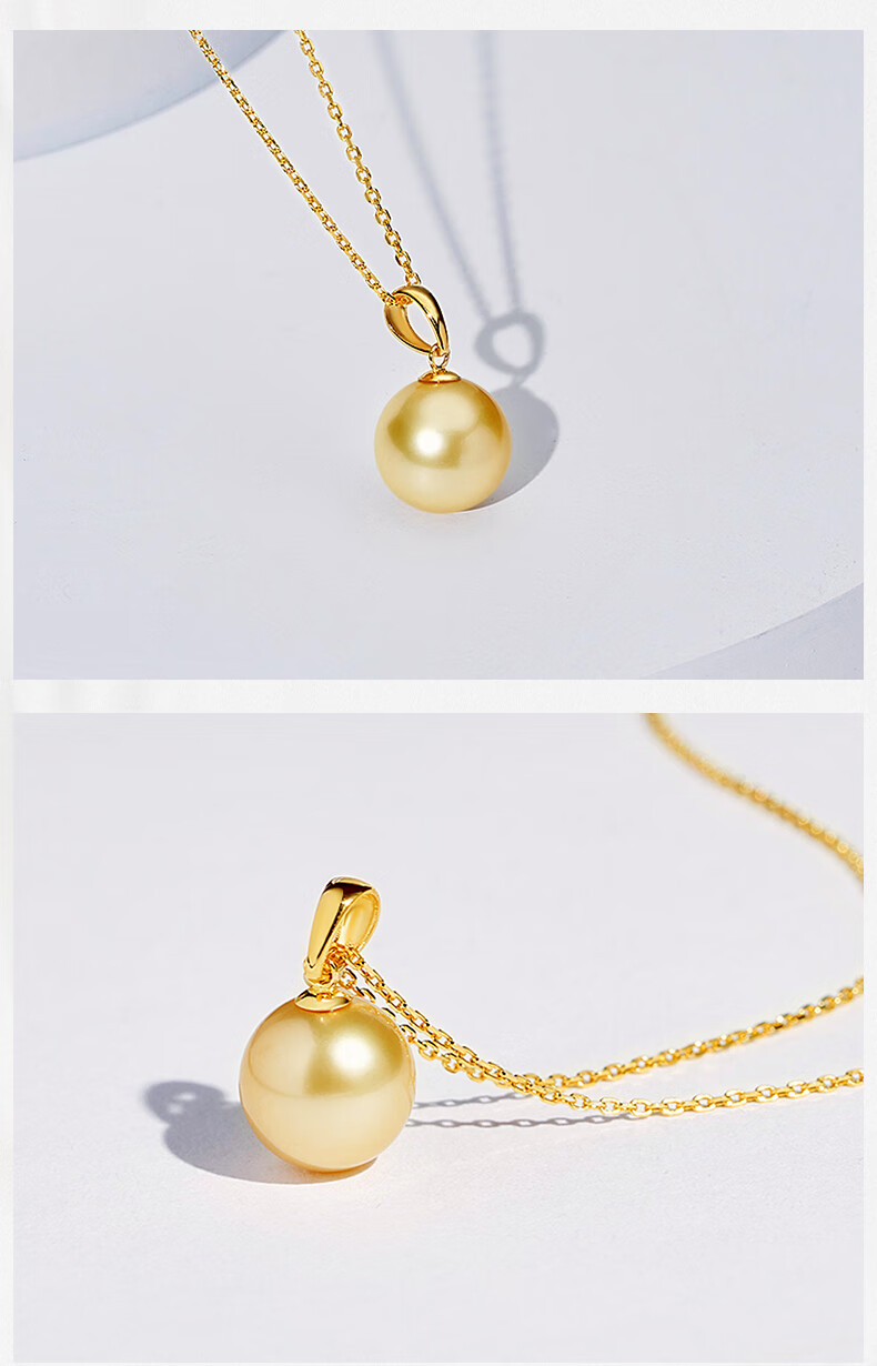 Tahiti 18K gold pearl pendant single perfect round strong light seawater South Sea gold pearl necklace A grade/gold beads 12-13mm +925 silver chain