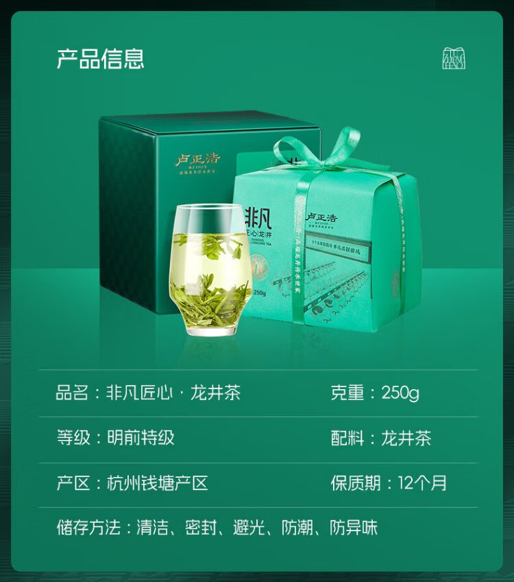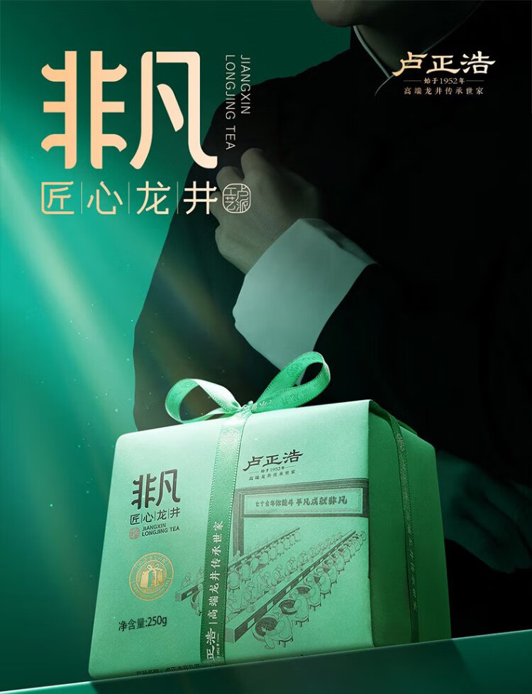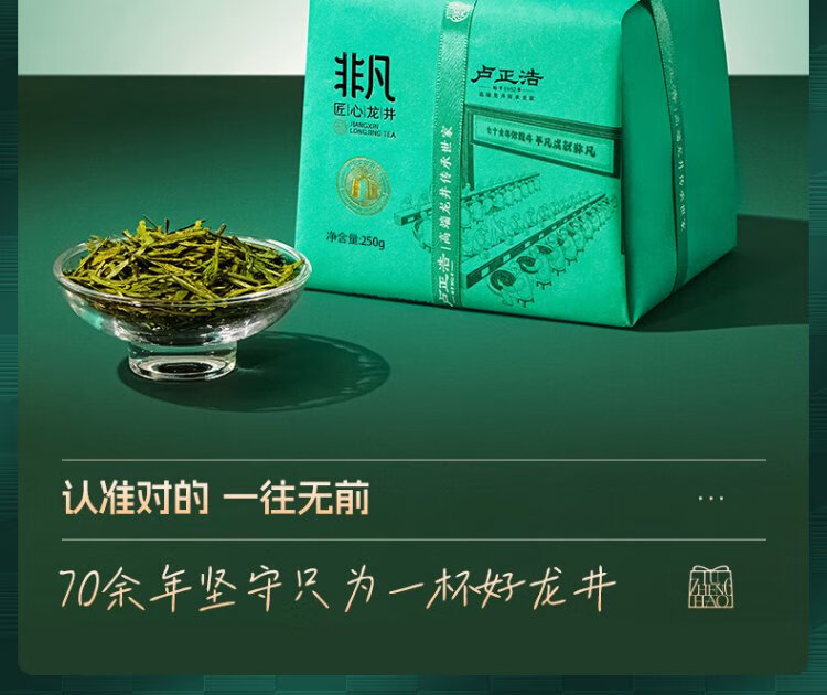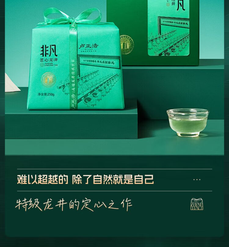 Lu Zhenghao Longjing Mingqian Grado especial 2025 Nuevo té Qiantang Área de producción Longjing 43 Té verde Paquete de papel artesanal seleccionado 250 g