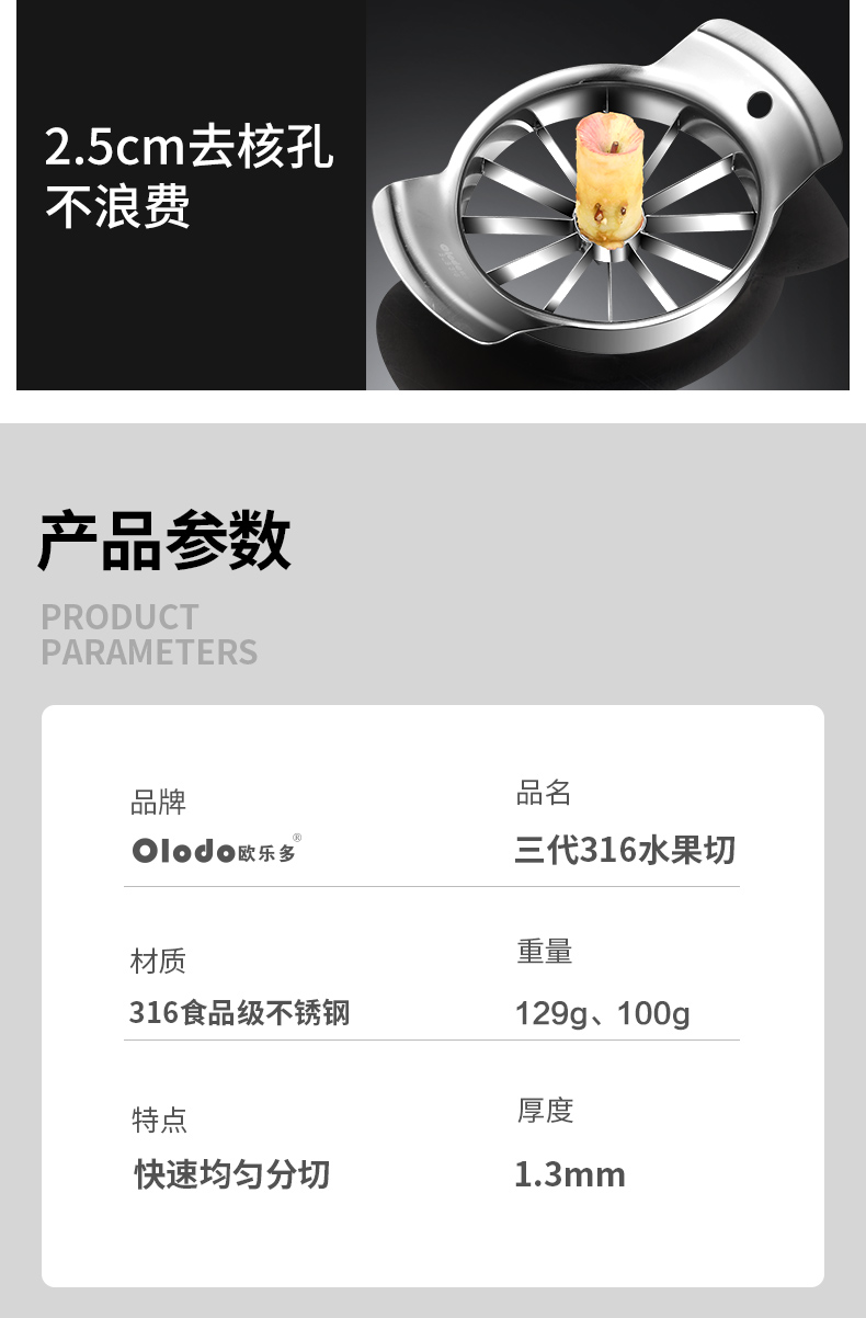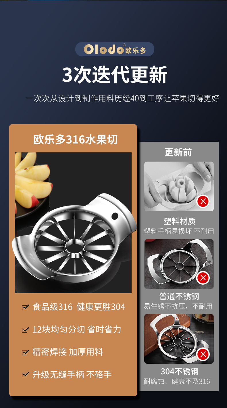 Oraldo apple slicer multifunctional 316 stainless steel fruit cutting tool divider large fruit corer 316 fruit splitter large size can cut 12 pieces