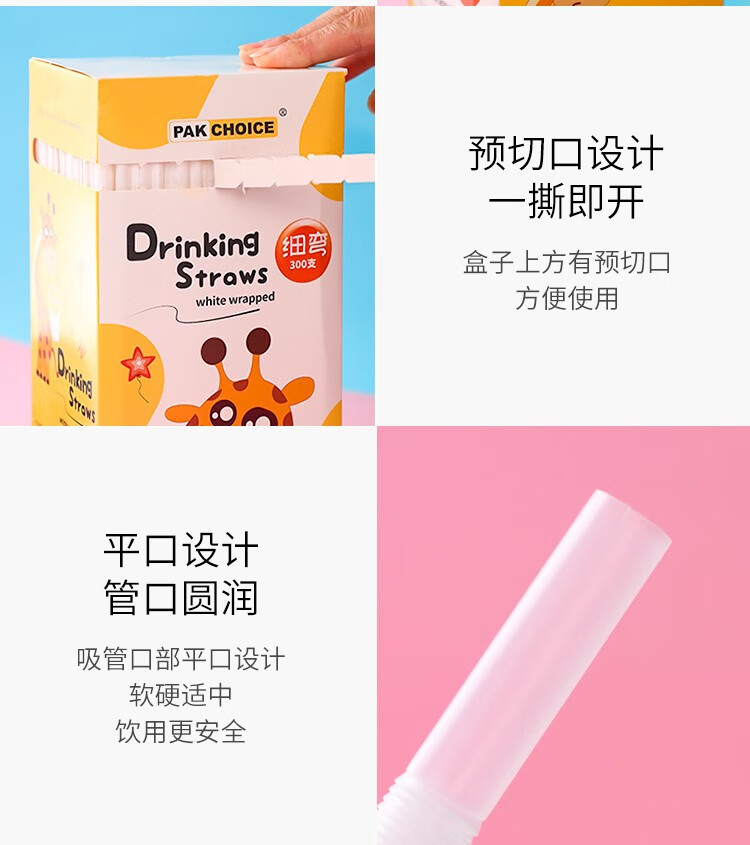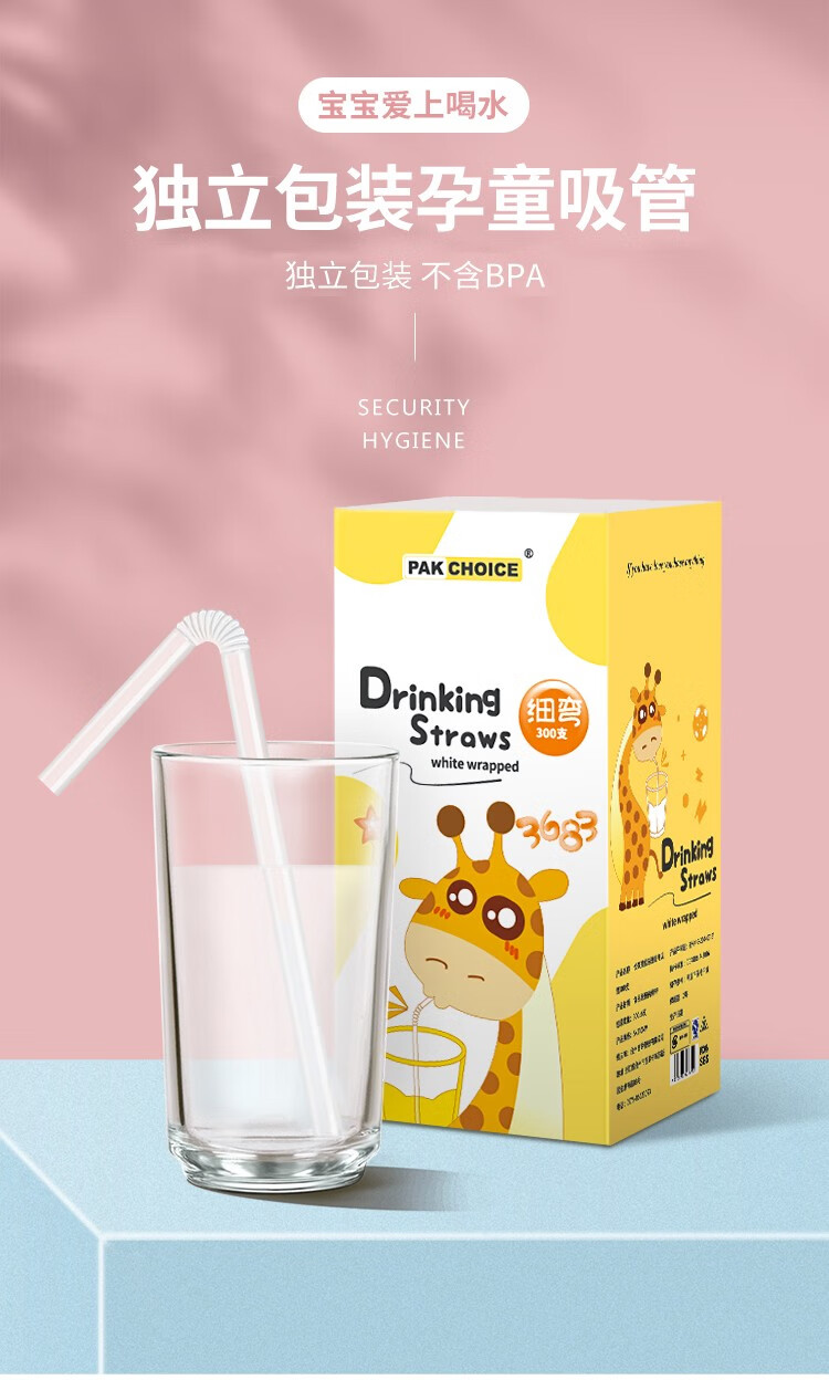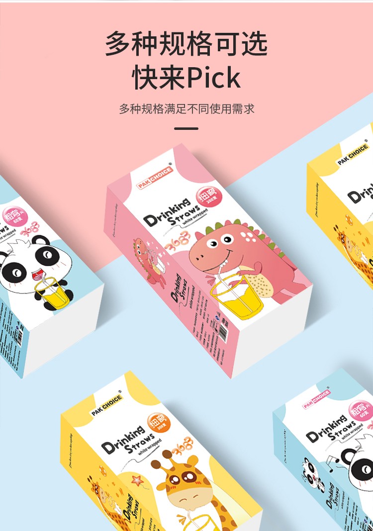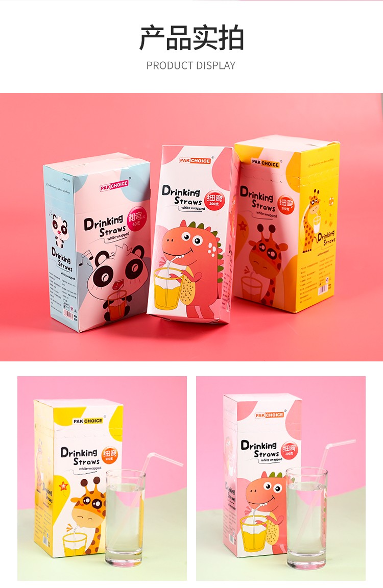 PAKCHOICE straws disposable individually packaged children's baby straws paper straws Funny dinosaur thin curved flat head straws 200 pieces/box