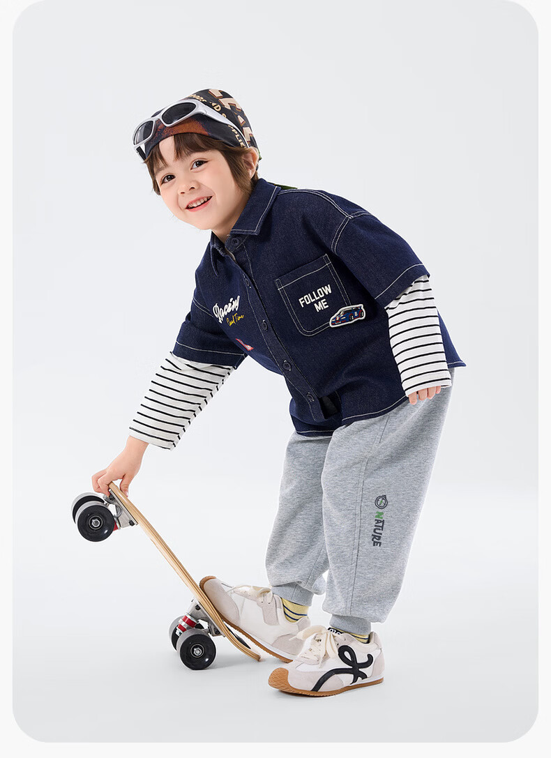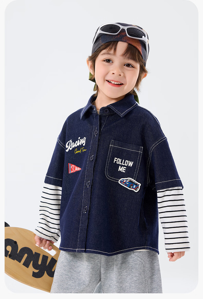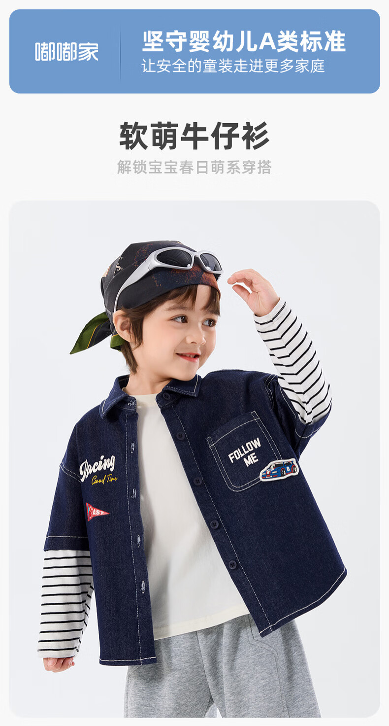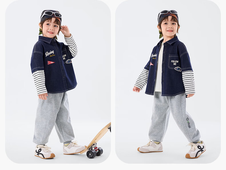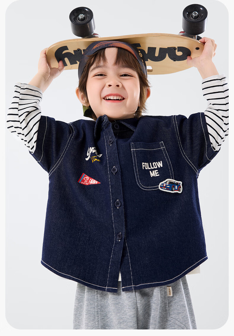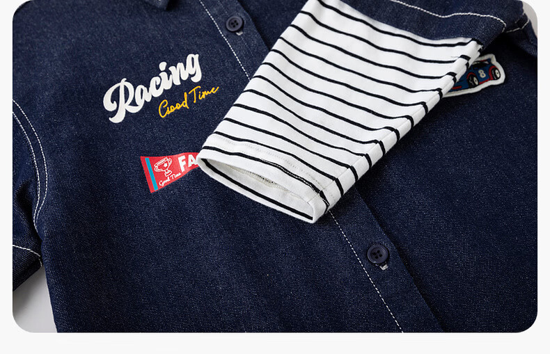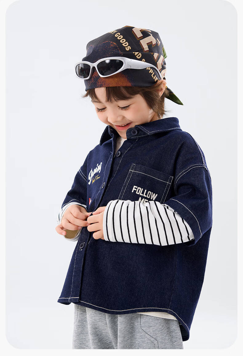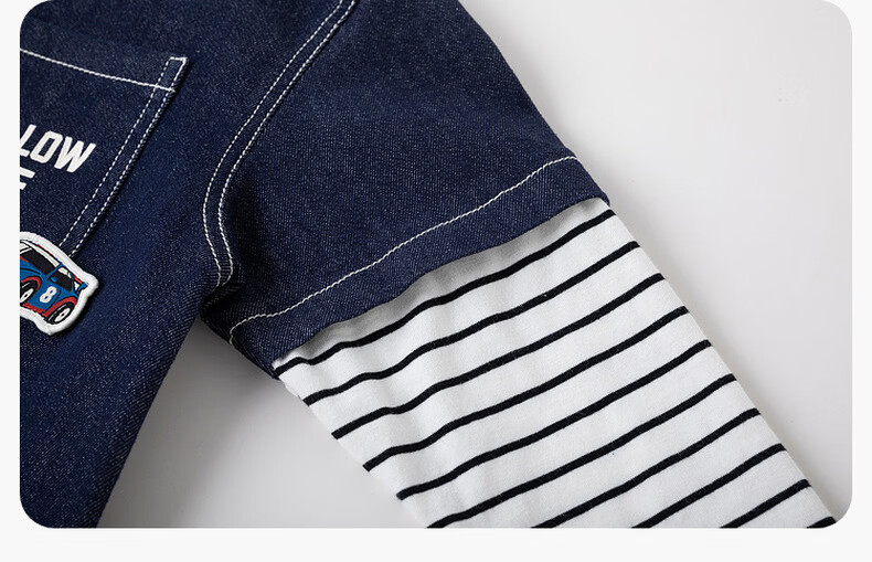 Dudu baby denim jacket spring boys patchwork sleeve shirt girls spring clothes children's clothing denim blue 80
