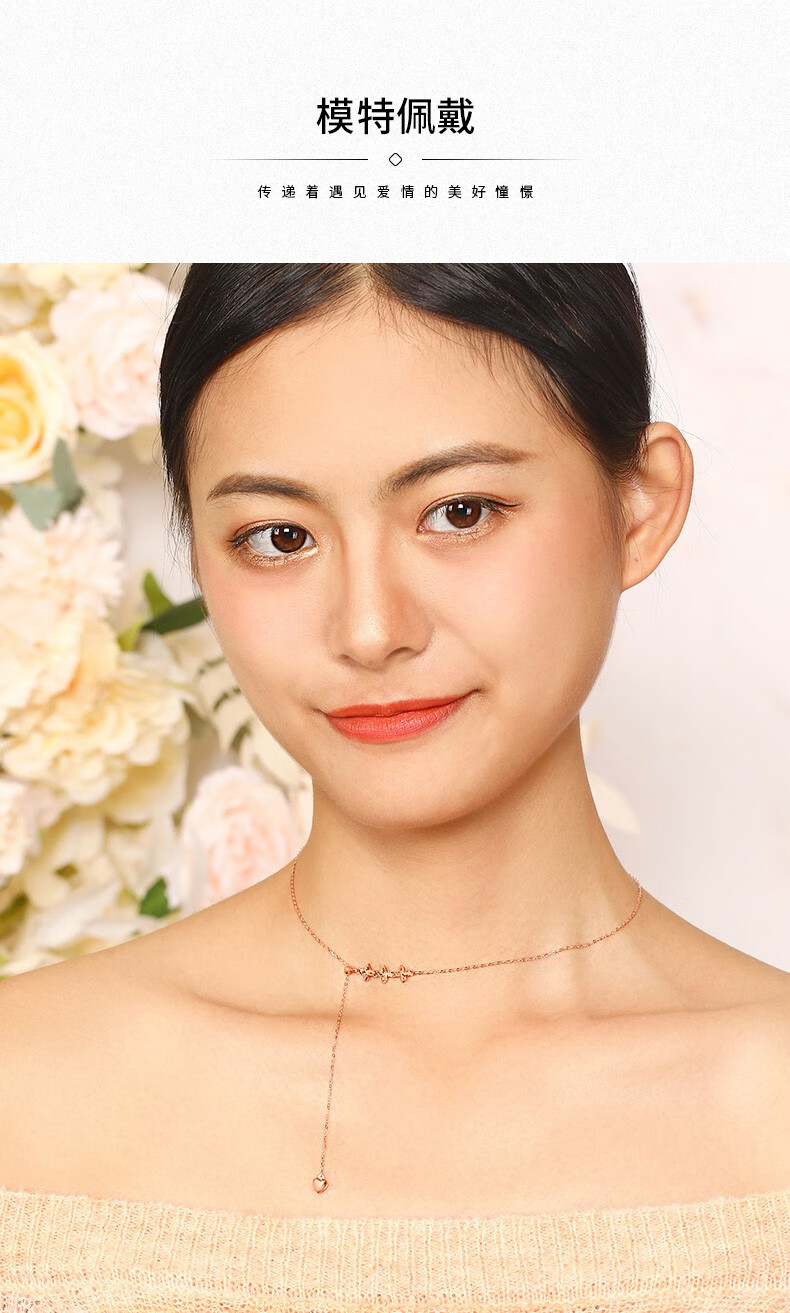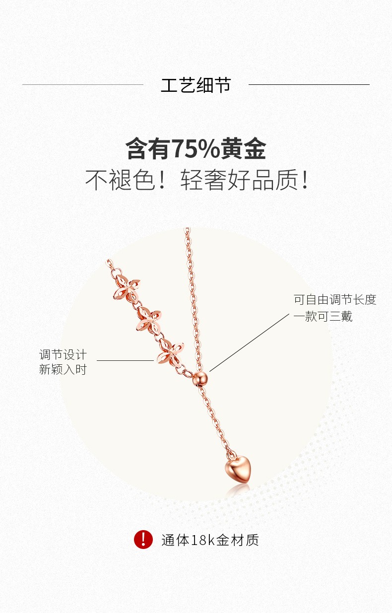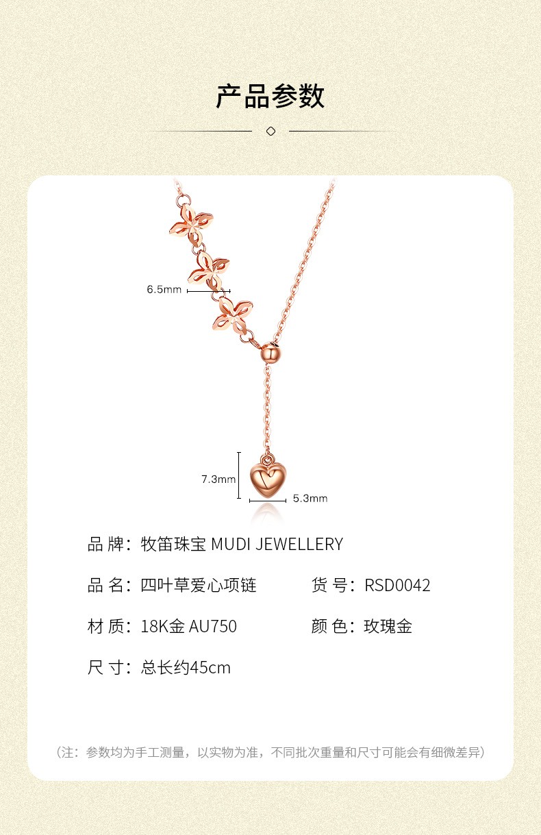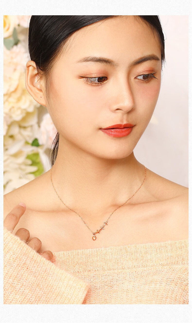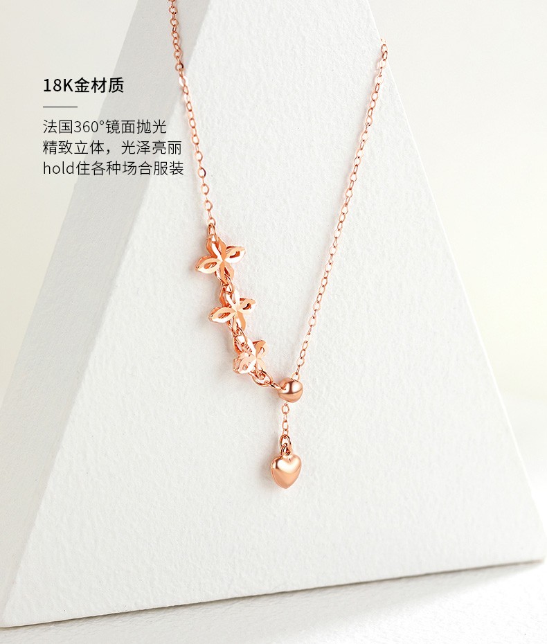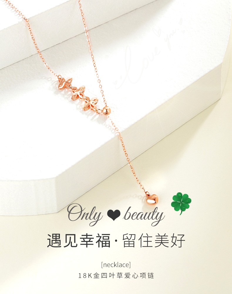 MUDI 18K gold necklace for women, love transfer beads, clavicle chain, lover's gift for girlfriend and wife's birthday, love transfer beads necklace, about 1.1g 45cm